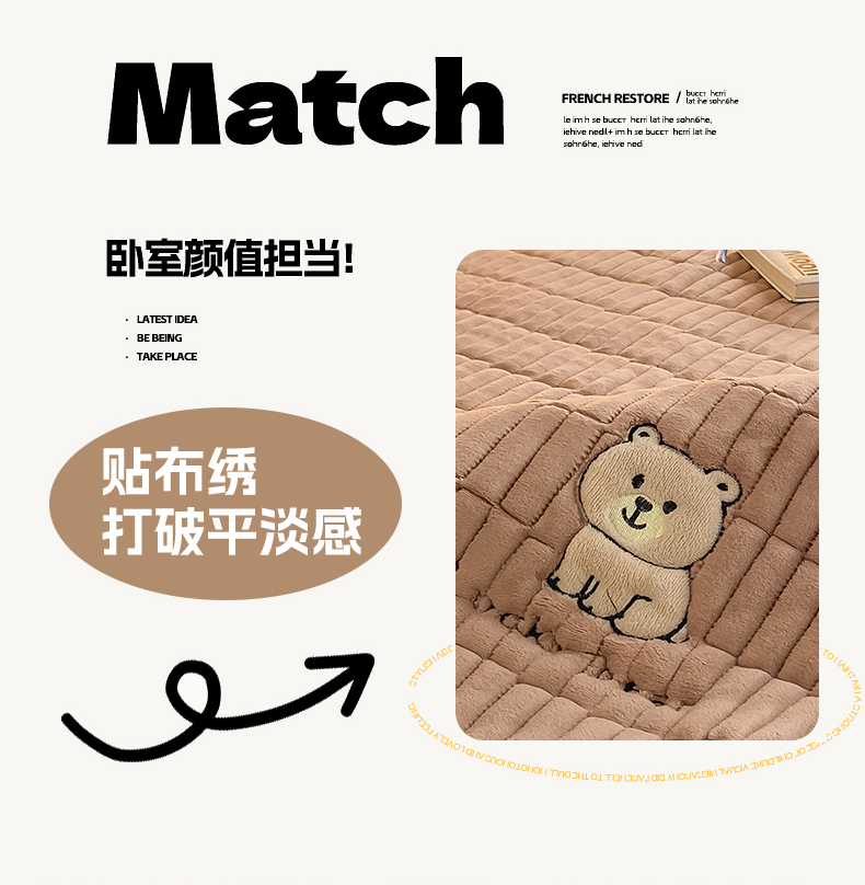 (总)梦初语 2025新款纯色牛奶绒贴布绣床垫褥冬季加绒加厚防滑学生宿舍 -直播爆款(面料17,猫咪-灰,猫咪-兰,维尼-咖,维尼-棕,小煤球-绿,小煤球-玉