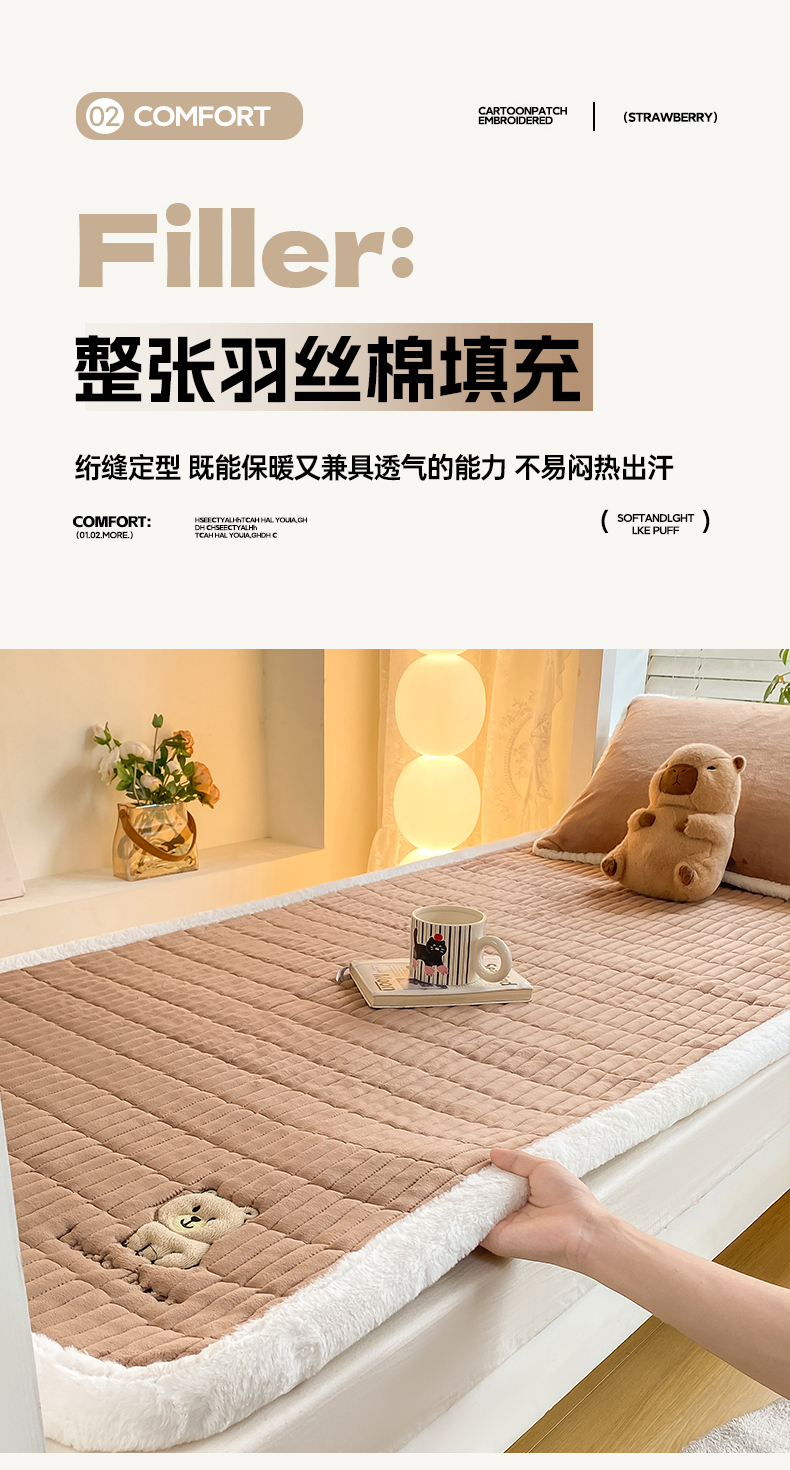 (总)梦初语 2025新款牛奶绒印花夹棉加厚款床护垫褥子学生宿舍-直播爆款(面料180克-夹棉200克-底布80克防滑滴塑布),顽皮鼠,繁星,快乐Panda,奶油爱心,汪汪星球,唯美小熊,熊猫乐园,优雅格调