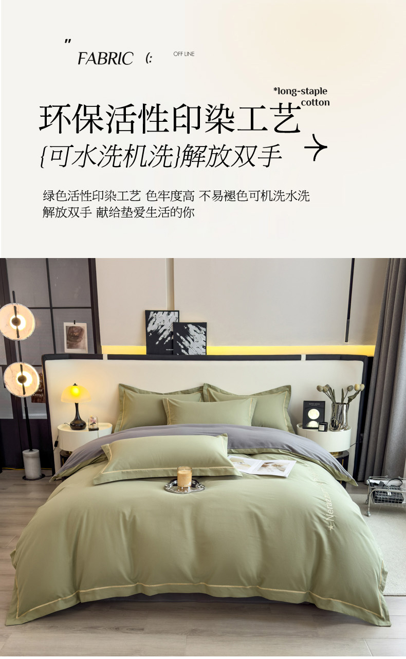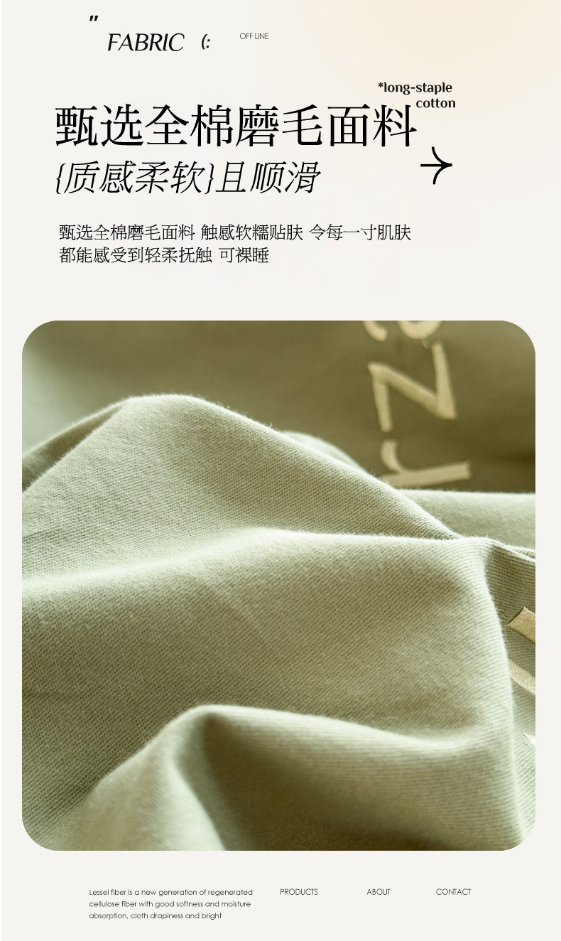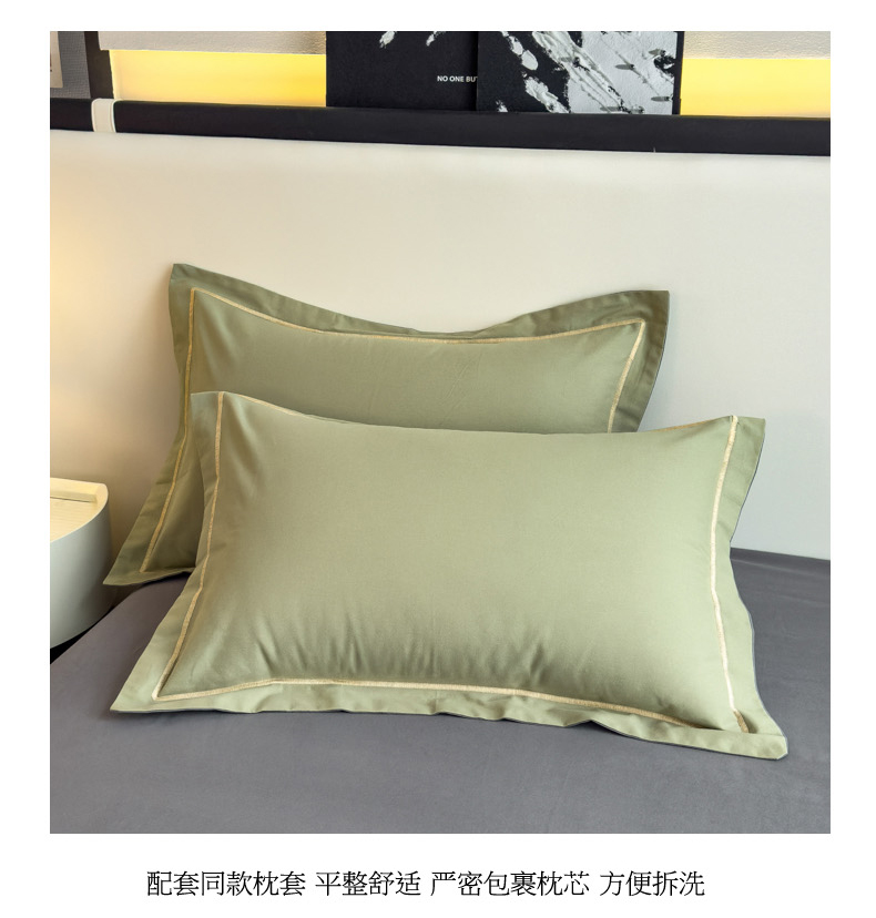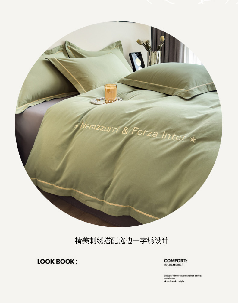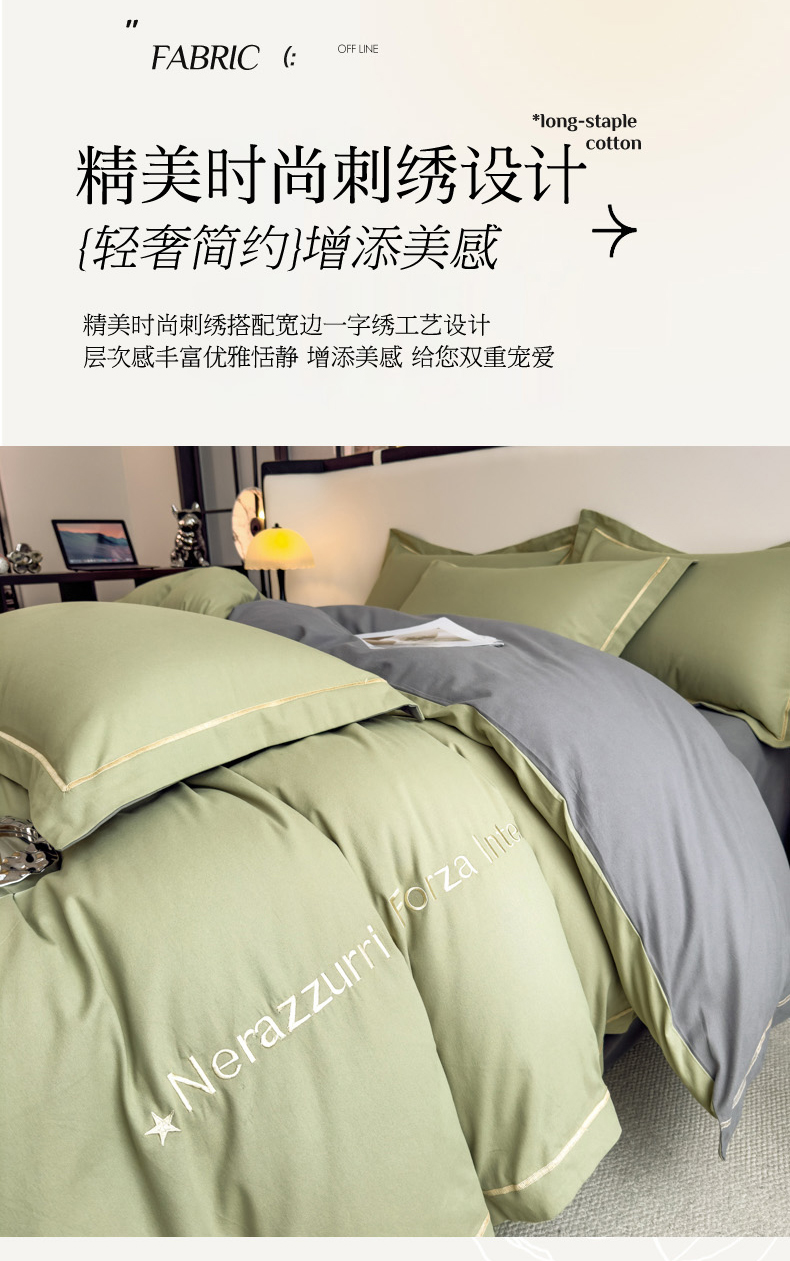 当前位置: 91家纺网 > 商品网购 > 床品套件 > 四件套 > 全棉普通四件套 > 印季家纺 2025新款绣花一字绣全棉纯棉加厚磨毛四件套 松柏绿-深灰