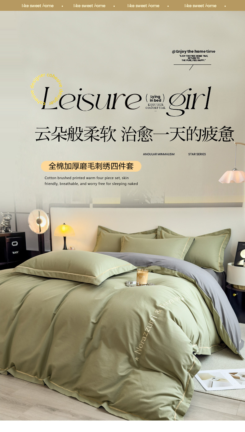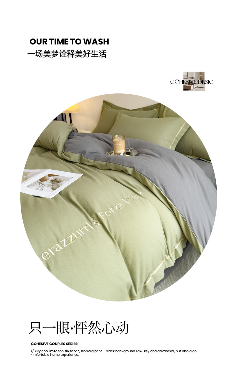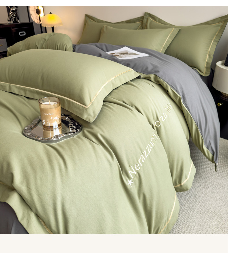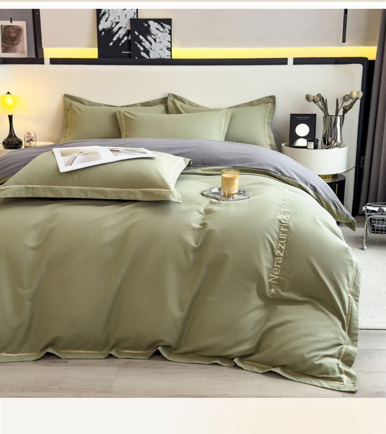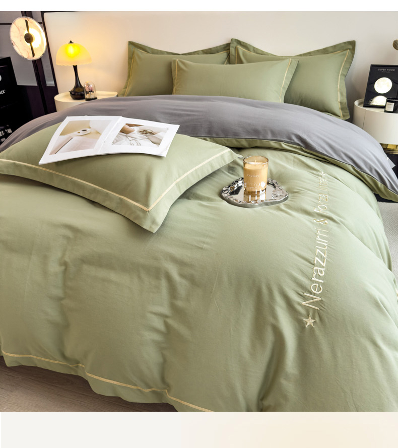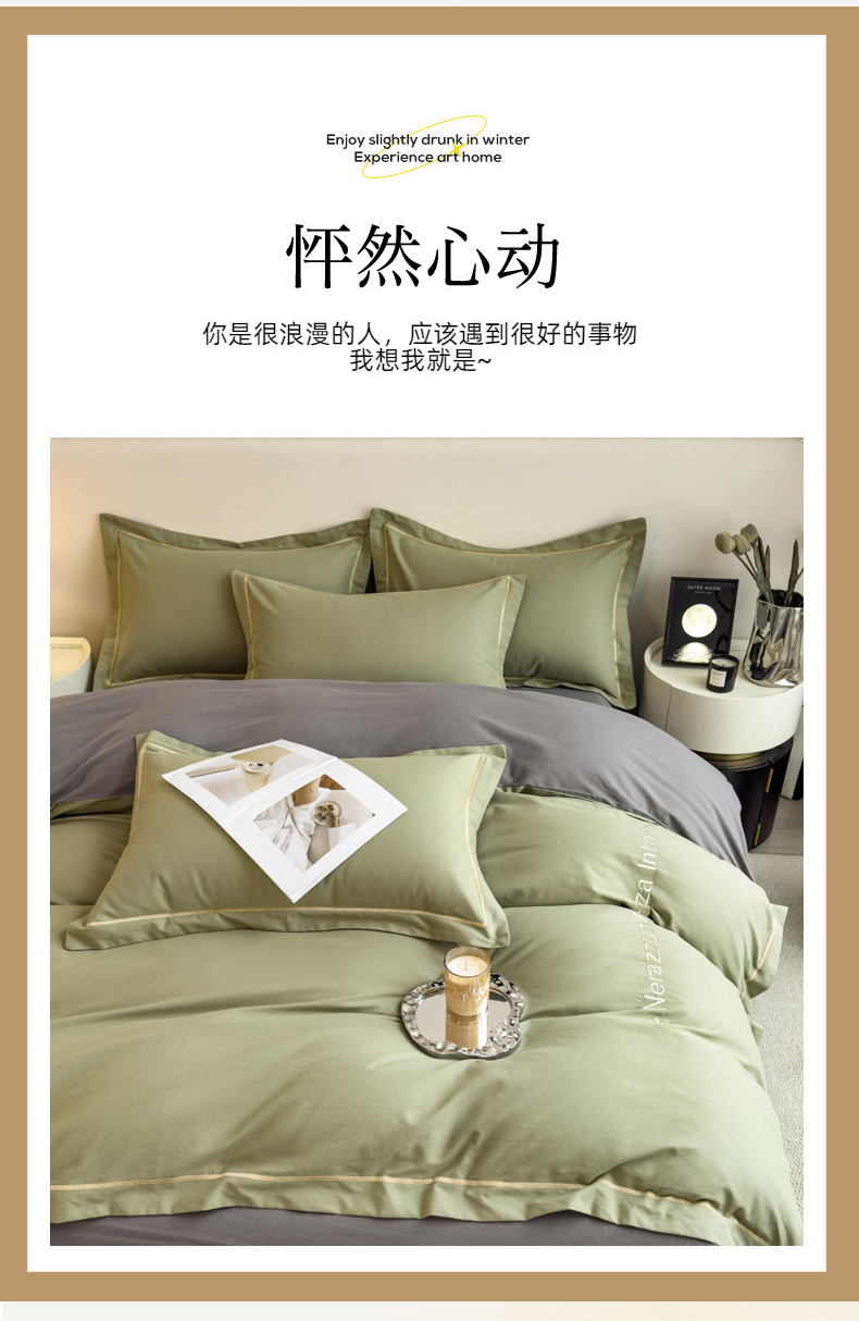 当前位置: 91家纺网 > 商品网购 > 床品套件 > 四件套 > 全棉普通四件套 > 印季家纺 2025新款绣花一字绣全棉纯棉加厚磨毛四件套 松柏绿-深灰