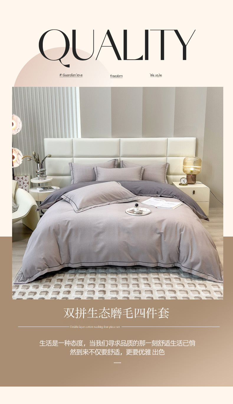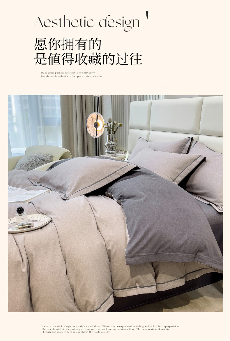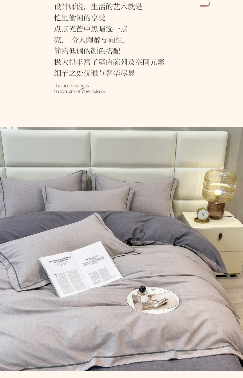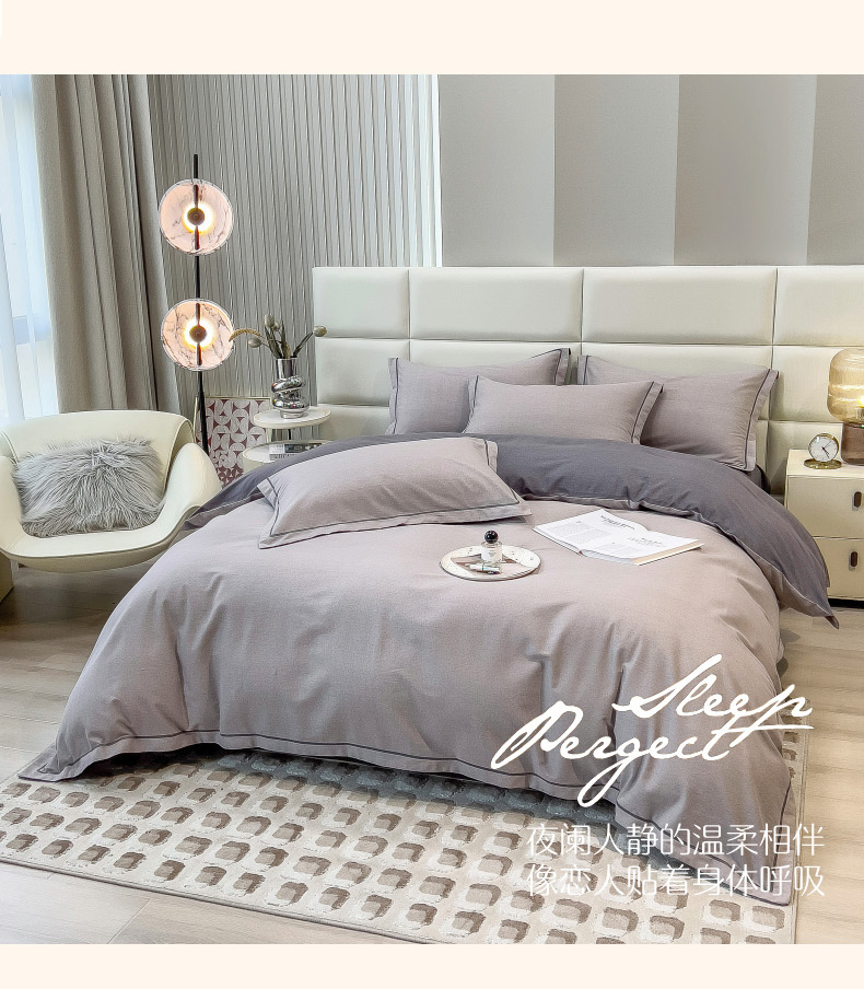 当前位置: 91家纺网 > 商品网购 > 床品套件 > 四件套 > 全棉普通四件套 > 印季家纺 2025新款纯色磨毛混纺一字绣四件套 浅灰-深灰