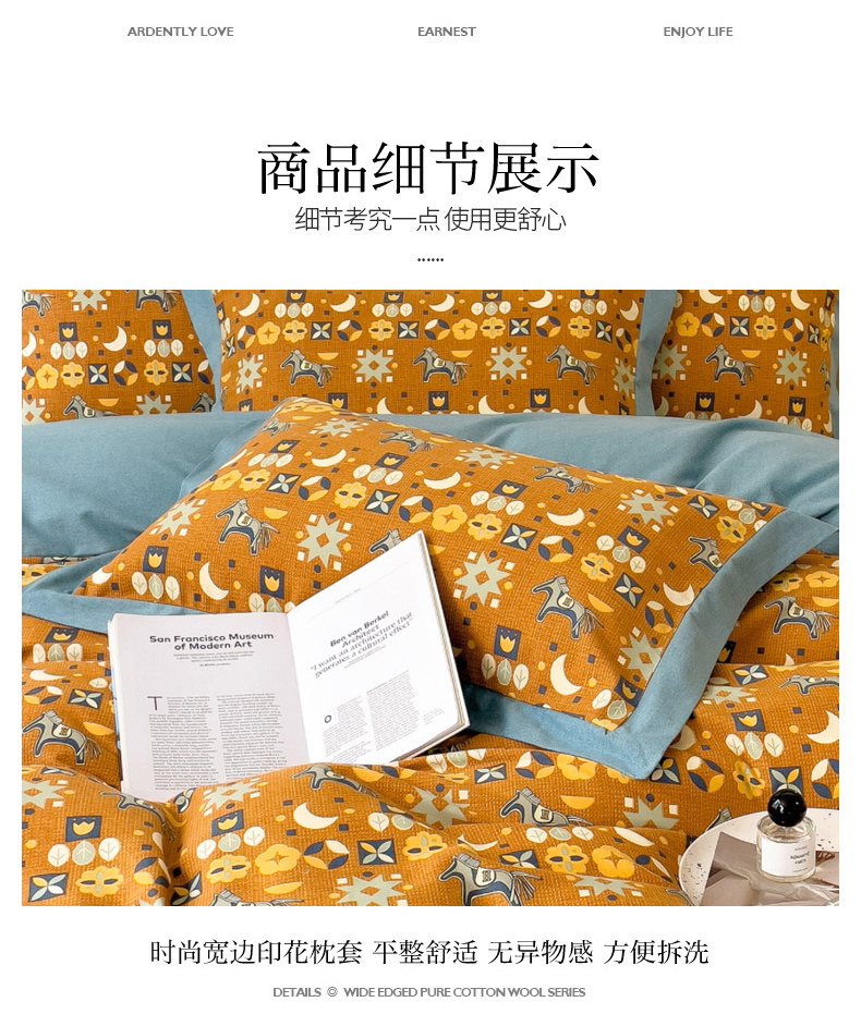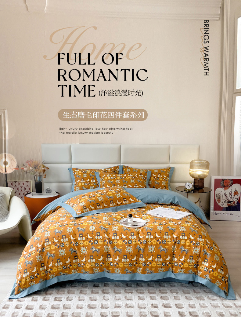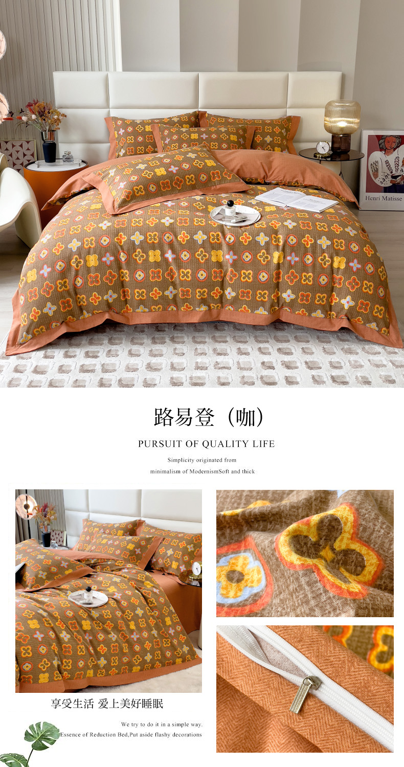 当前位置: 91家纺网 > 商品网购 > 床品套件 > 四件套 > 全棉普通四件套 > 印季家纺 2025新款生态全棉纯棉磨毛混纺欧式花边款四件套 安妮(橙)