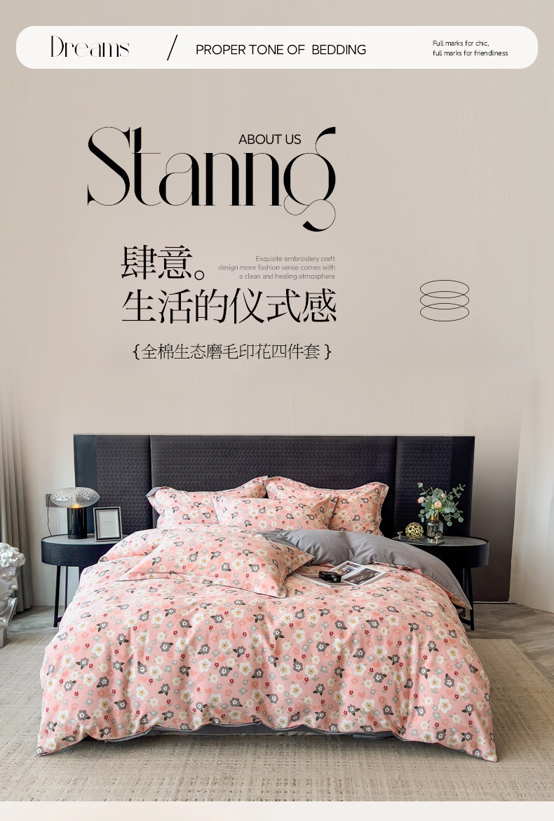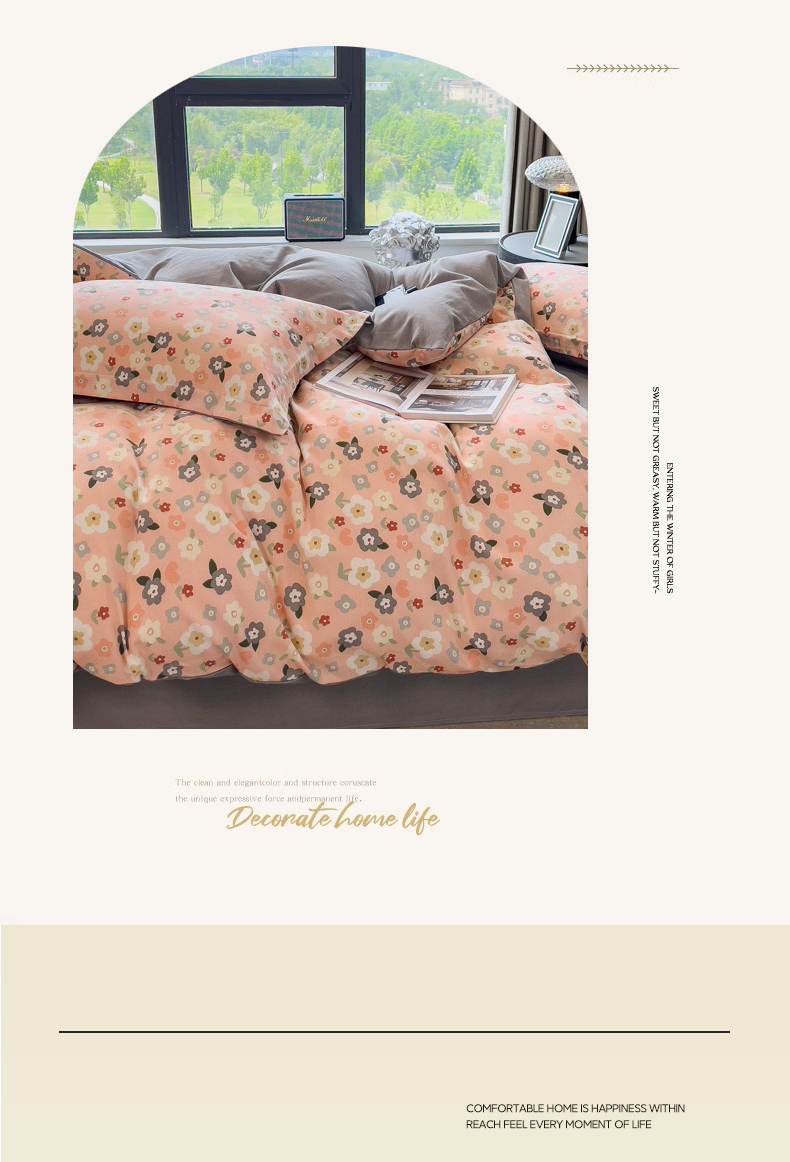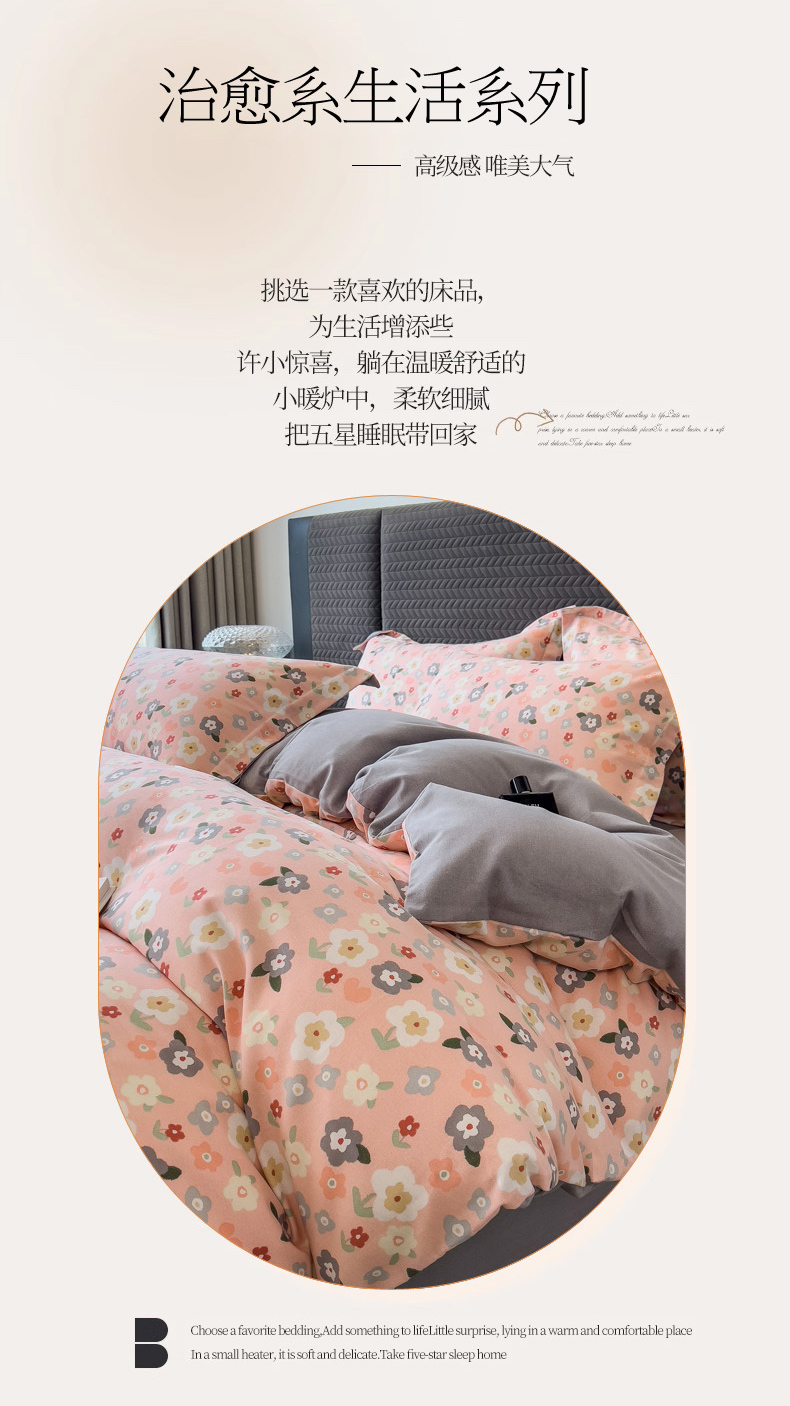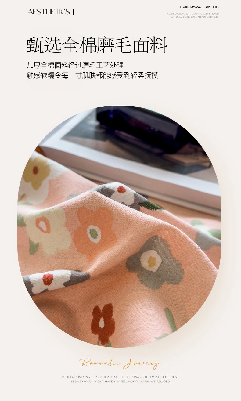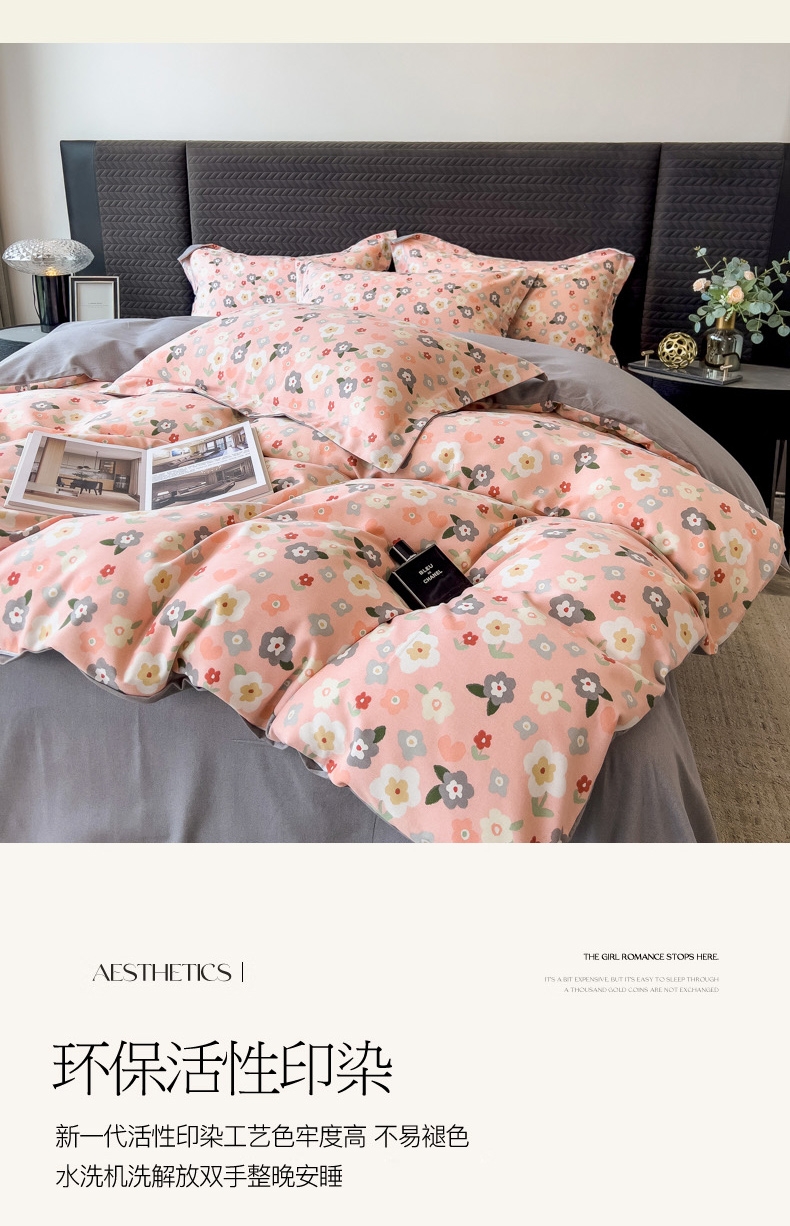 当前位置: 91家纺网 > 商品网购 > 床品套件 > 四件套 > 全棉普通四件套 > 印季家纺 2025新款全棉纯棉生态印花加厚混纺磨毛四件套 诺拉(粉)