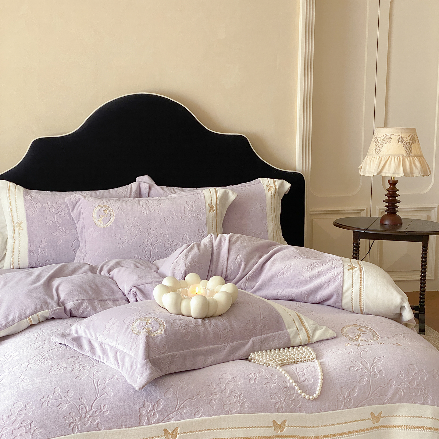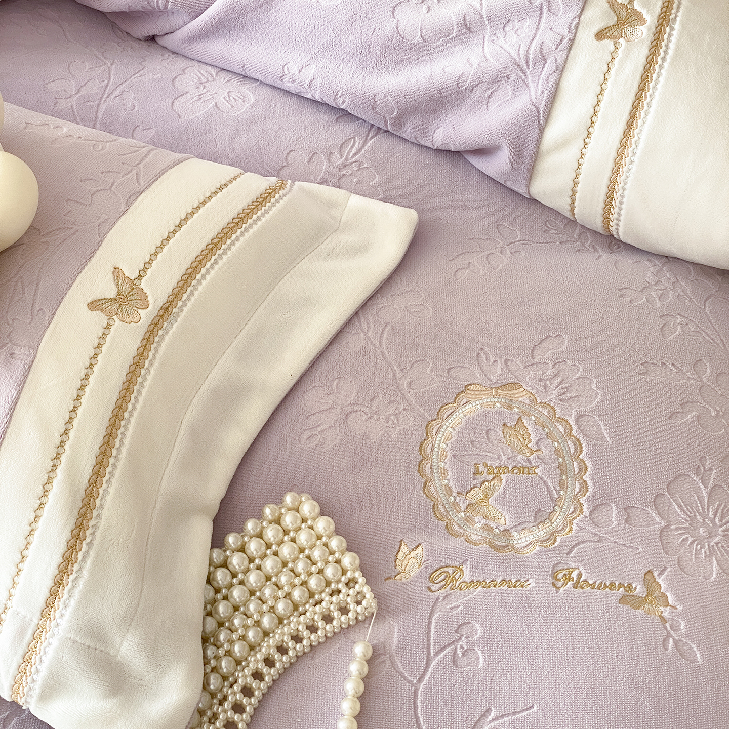 (总)太古汇家居 2025新款牛奶绒雕花+绣花四件套-薇薇安系列,薇薇安-粉色,薇薇安-卡其,薇薇安-蓝色,薇薇安-紫色