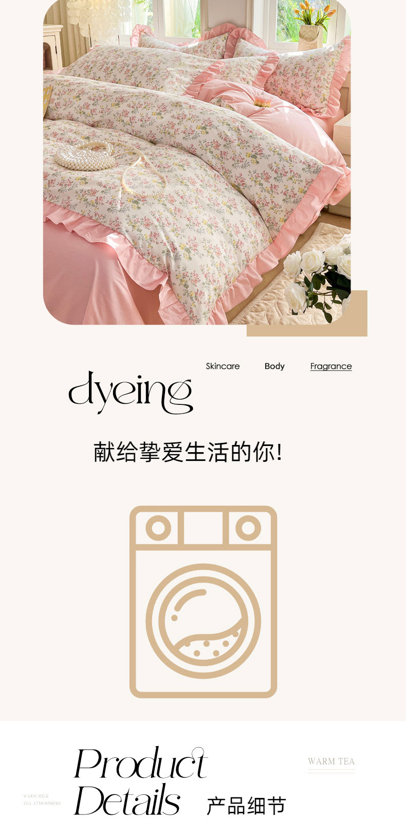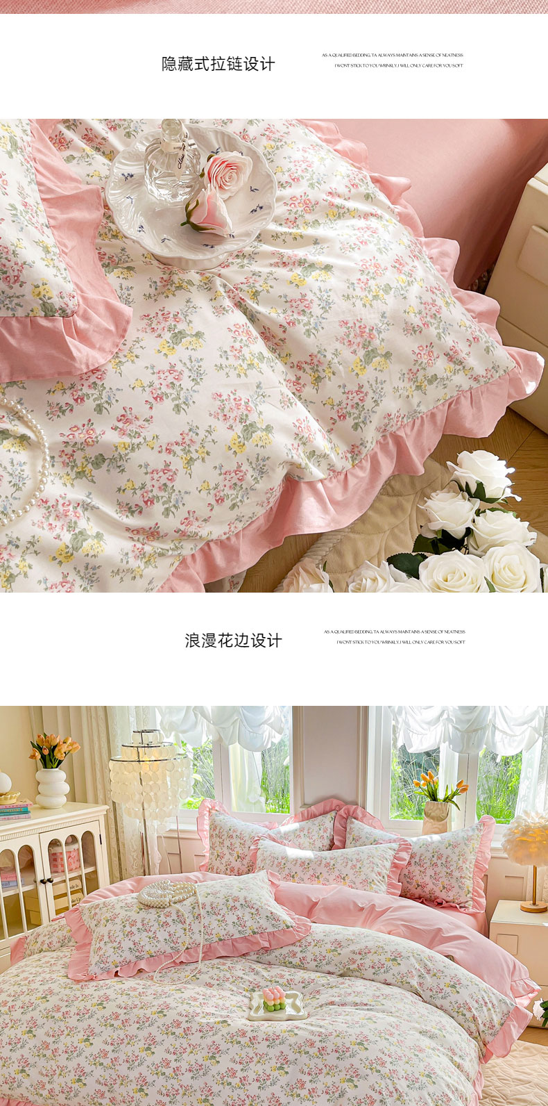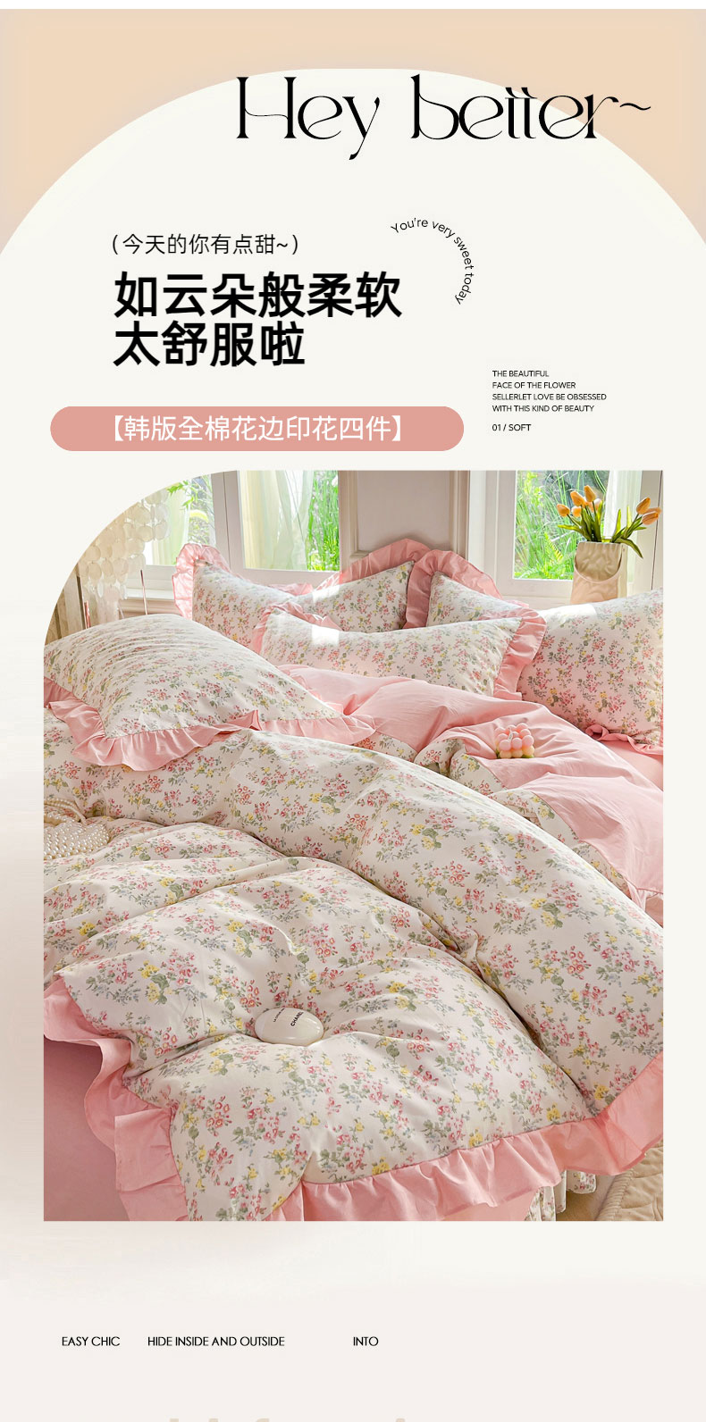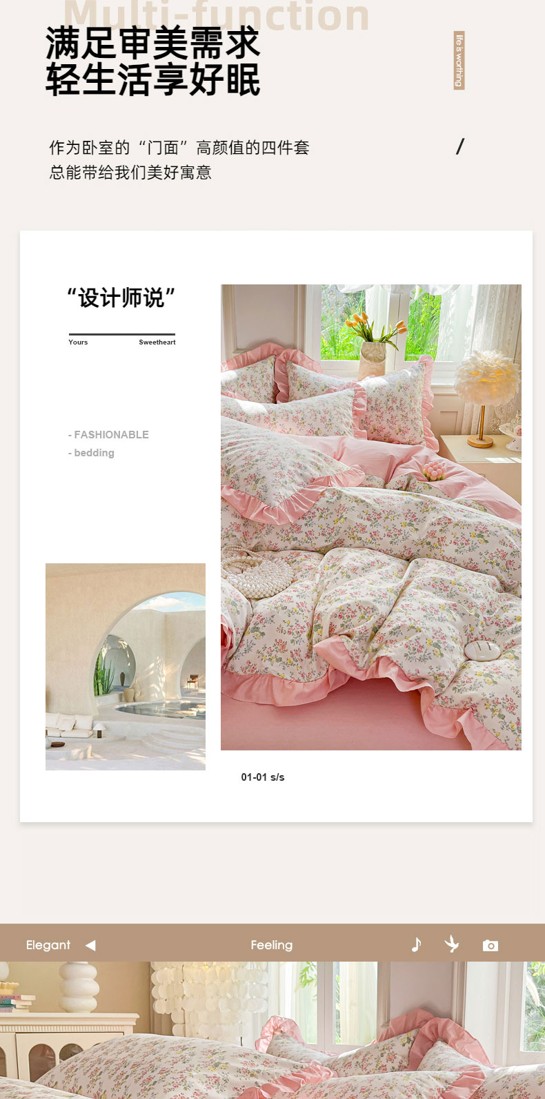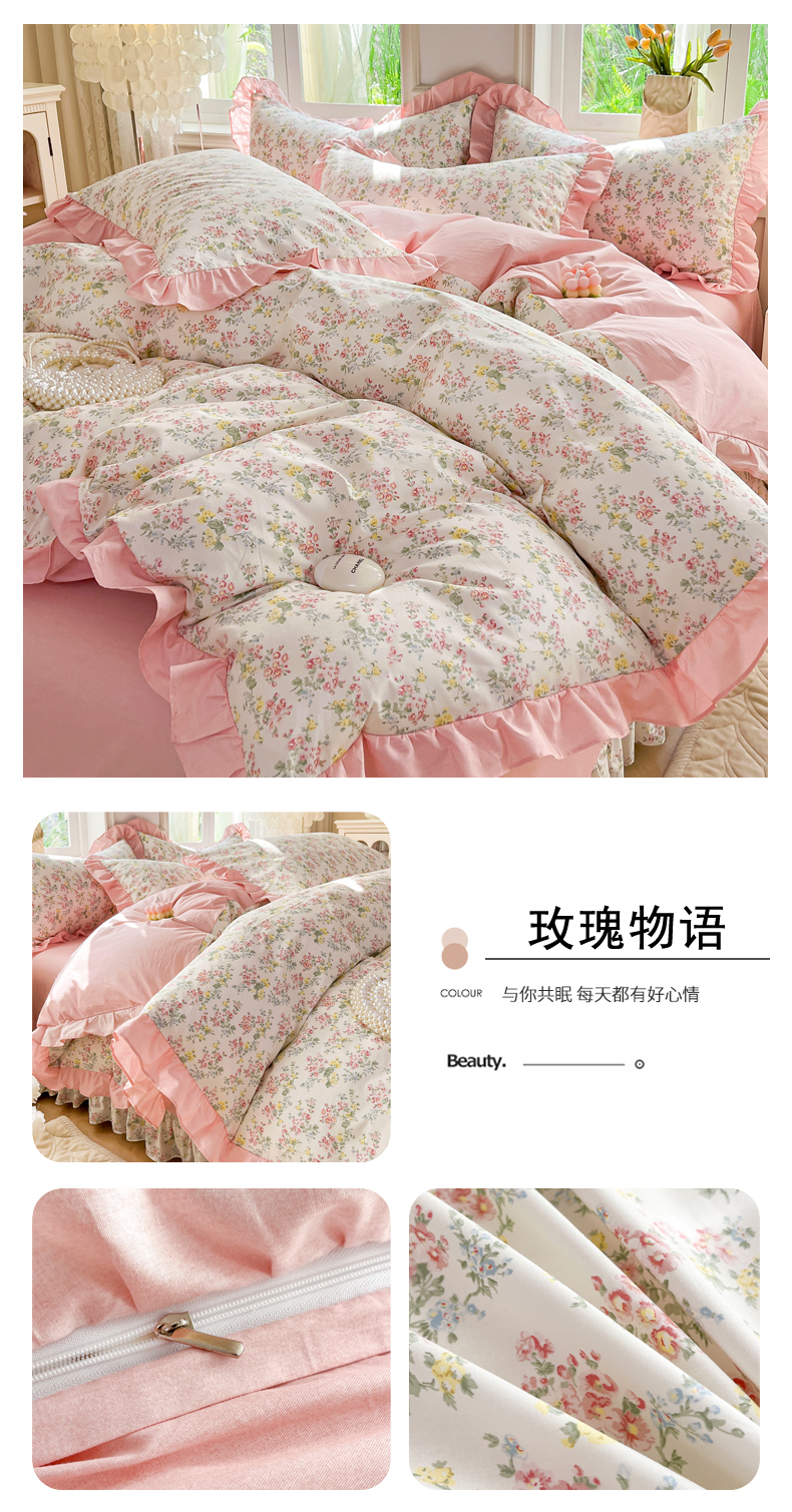 当前位置: 91家纺网 > 商品网购 > 床品套件 > 四件套 > 全棉普通四件套 > 兴美佳家纺 2026新款全棉印花韩版花边床裙款四件套 玫瑰物语