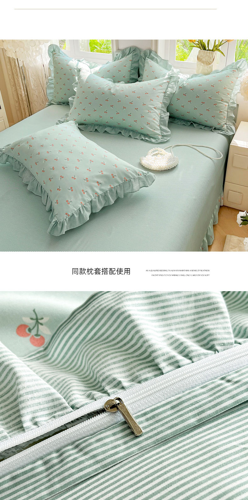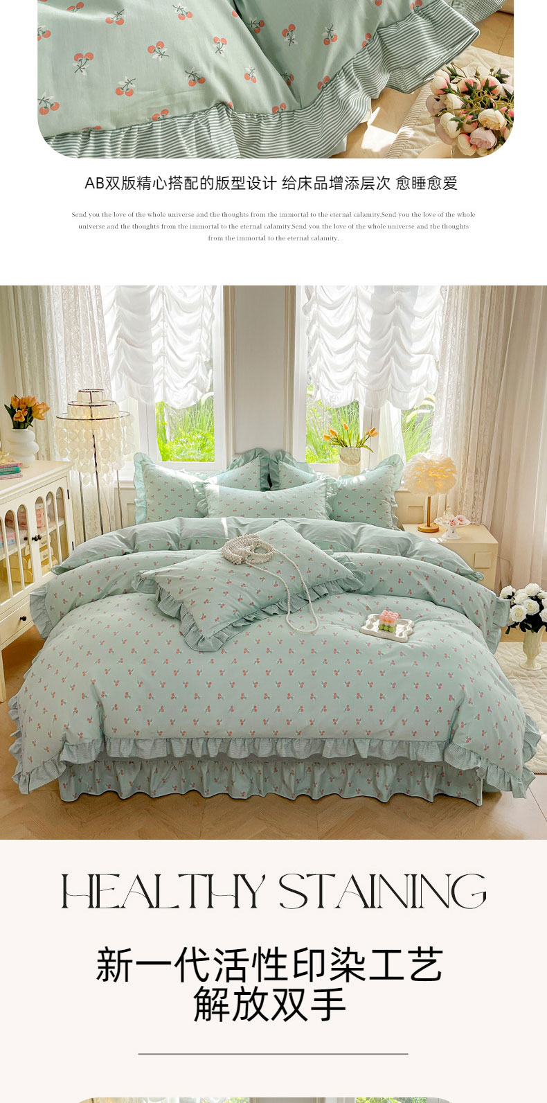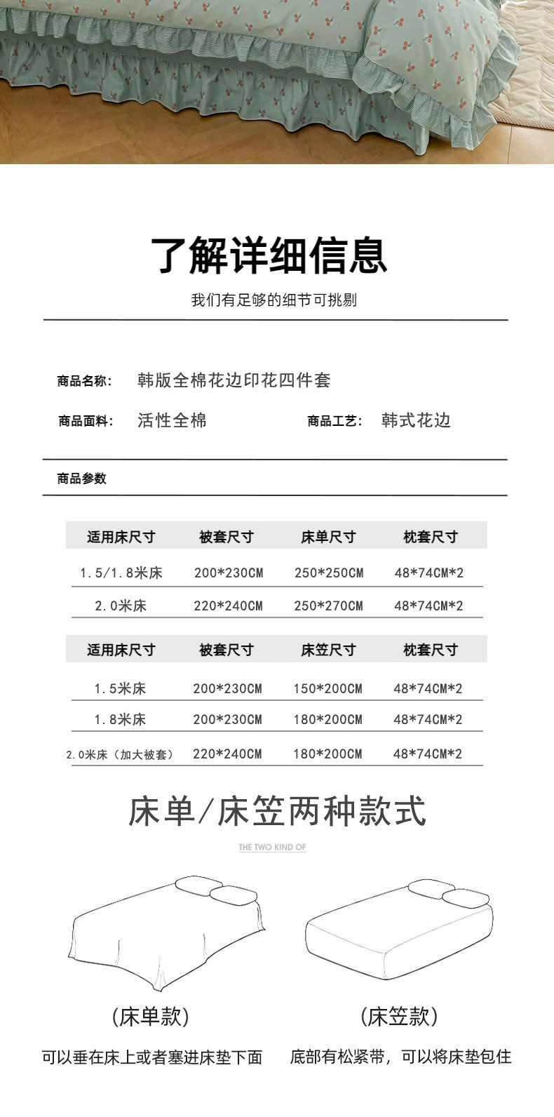 当前位置: 91家纺网 > 商品网购 > 床品套件 > 四件套 > 全棉普通四件套 > 兴美佳家纺 2026新款全棉印花韩版花边床裙款四件套 绽放樱桃
