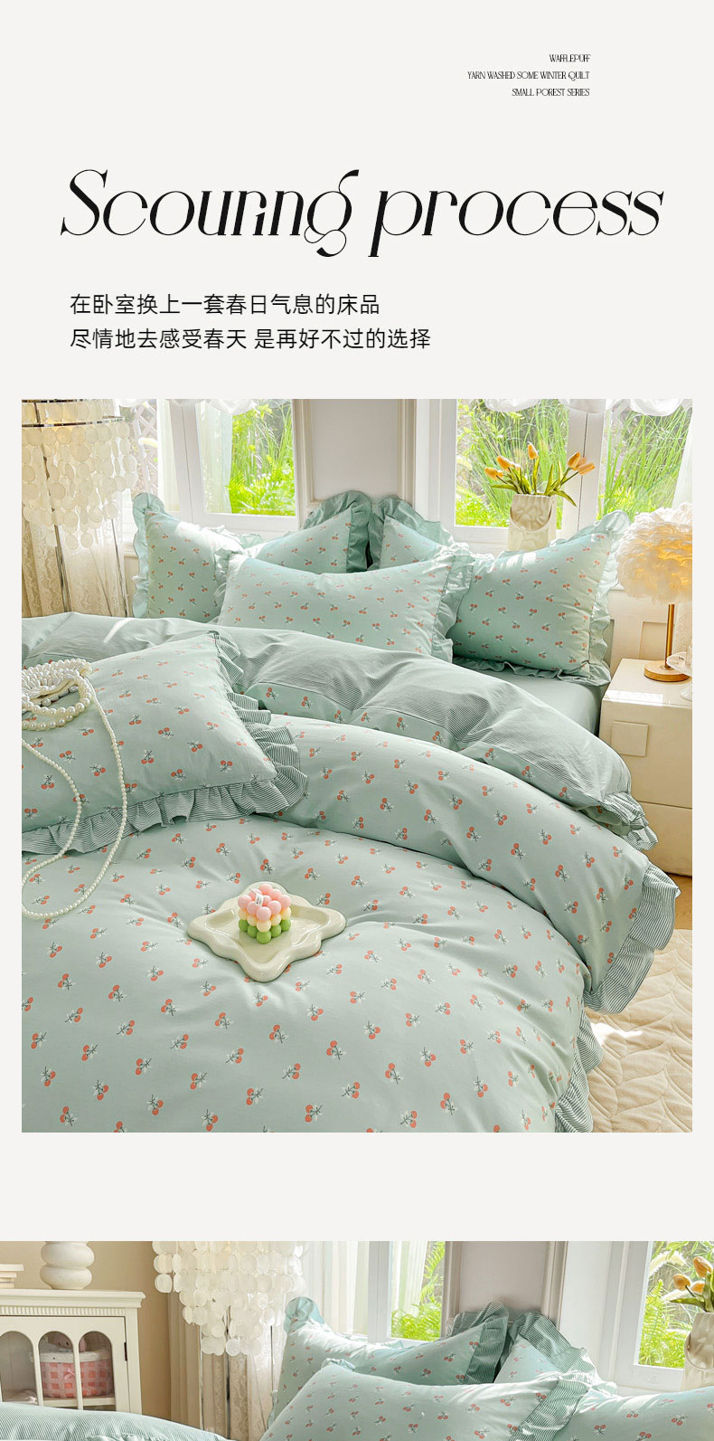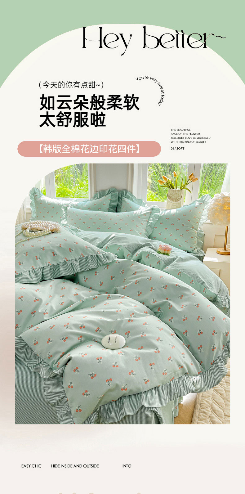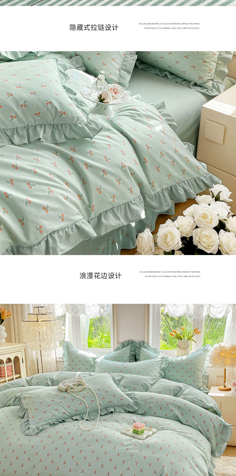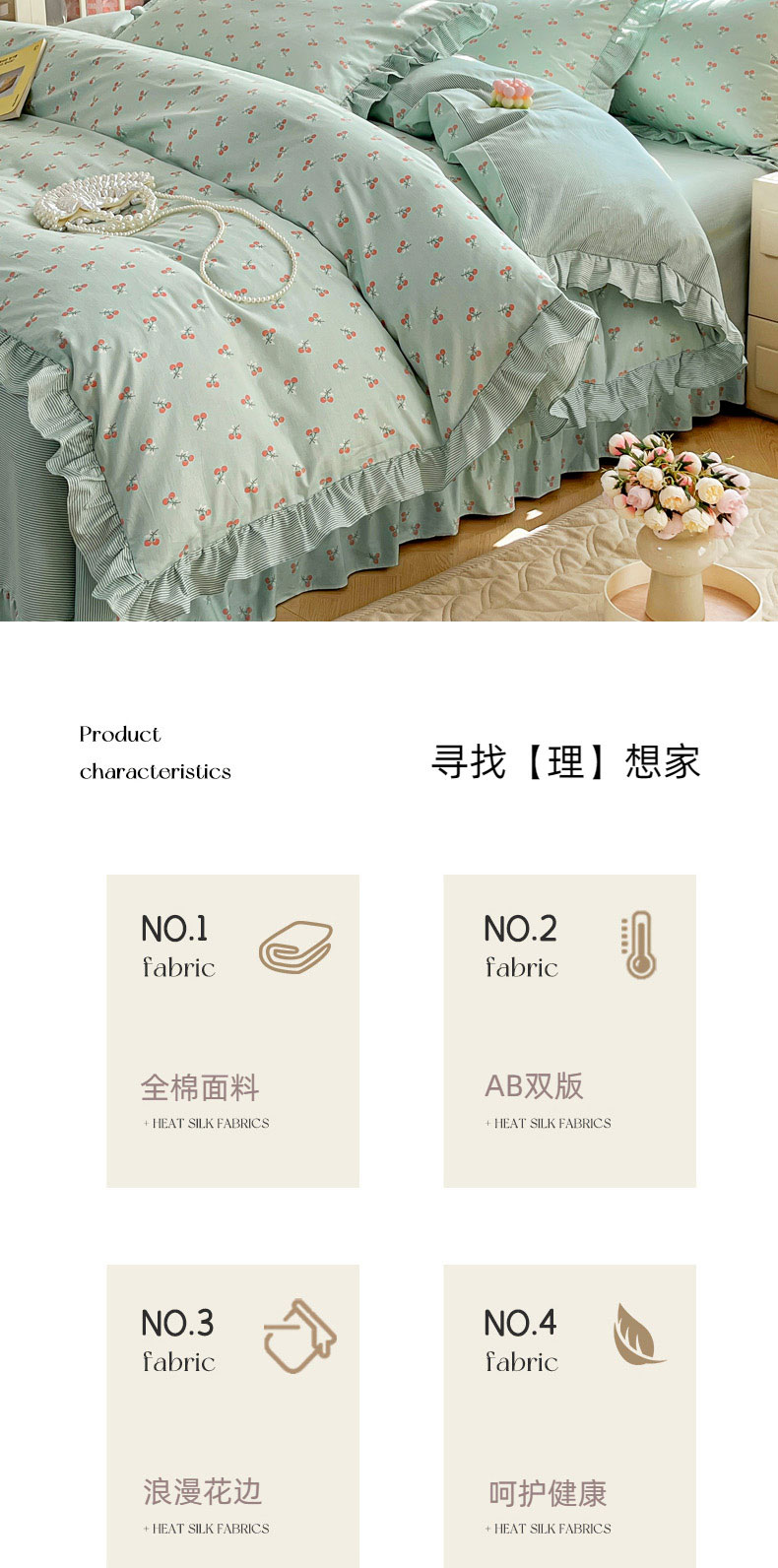当前位置: 91家纺网 > 商品网购 > 床品套件 > 四件套 > 全棉普通四件套 > 兴美佳家纺 2026新款全棉印花韩版花边床裙款四件套 绽放樱桃