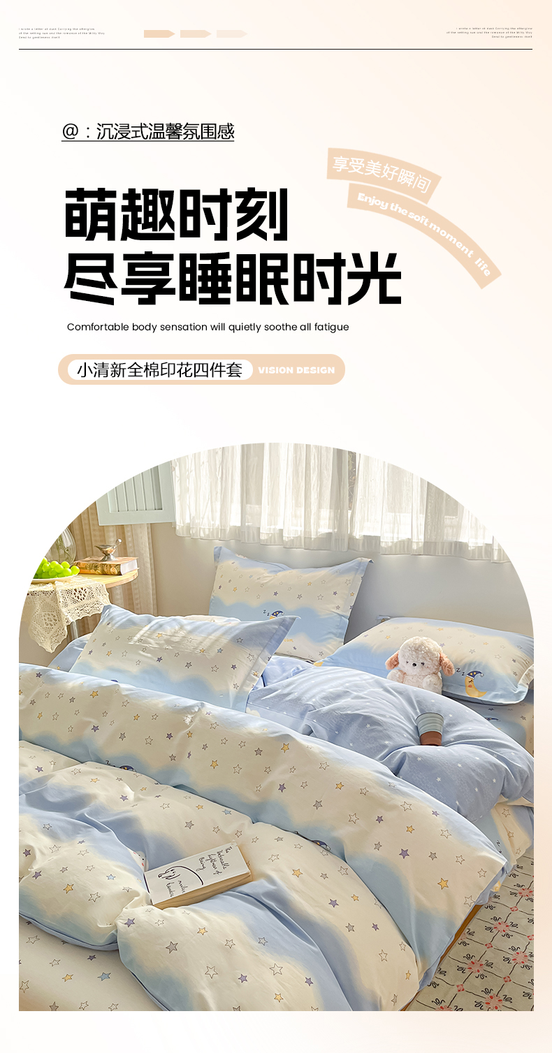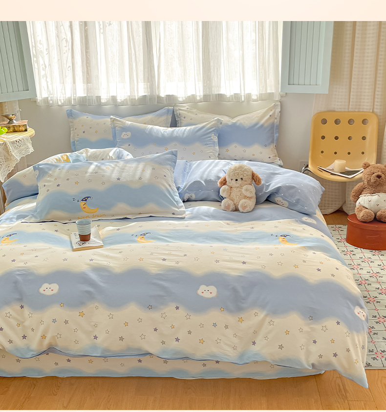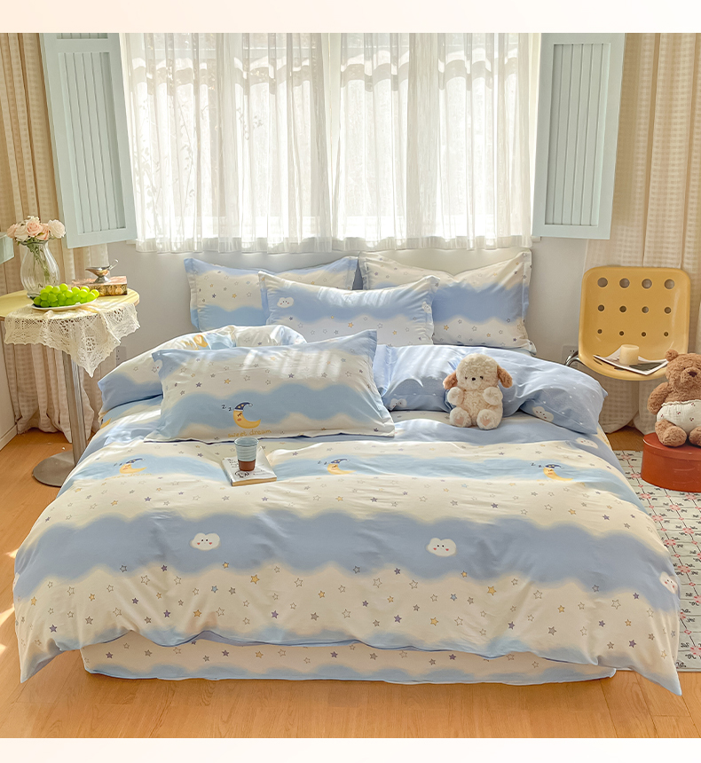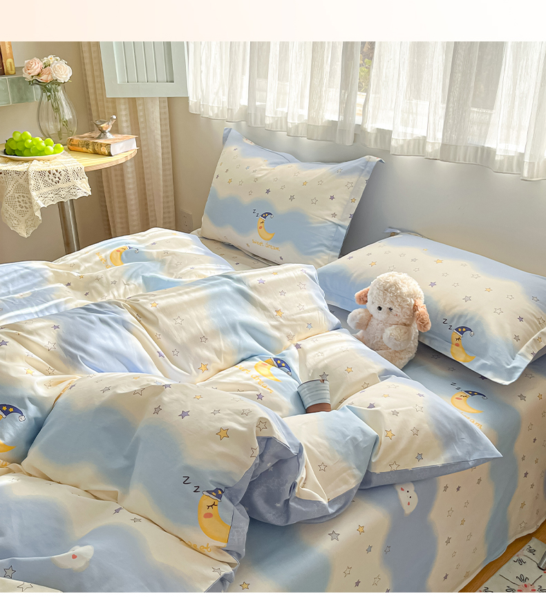 当前位置: 91家纺网 > 商品网购 > 床品套件 > 四件套 > 全棉普通四件套 > 花梦欣 2026新款全棉印花系列简约卡通款四件套 星辰入梦