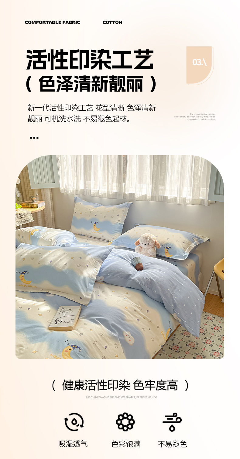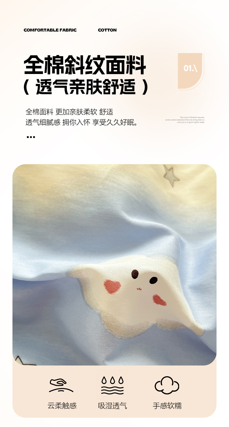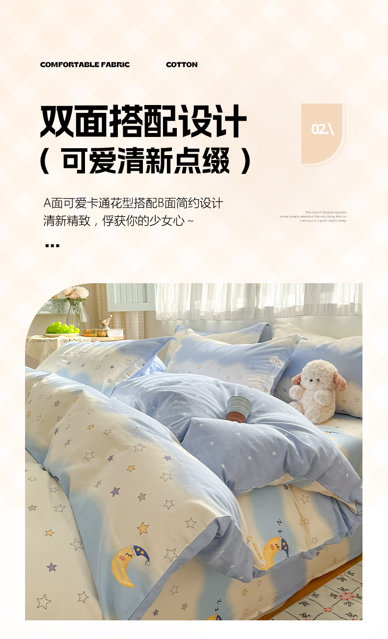 当前位置: 91家纺网 > 商品网购 > 床品套件 > 四件套 > 全棉普通四件套 > 花梦欣 2026新款全棉印花系列简约卡通款四件套 星辰入梦