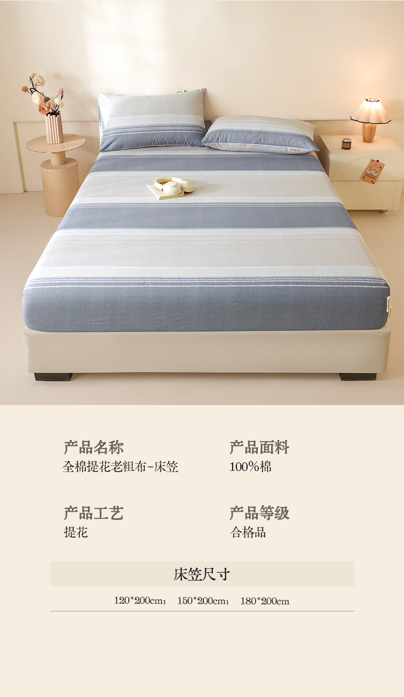 商品名称:(总)涵宸家纺 2026新款全棉提花老粗布-单床笠