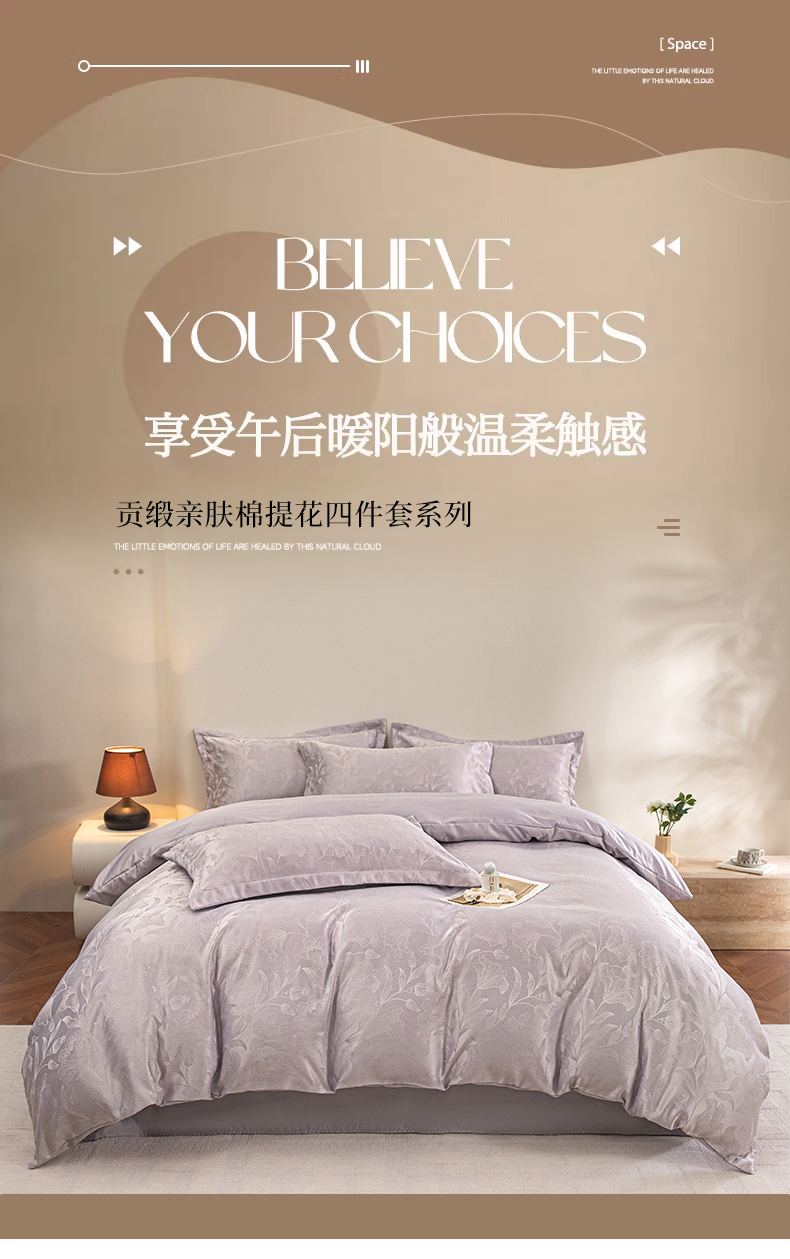 (总)金牛座家纺 2026新款高克重贡缎提花亲肤棉四件套-情愫系列,情愫-灰,情愫-奶白,情愫-浅豆沙,情愫-浅紫,情愫-香槟