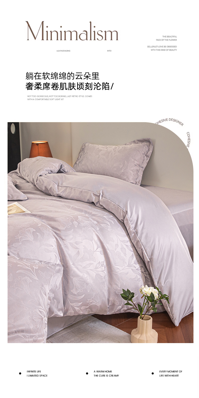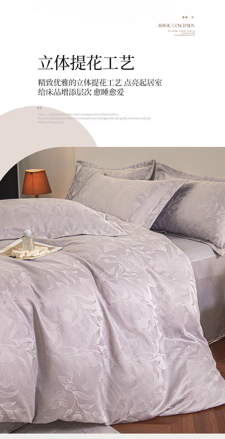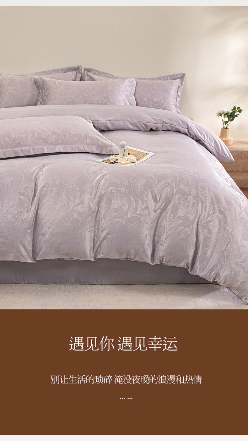 金牛座家纺 2026新款高克重贡缎提花亲肤棉四件套系列 情愫-浅紫