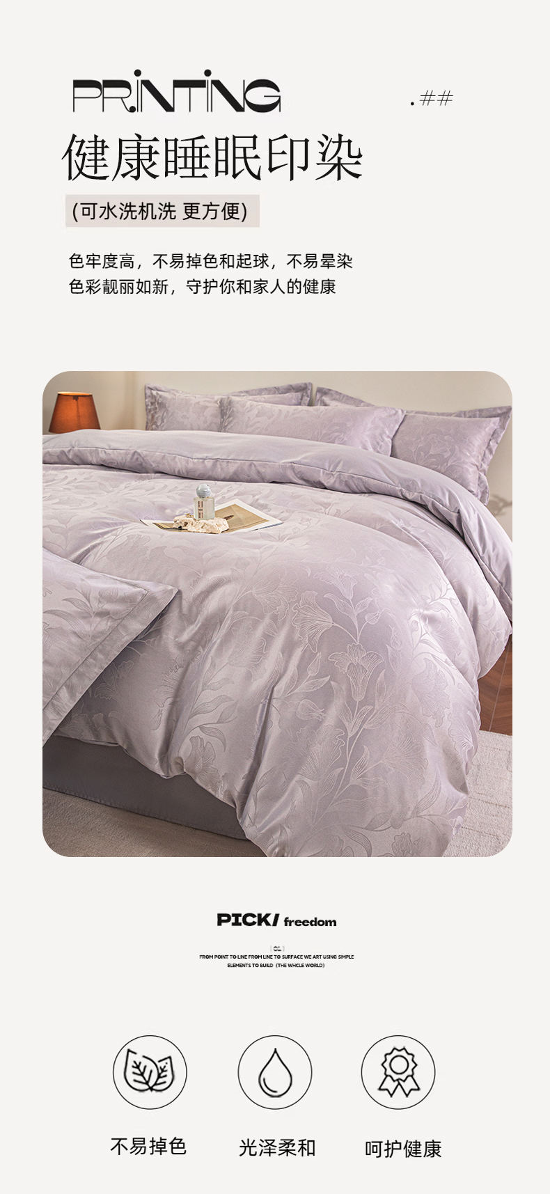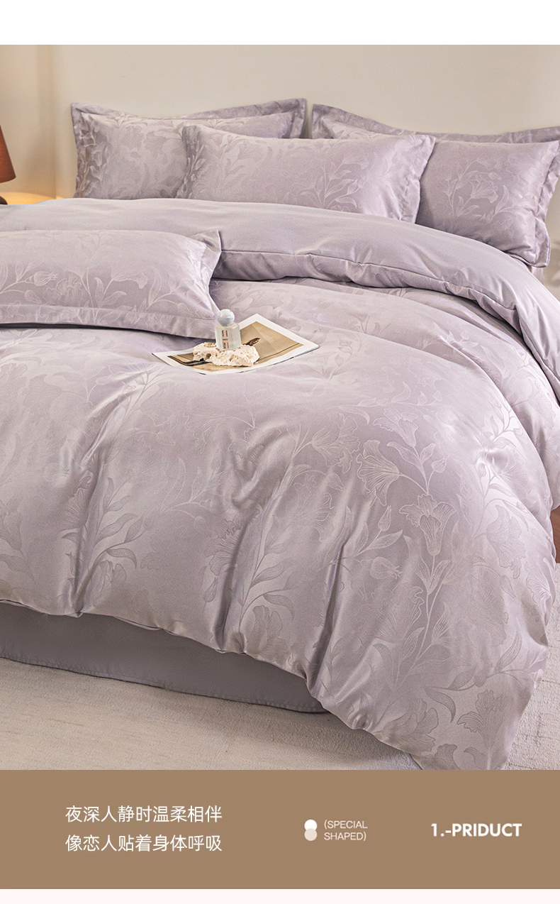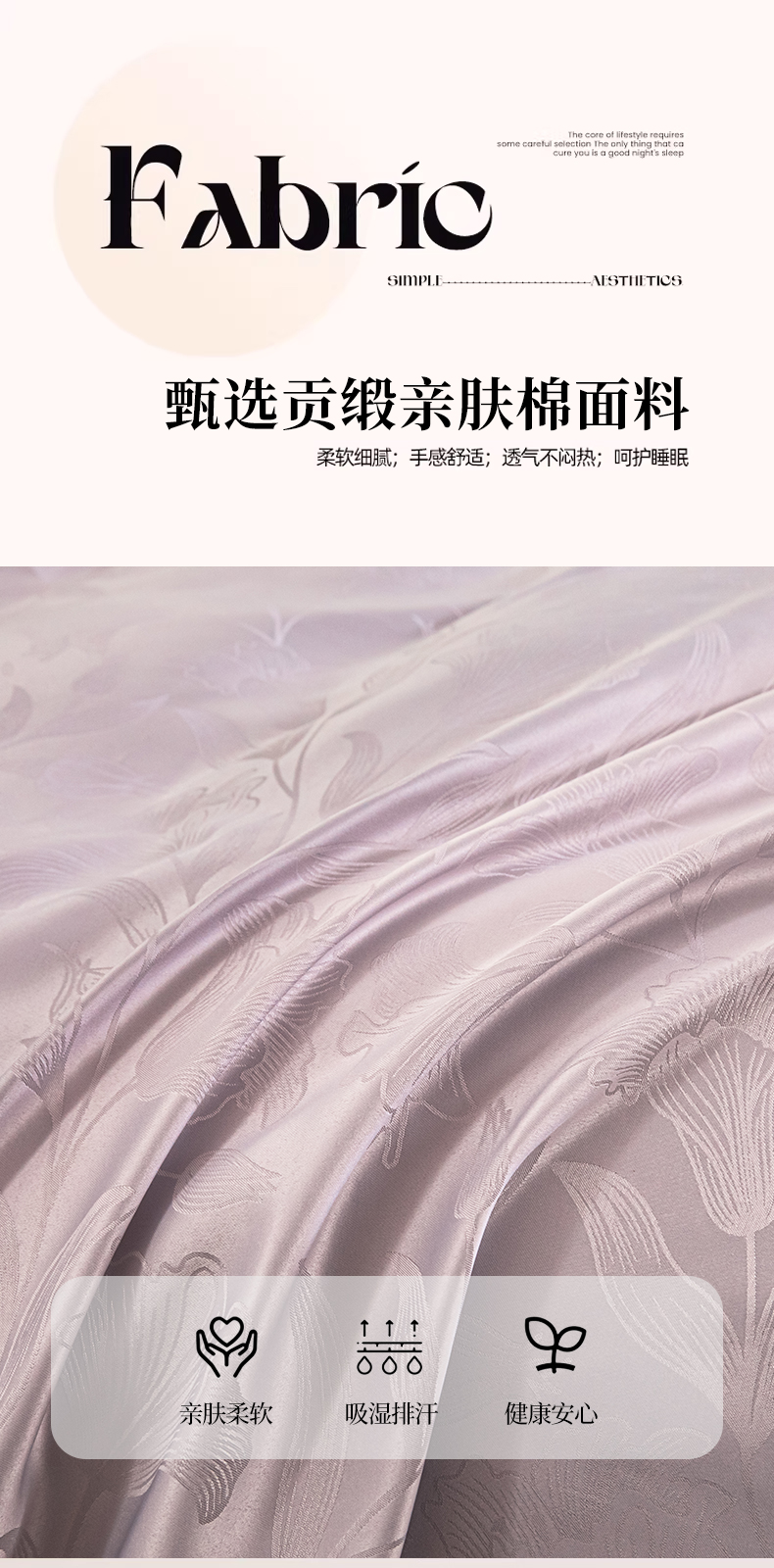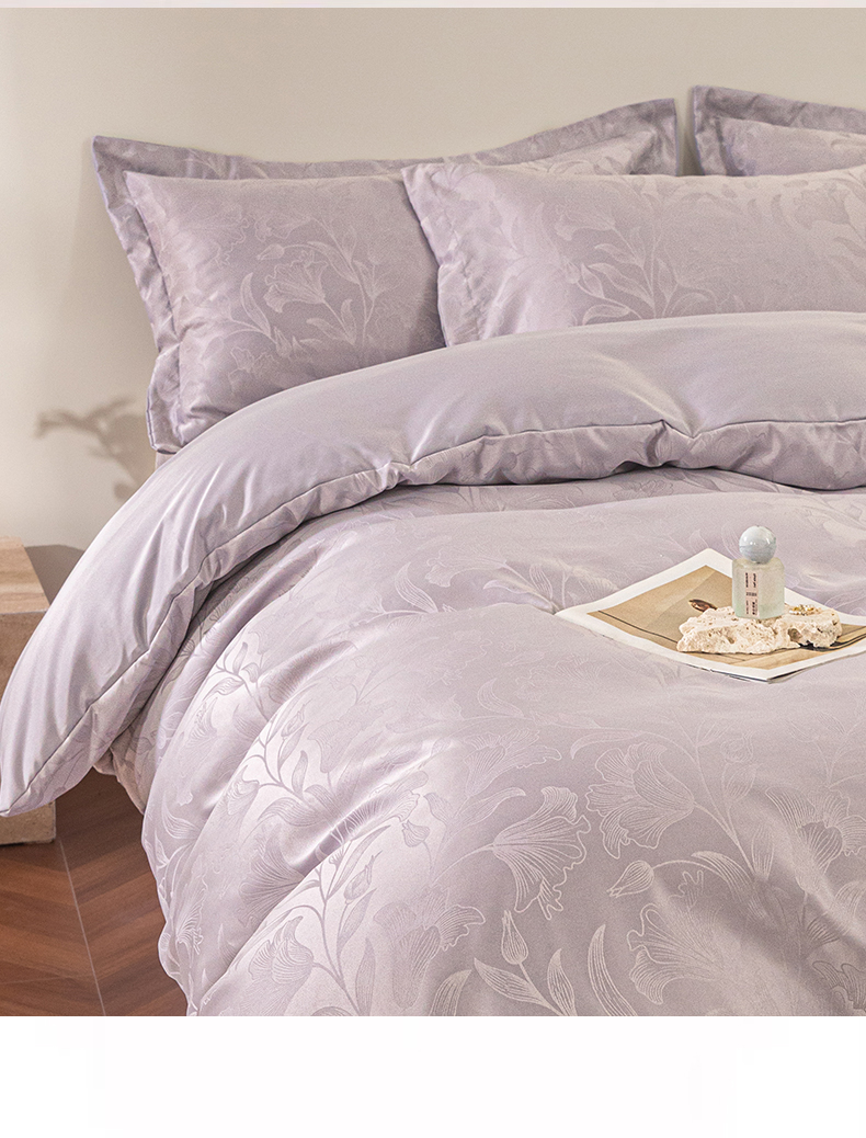 商品名称:金牛座家纺 2026新款高克重贡缎提花亲肤棉四件套系列 情愫-浅紫