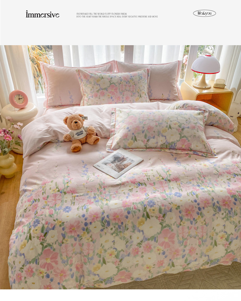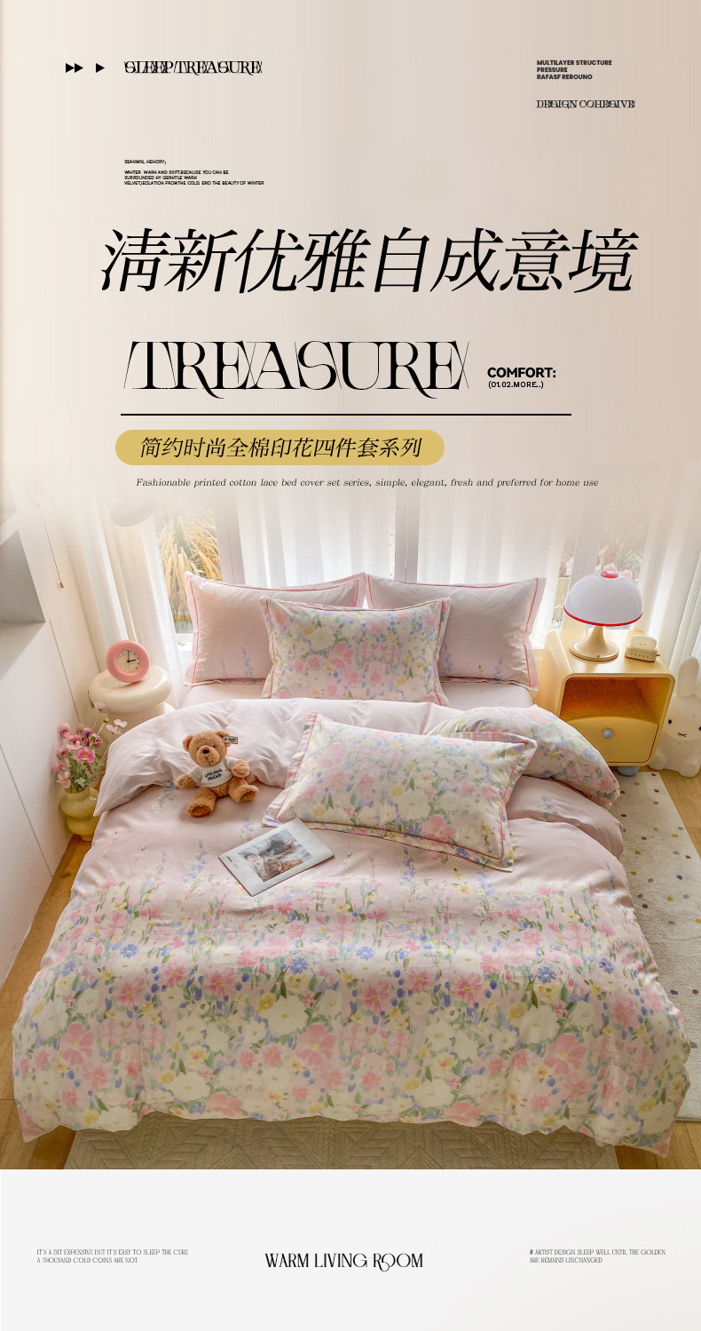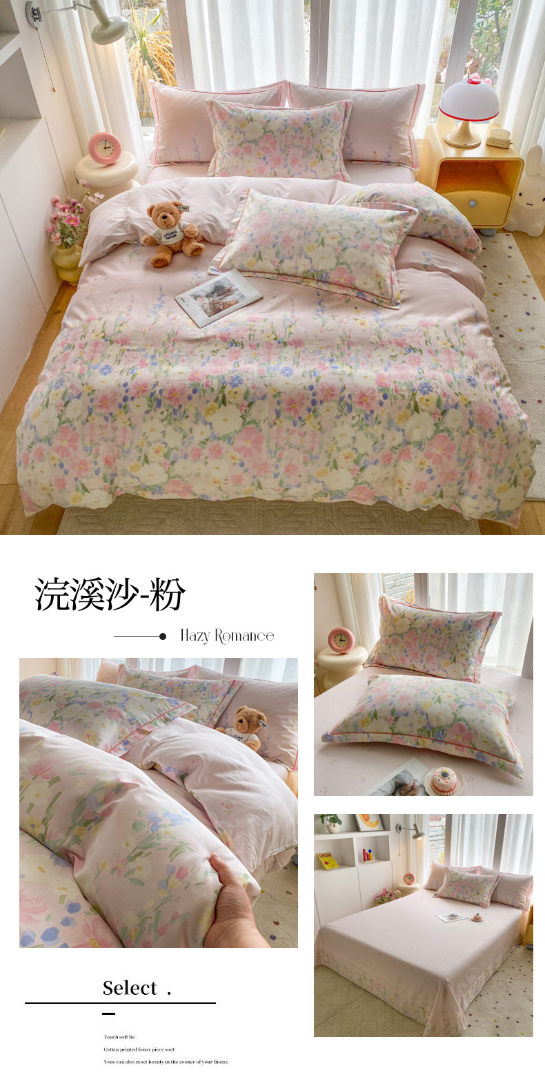 当前位置: 91家纺网 > 商品网购 > 床品套件 > 四件套 > 全棉普通四件套 > 钰锦铂2026新款直播爆款全棉四件套13070吊边床单一字绣印花纯棉三件套四件套 浣溪沙-粉