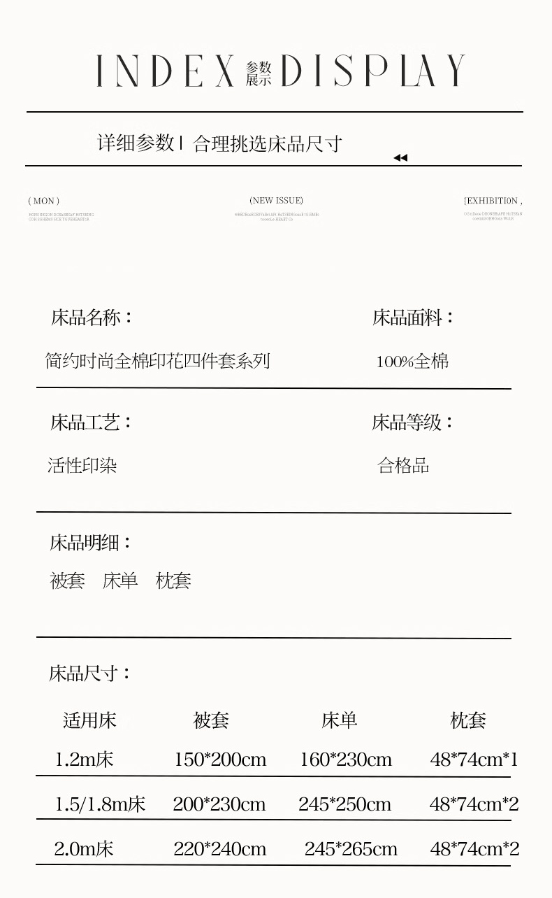 2.0床单款四件套被套220*240,床单245*265(圆角带边),枕套48*74x2 | ¥105.00 |