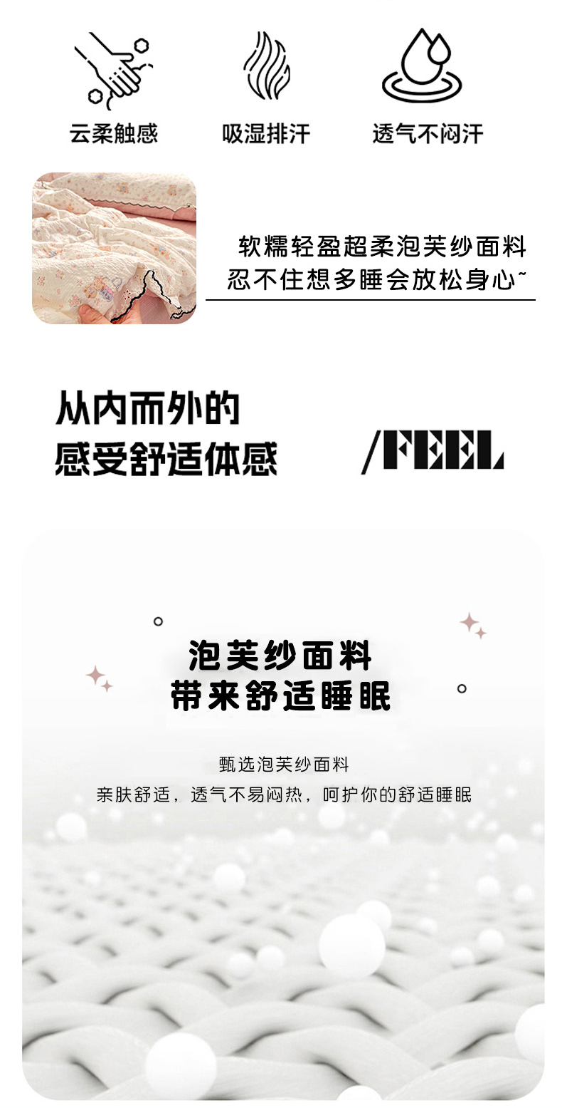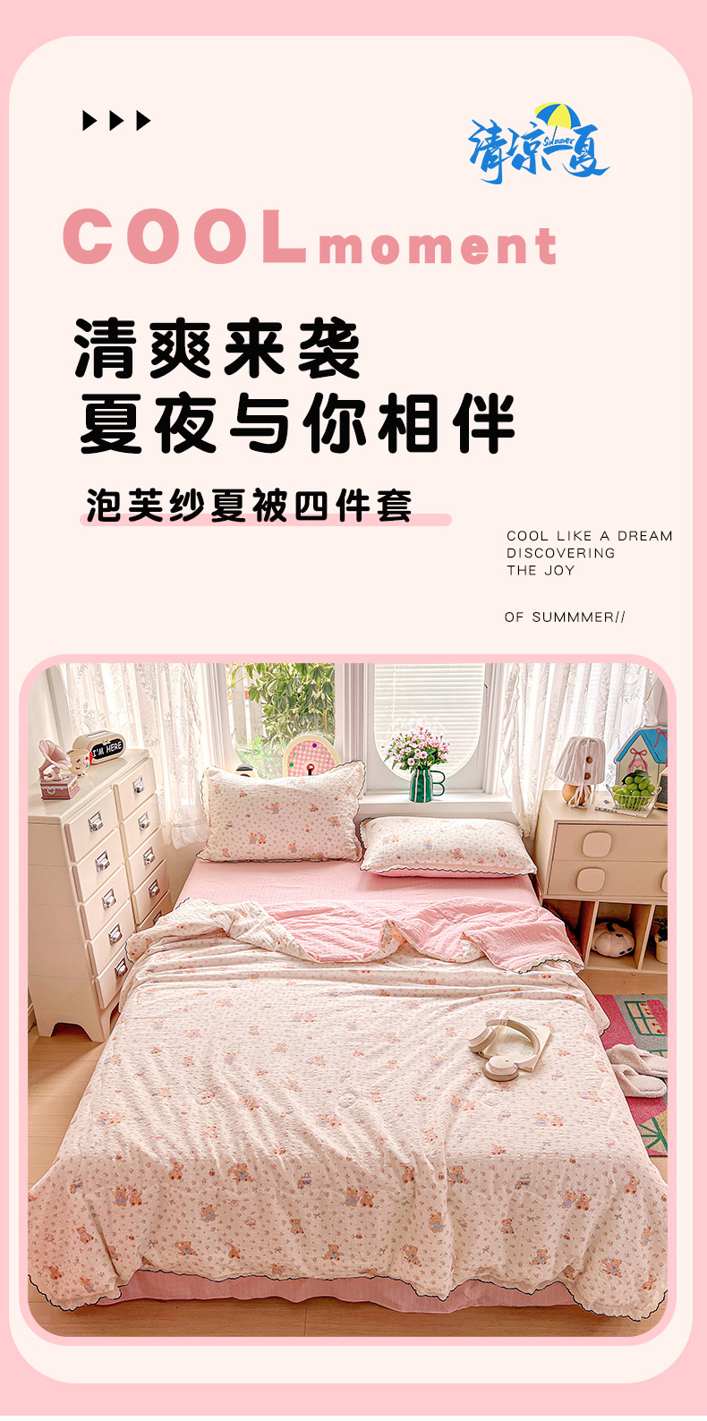 (总)金梦拉家纺 2026春夏新款云感双层纱皱皱纱系列四件套,爱心小兔,芭宠假日蓝,白桃乌龙,宝莉粉,波点熊,春日铃兰,丛林兔,花畔里,凯特蓝,可爱熊熊,蓝格蛋糕熊,萌萌小象,蜜桃草莓,茉莉清风,铅笔熊,清浅,森澜,碎花萌宠,夏日木槿,小福马,小马咖,栀夏,紫色风信,紫韵花茶