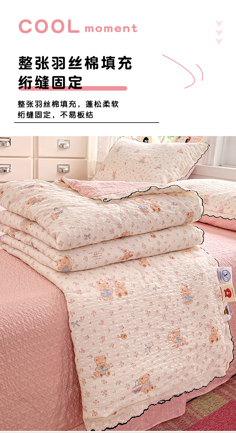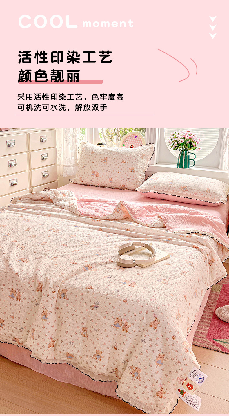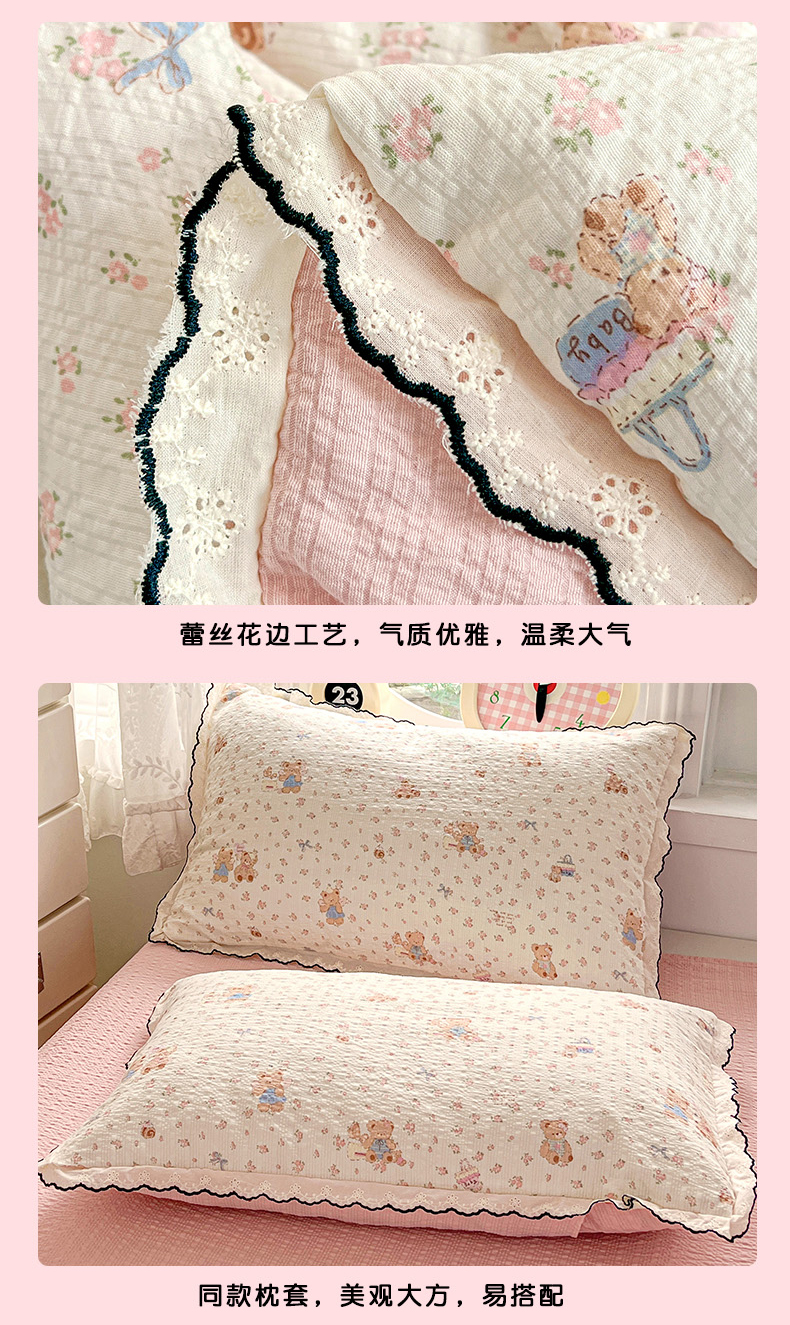金梦拉家纺 2026新款泡芙纱全棉小黑花边夏被四件套 碎花熊