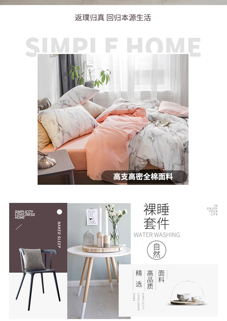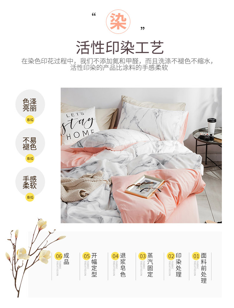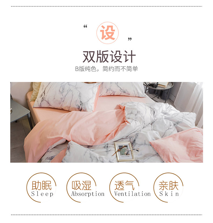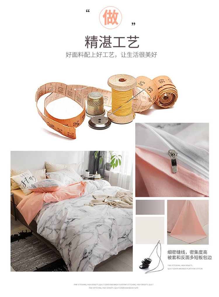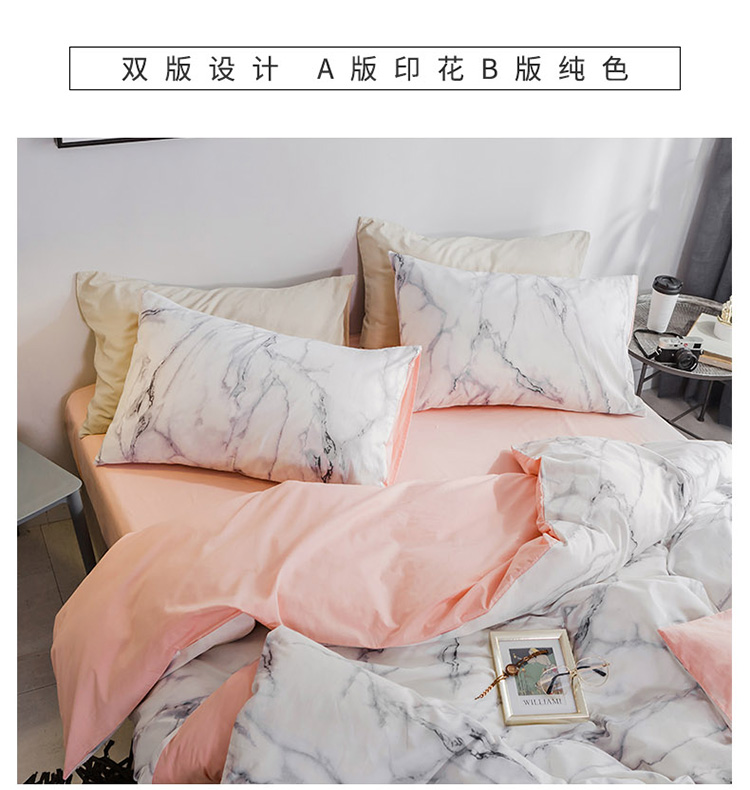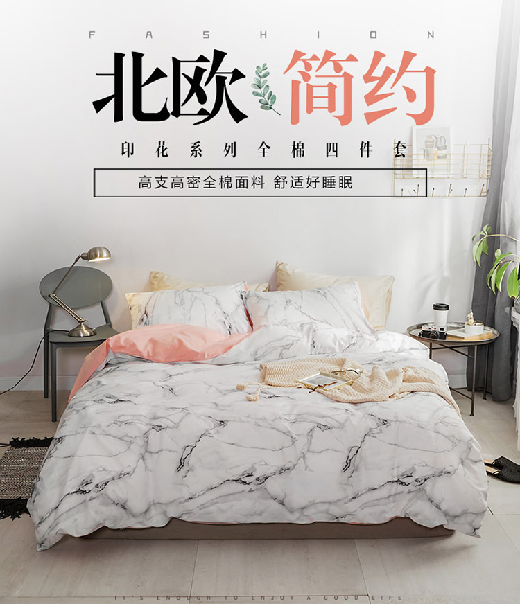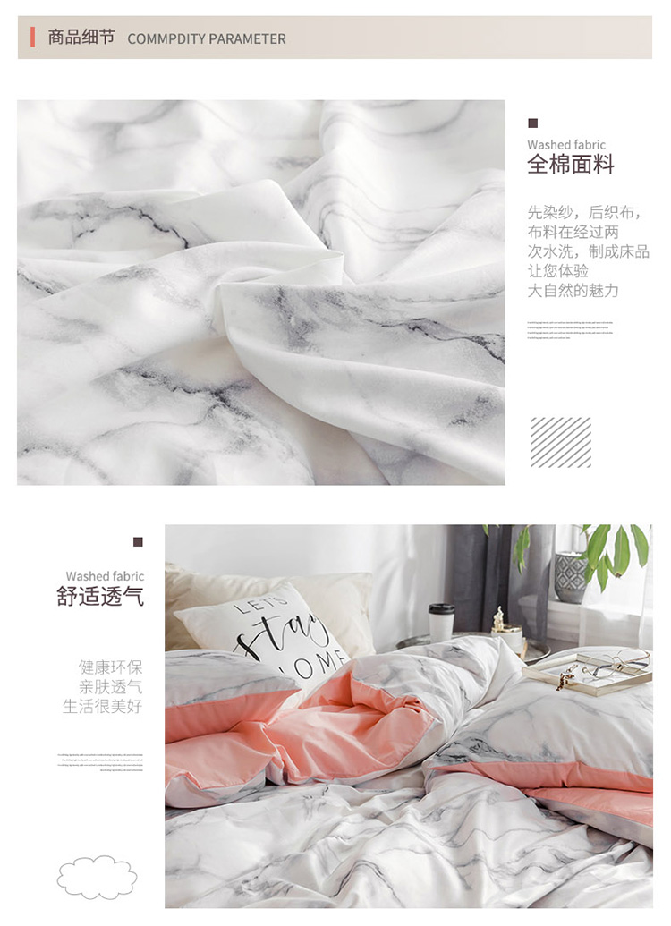 商品名称:艾沁家纺 2018新款北欧简约纯棉四件套石纹-粉