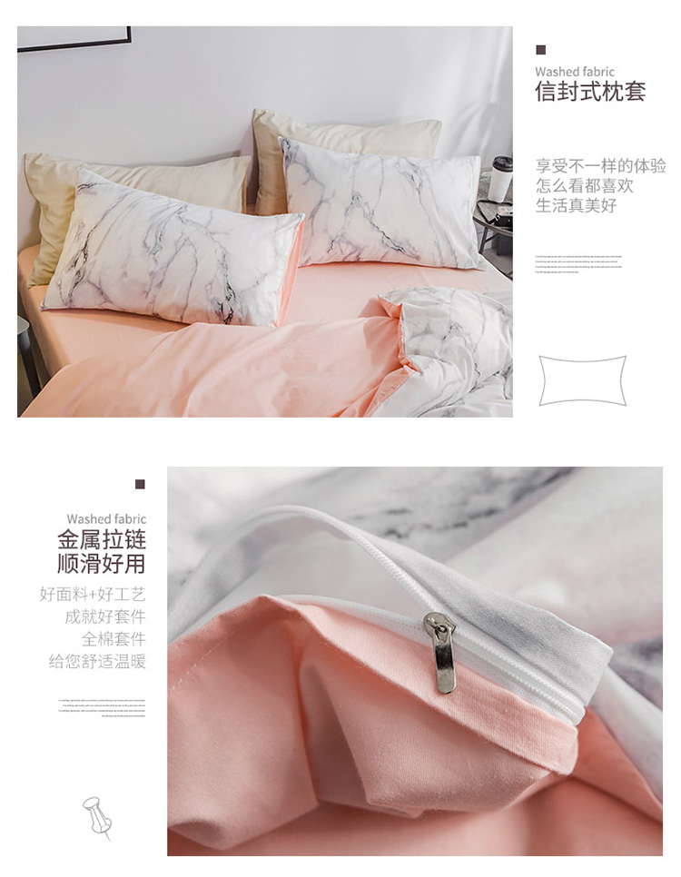 艾沁家纺 2018新款北欧简约纯棉四件套石纹-粉