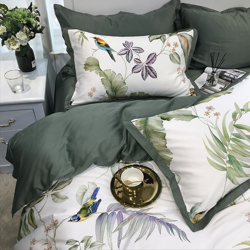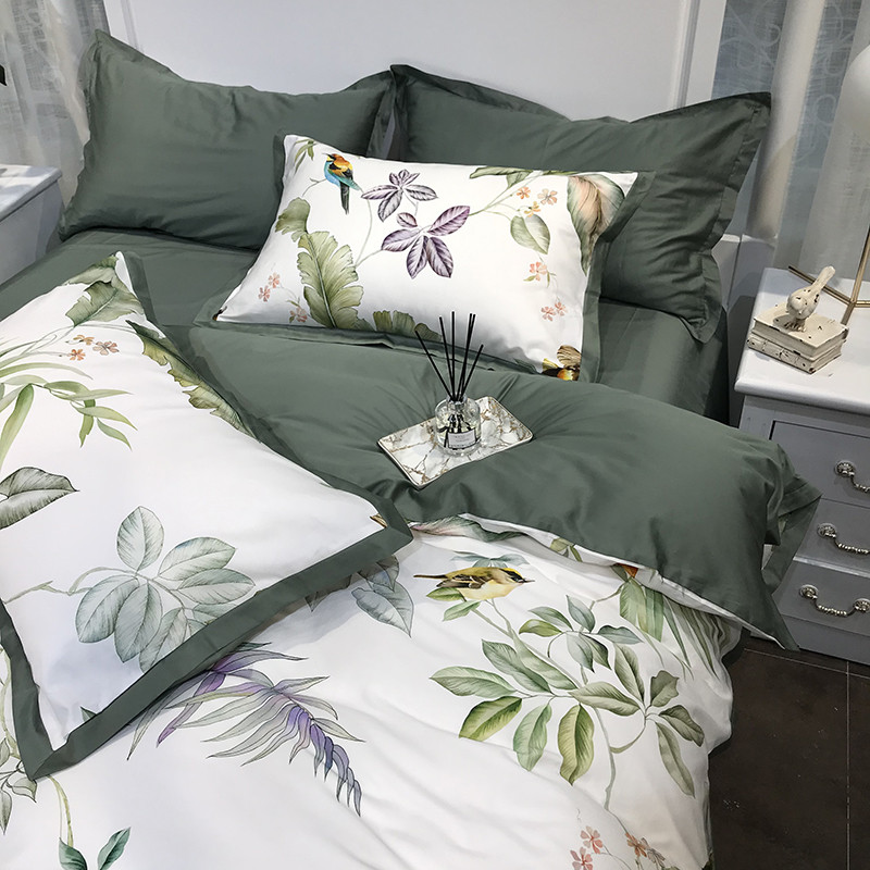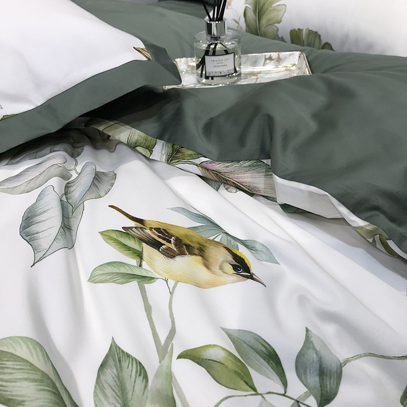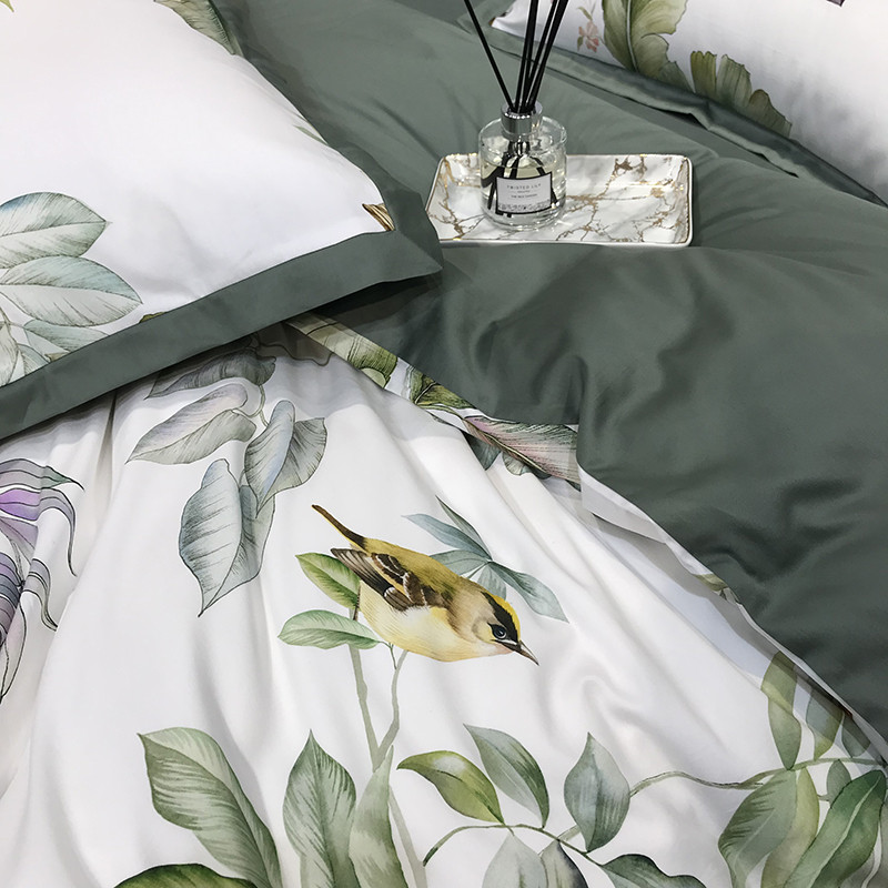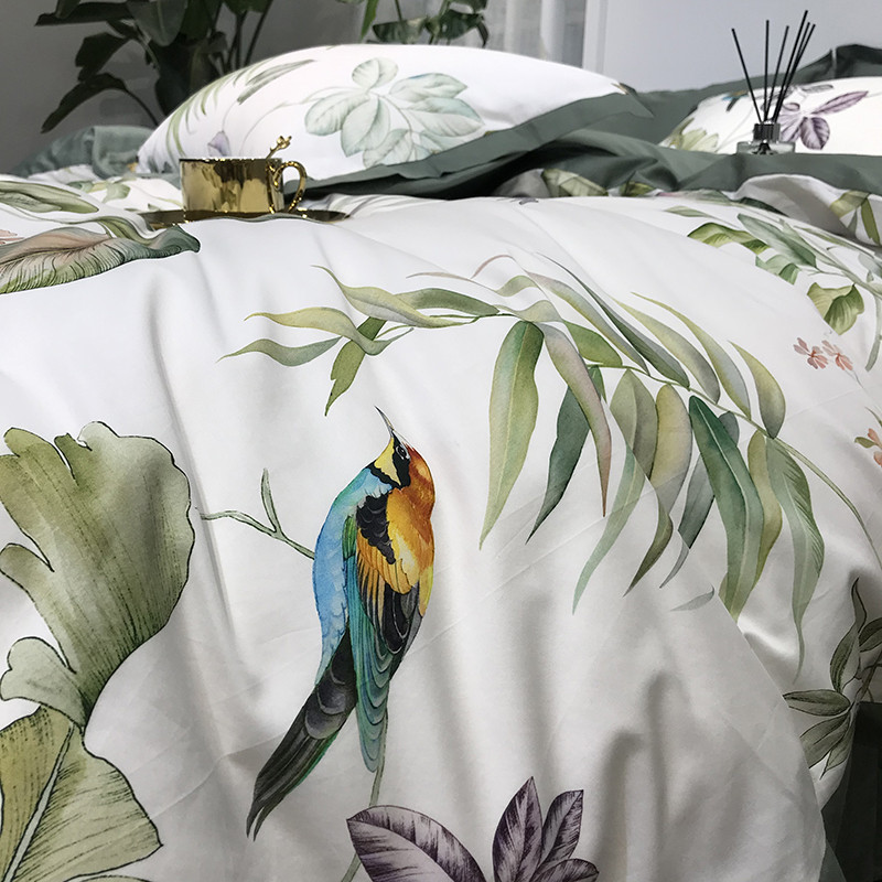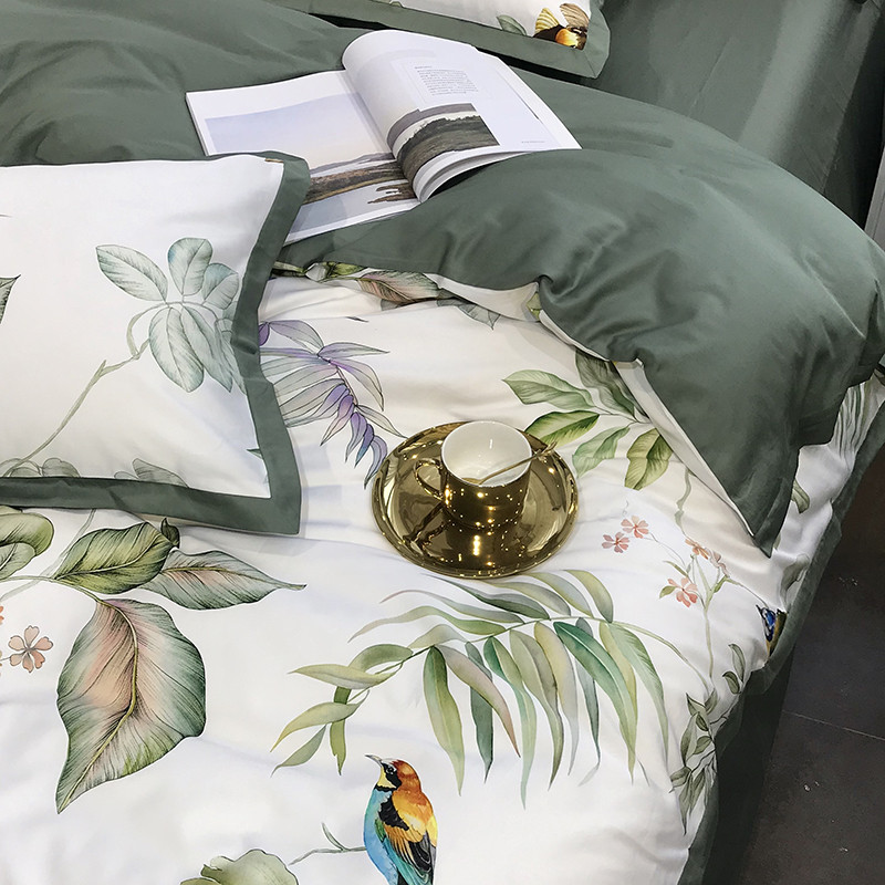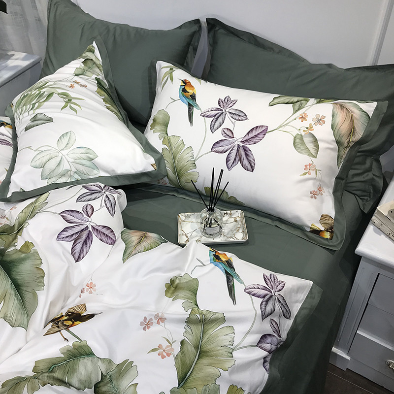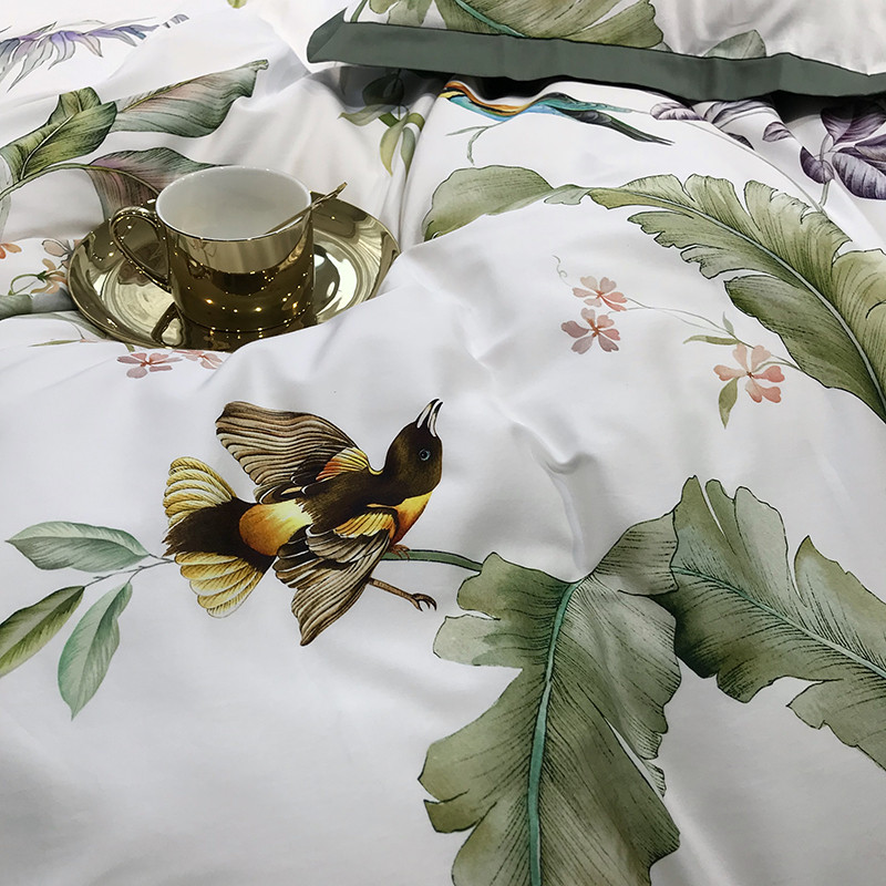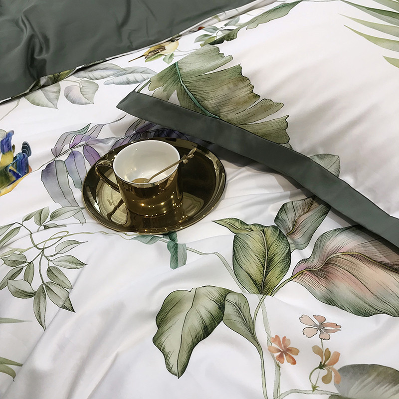 太古汇 60支贡缎长绒棉数码印花小边款四件套 娜塔莎-白