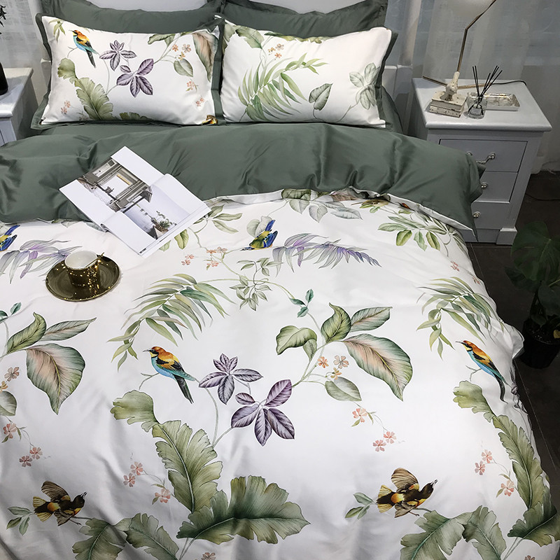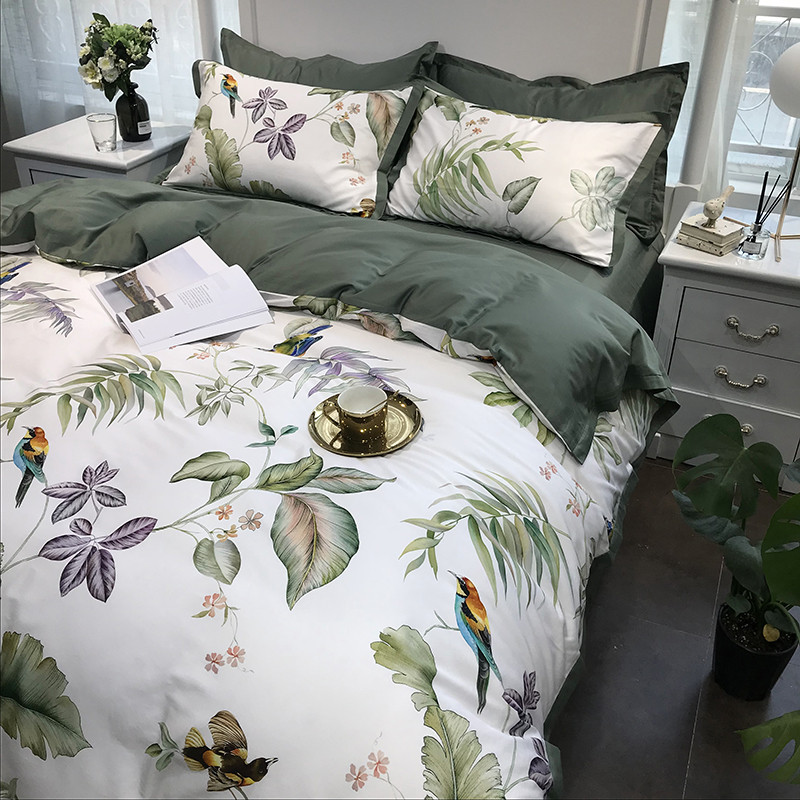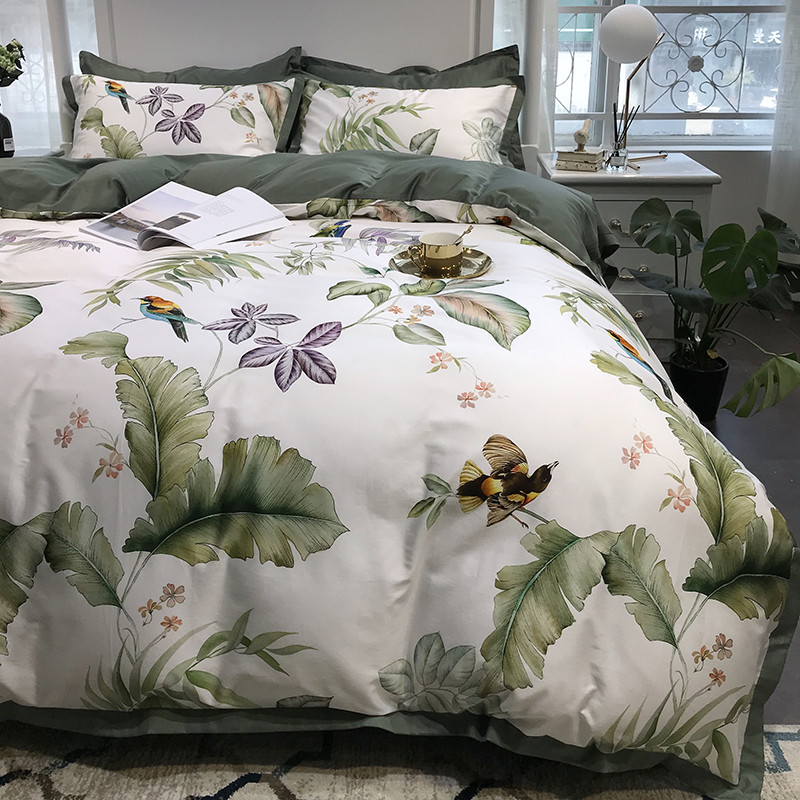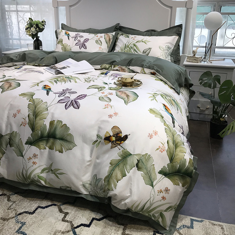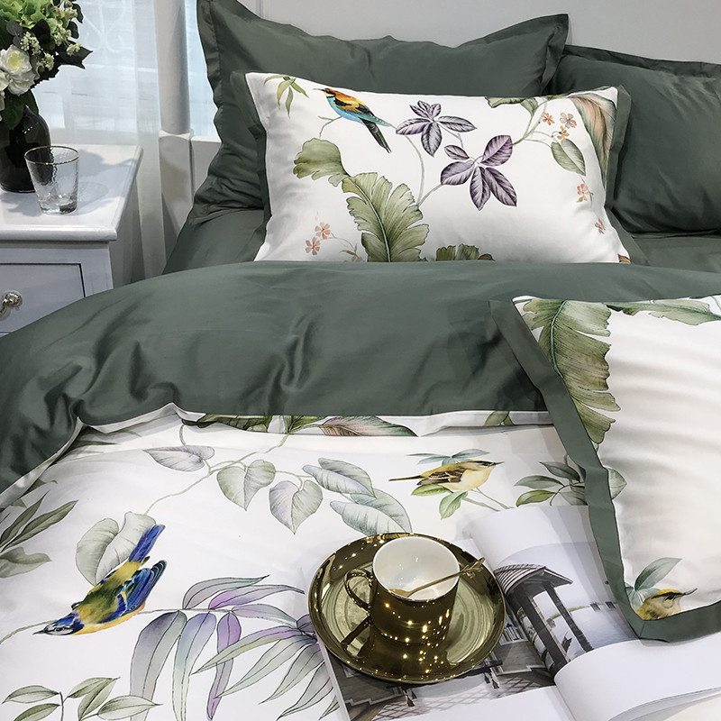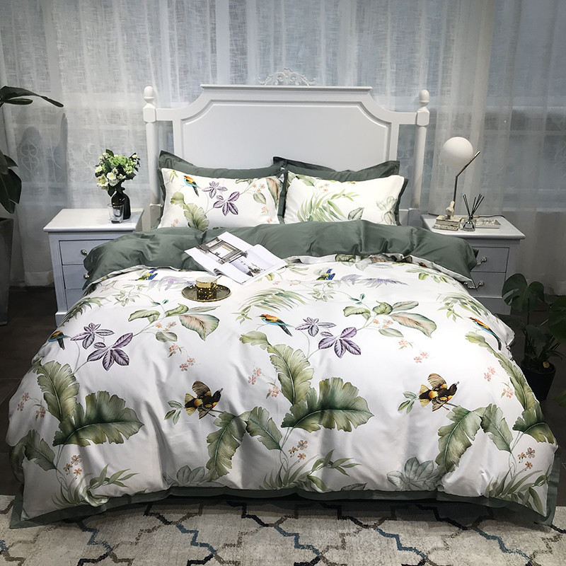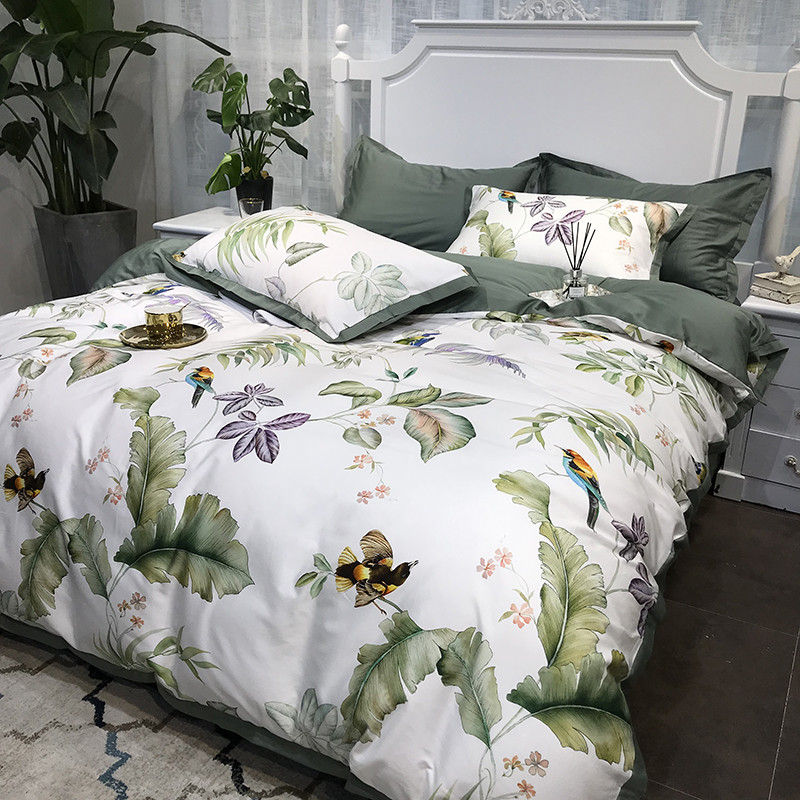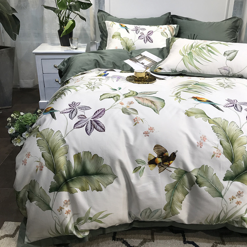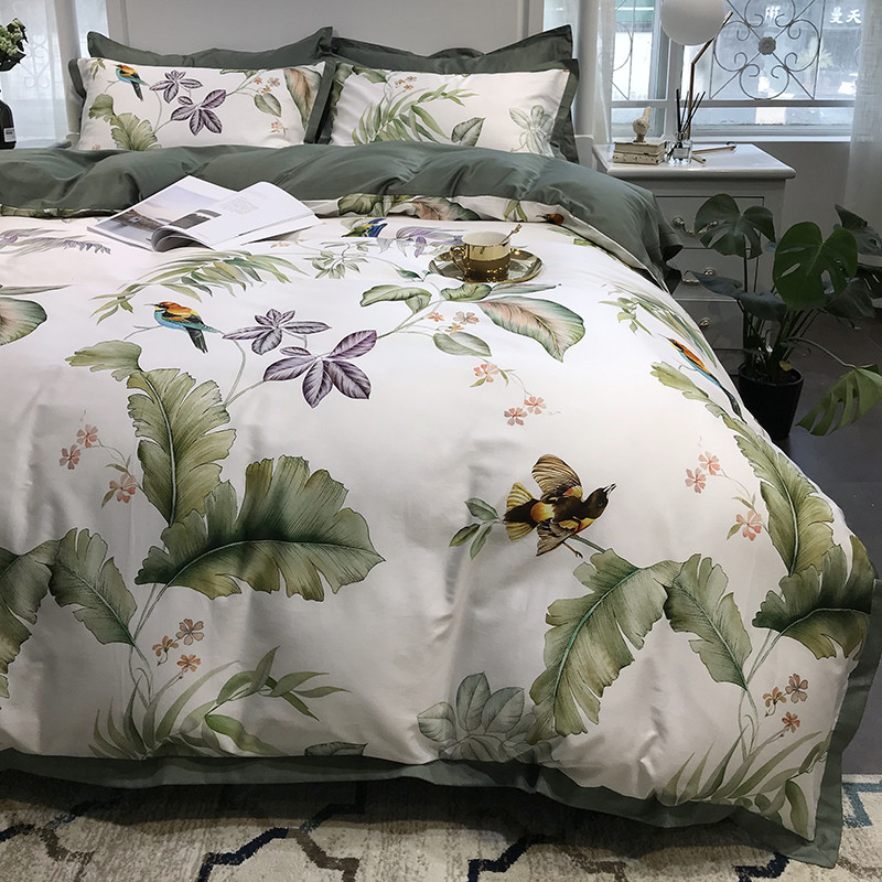 太古汇 60支贡缎长绒棉数码印花小边款四件套 娜塔莎-白