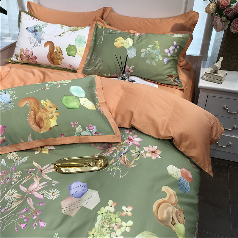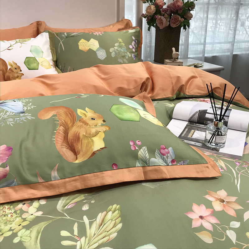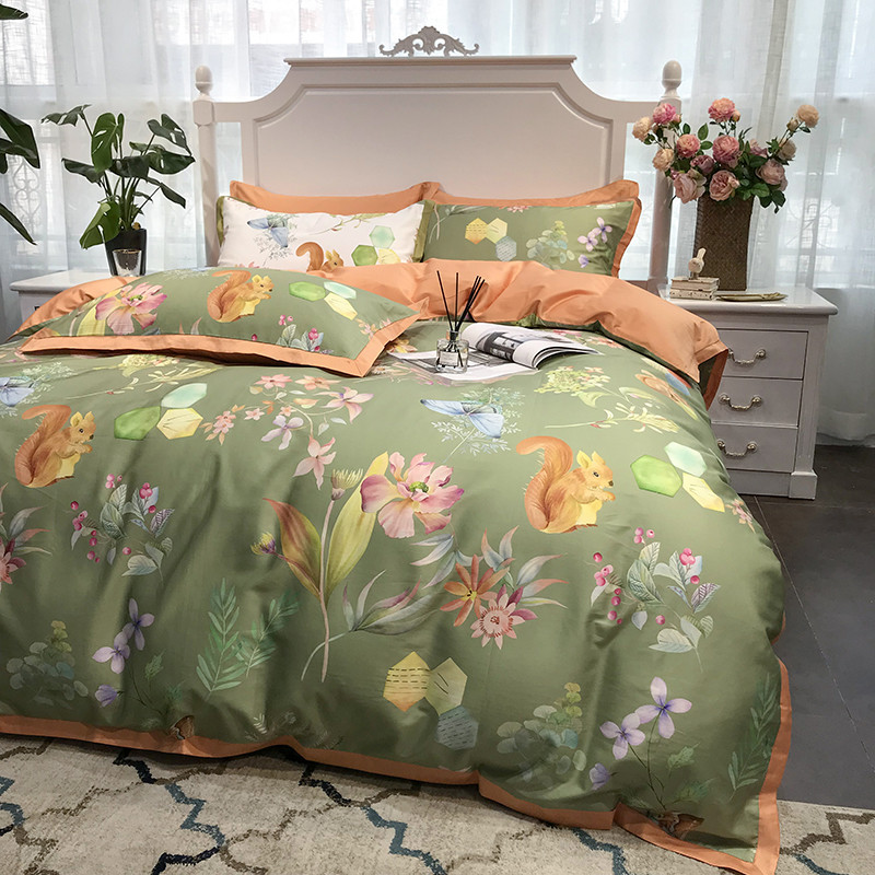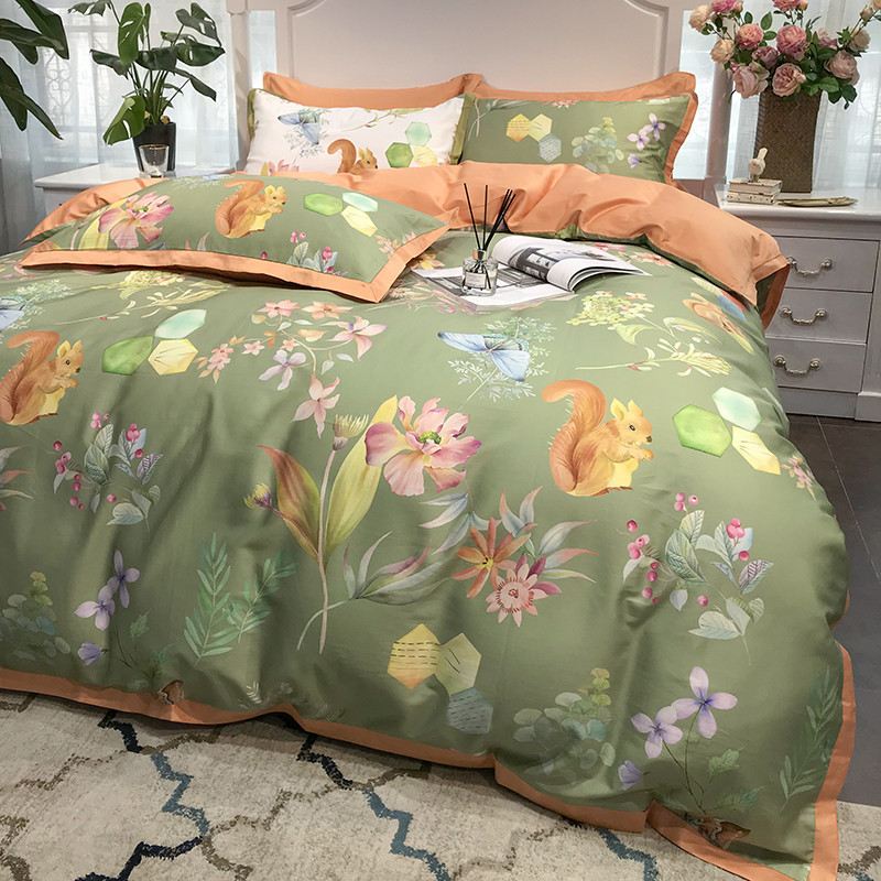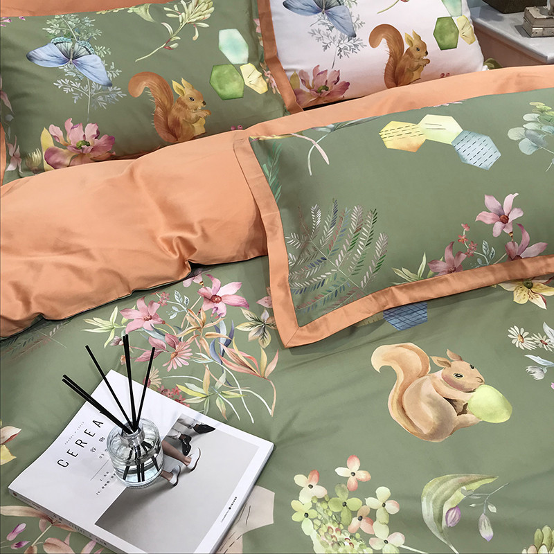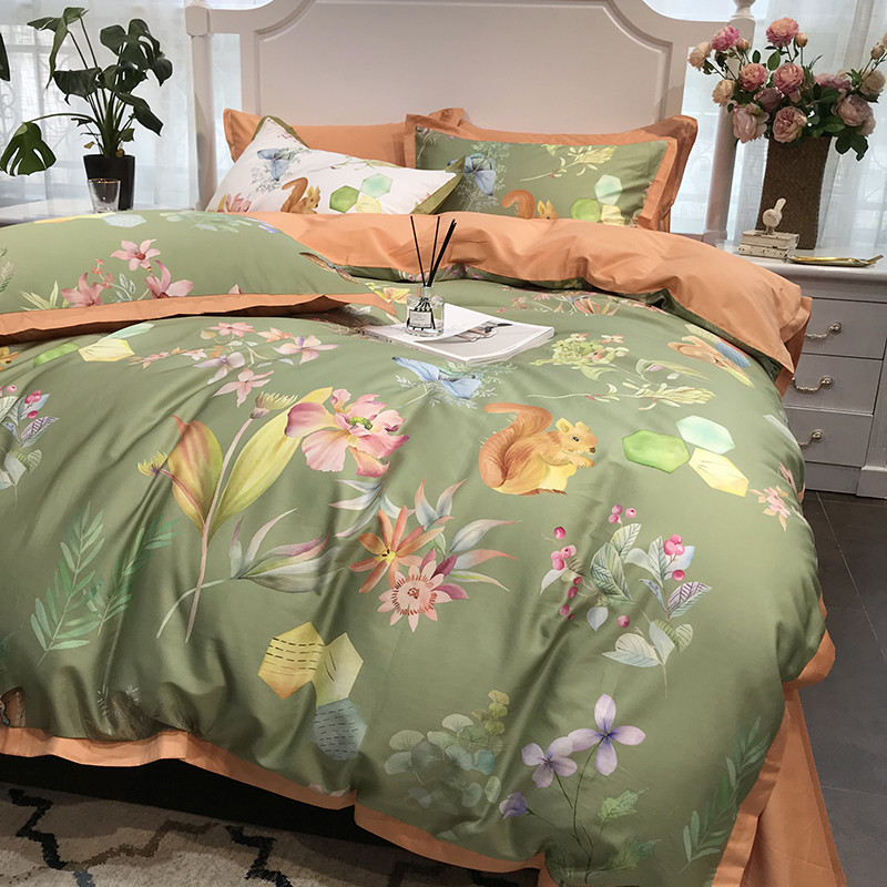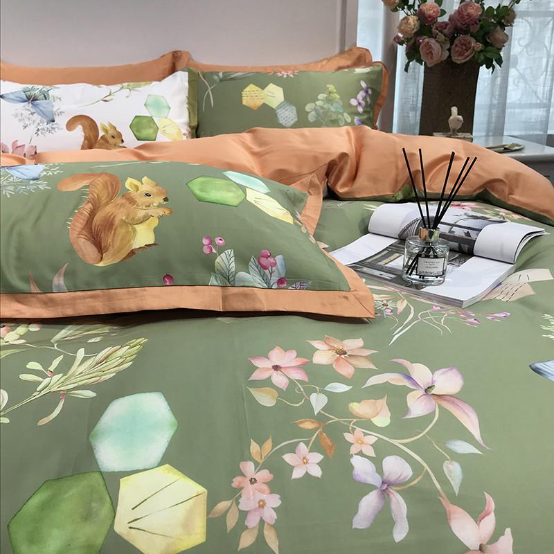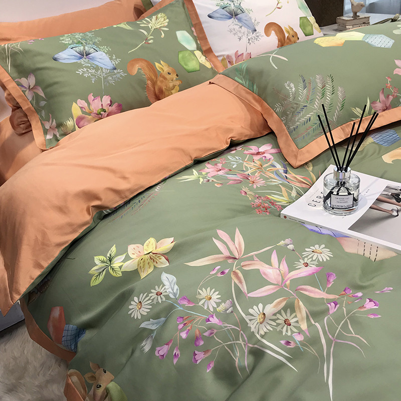 商品名称:太古汇 60支贡缎长绒棉数码印花小边款四件套 伊微莎-绿
