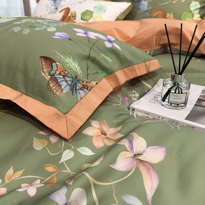 太古汇 60支贡缎长绒棉数码印花小边款四件套 伊微莎-绿