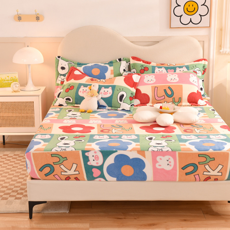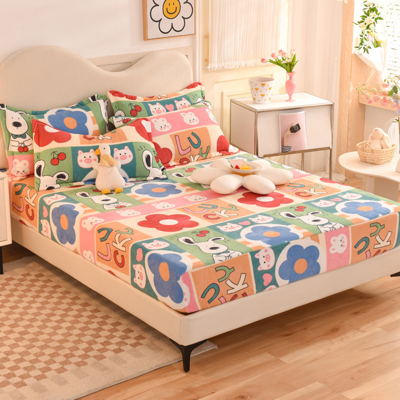 商品名称:甜之梦2025新款印花牛奶绒单品床笠可定制任何尺寸(可接异型缺角)萌宠跳跳