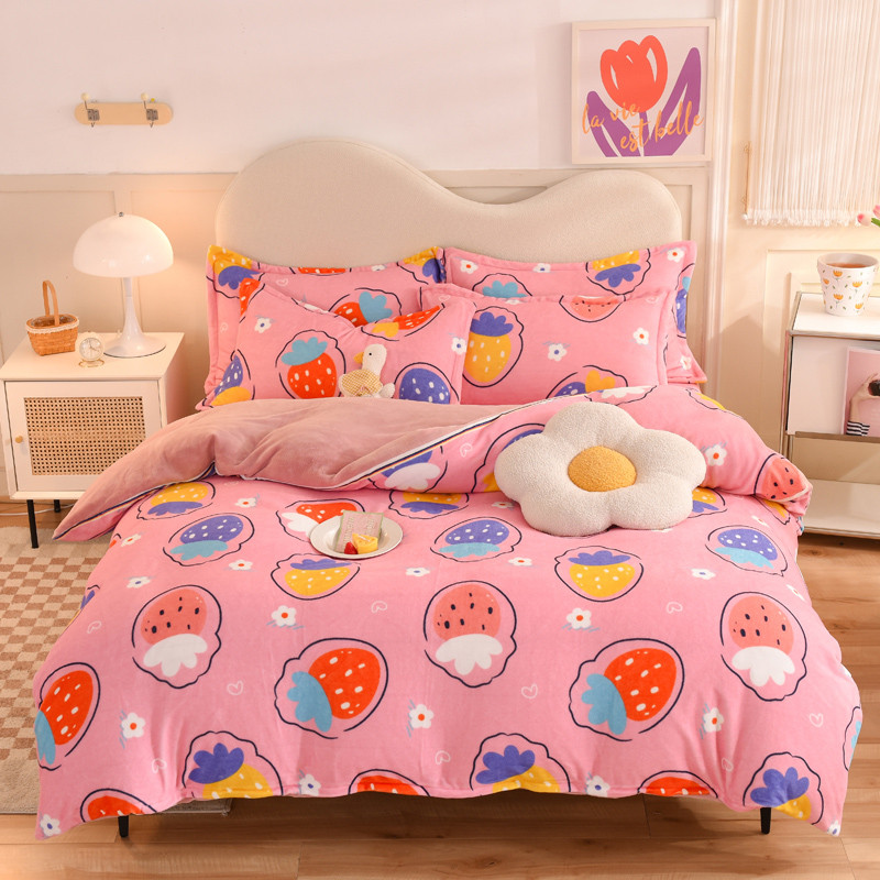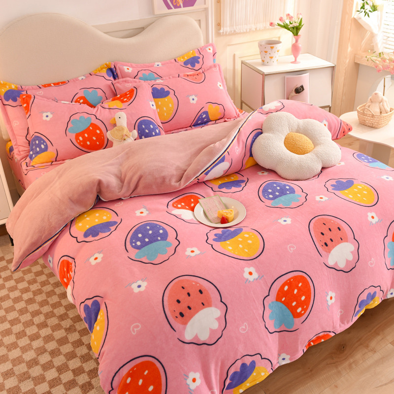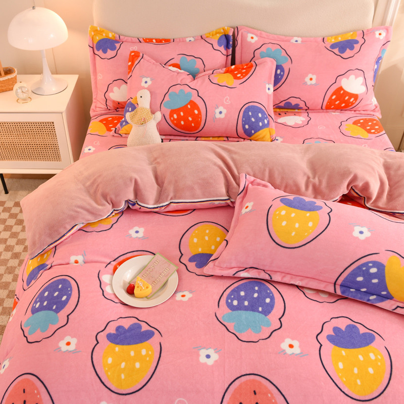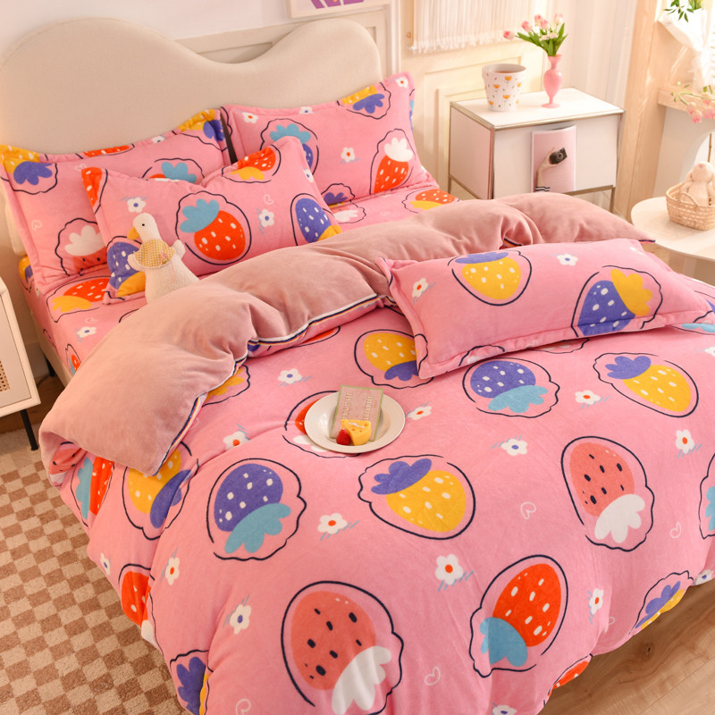 当前位置: 91家纺网 > 商品网购 > 床品套件 > 四件套 > 牛奶绒四件套 > 甜之梦家纺 2025新款印花牛奶绒单品四件套 粉红草莓