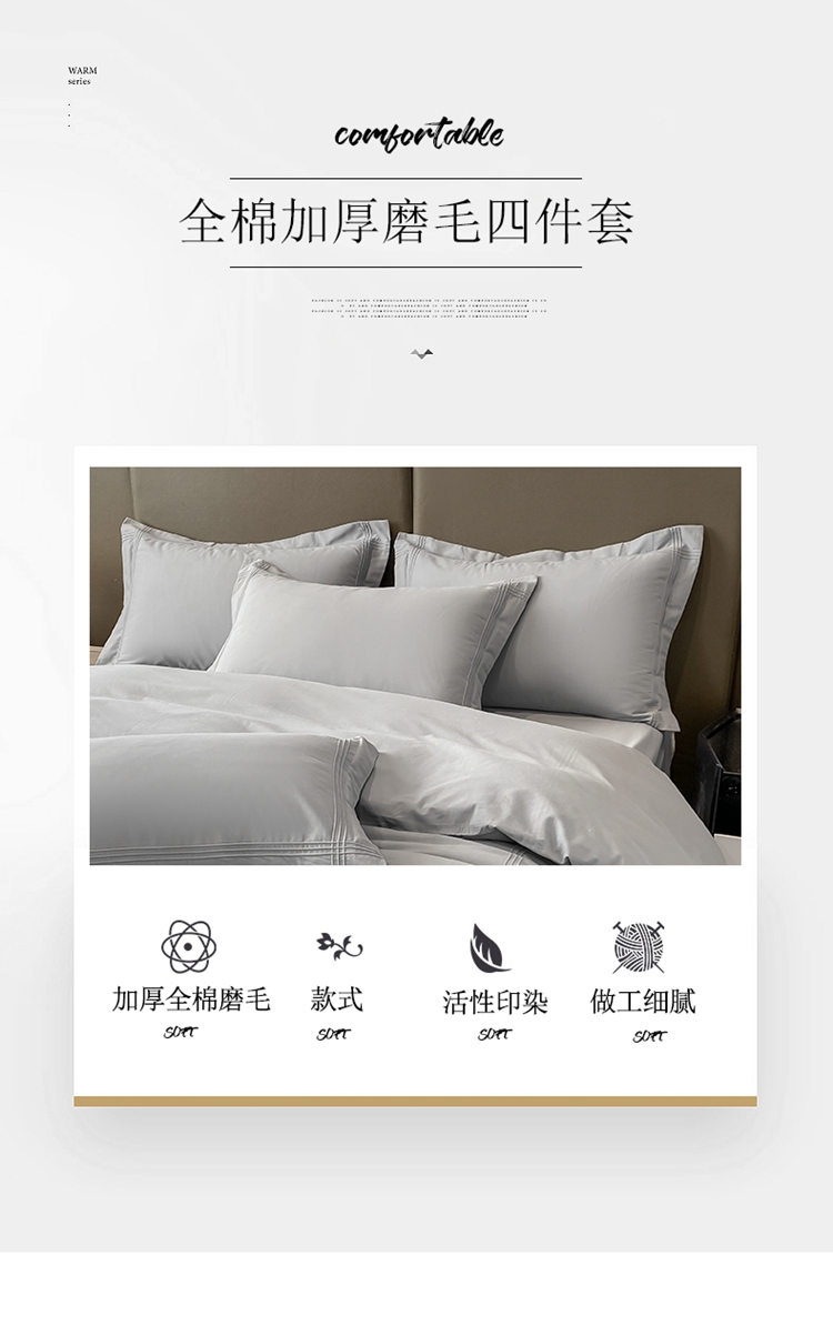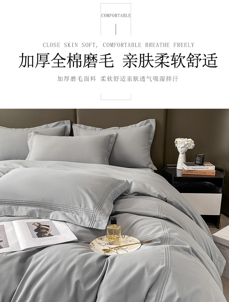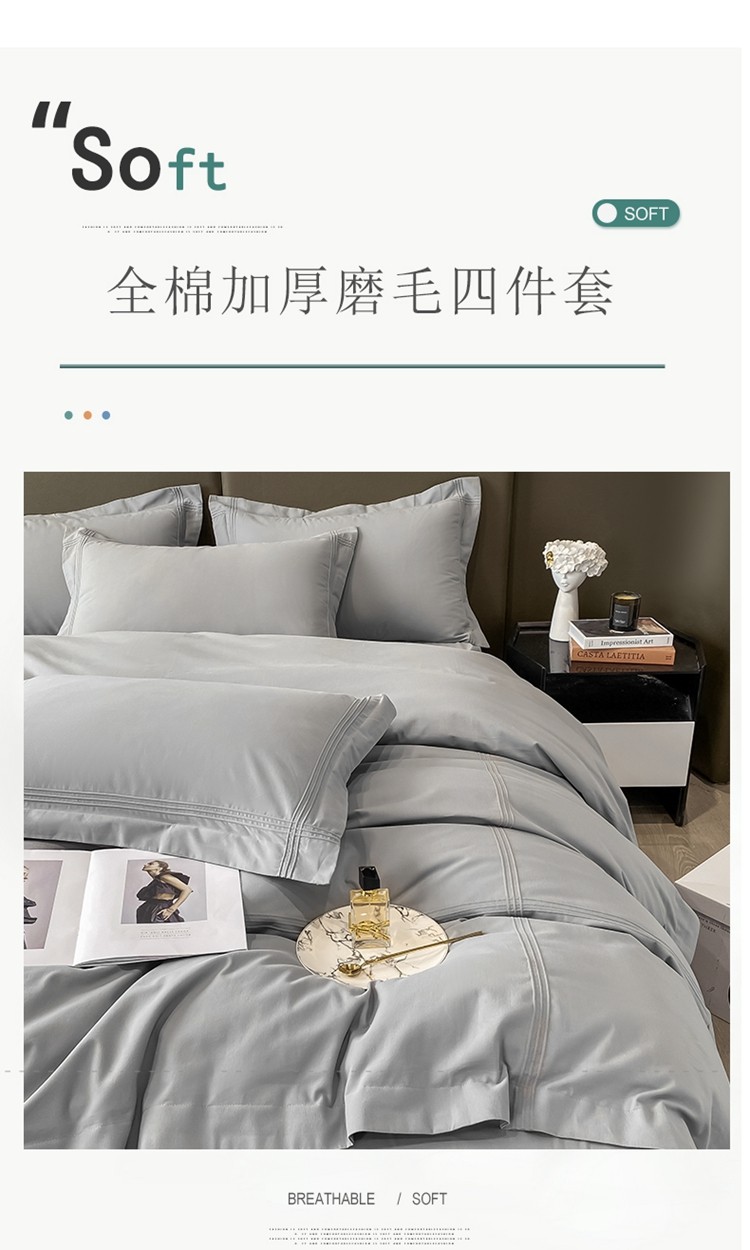 商品名称:安妮2022新款轻奢赫本加厚全棉磨毛四件套 赫本轻奢灰