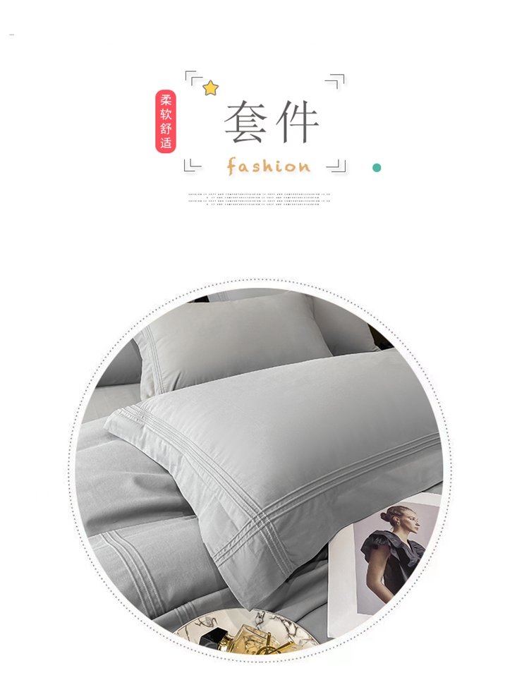 (总)安妮家居 2025新款100S长绒棉贡缎纯色四件套,水漾蓝,胧月灰,奶白色,蔷薇粉,柔缦紫,砂砾咖