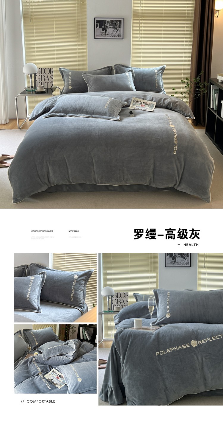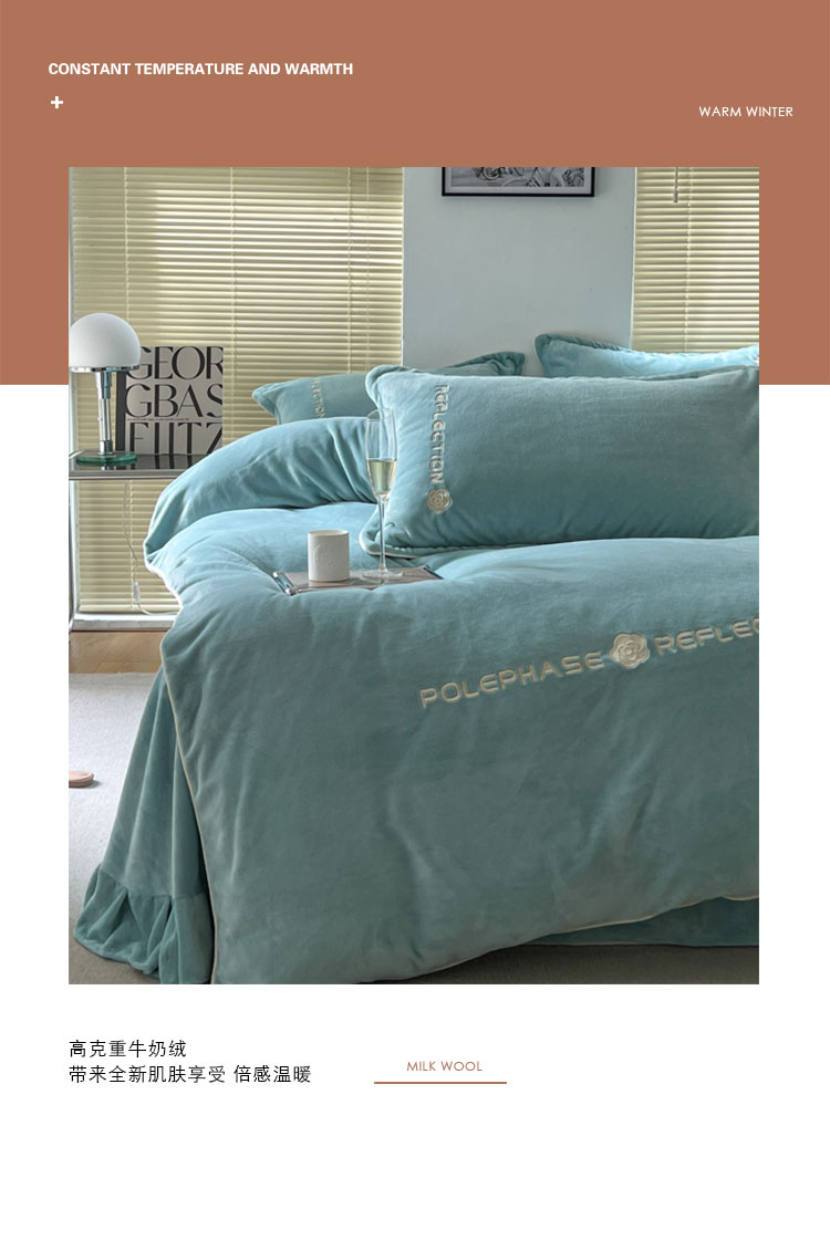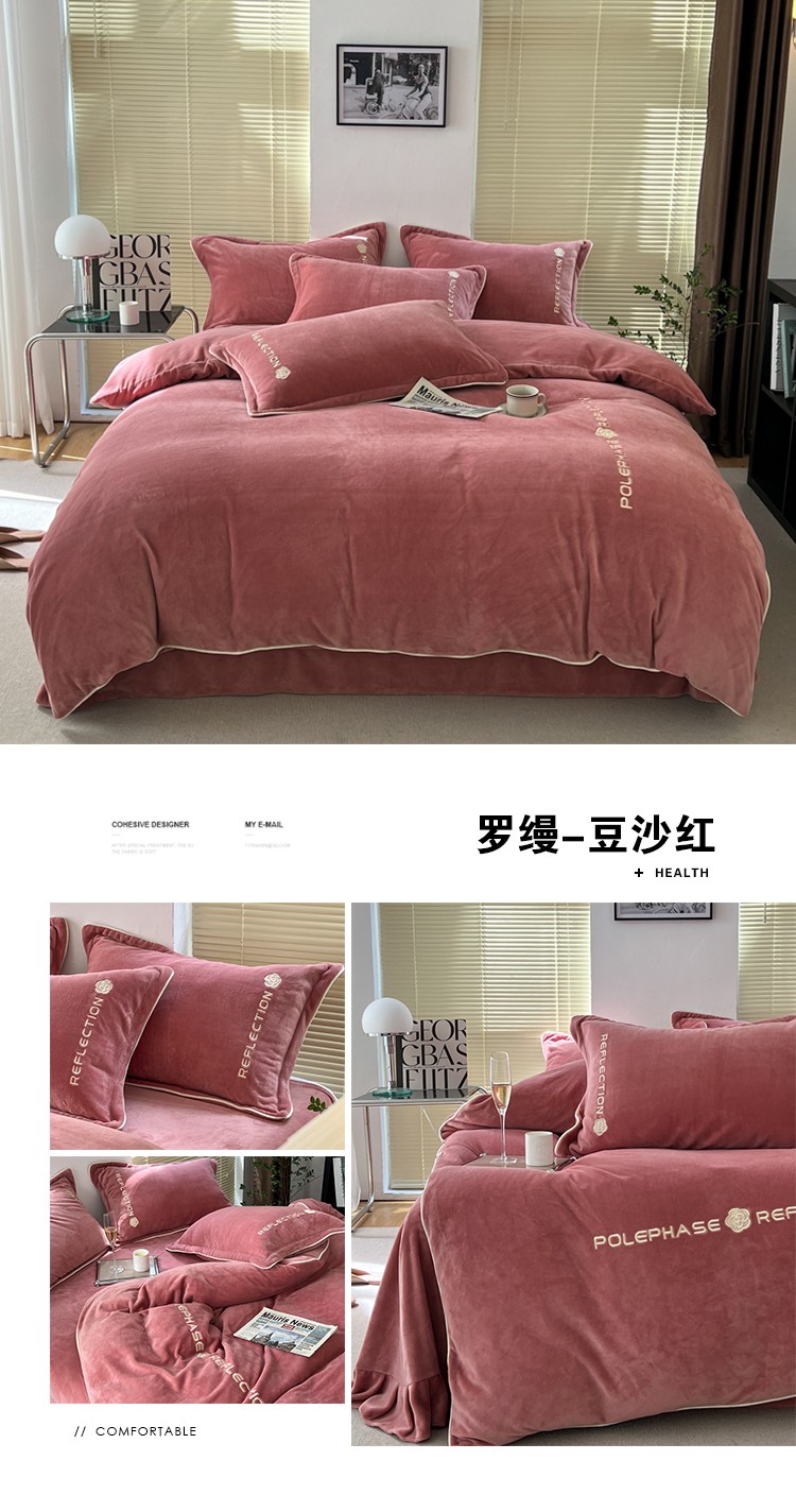 (总)安妮 2022新款高克重牛奶绒刺绣嵌绳四件套-罗缦