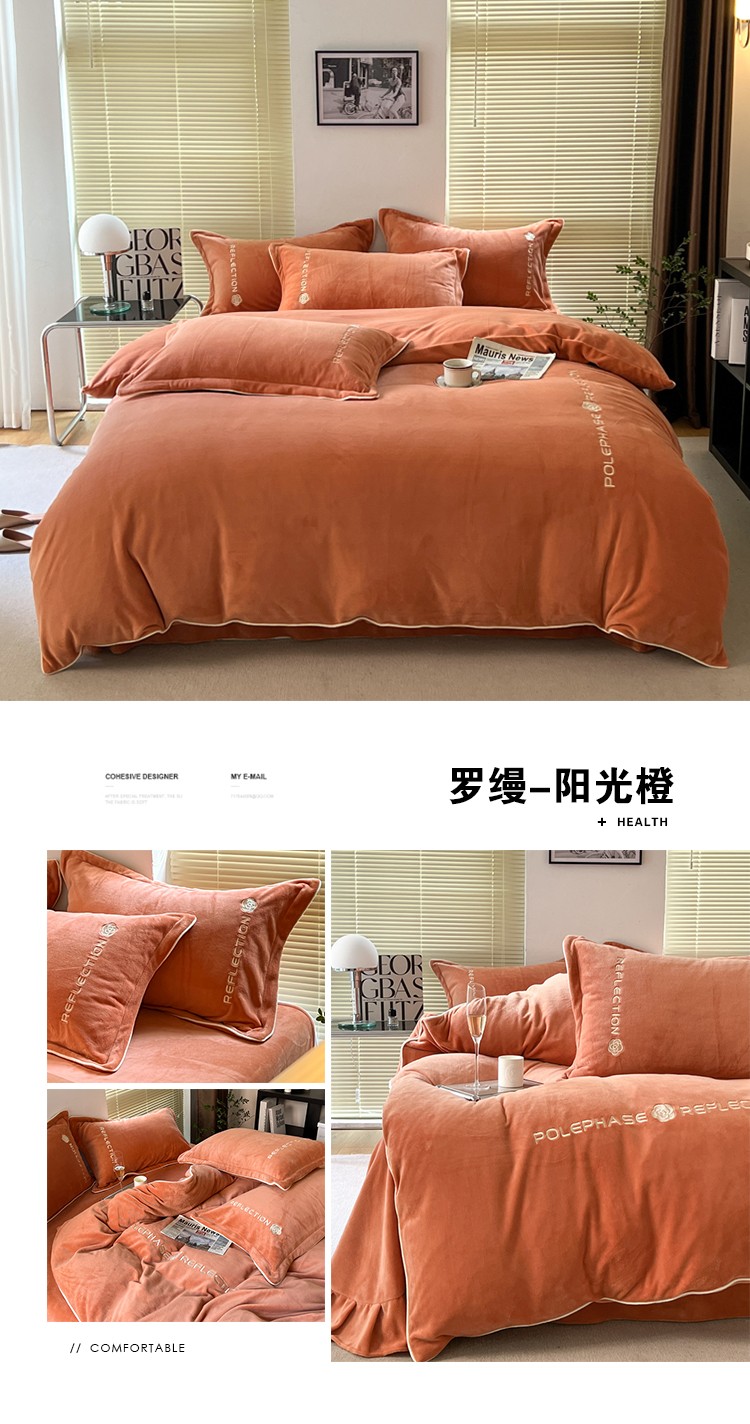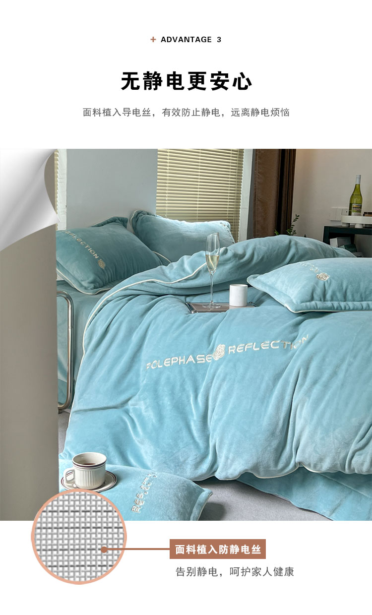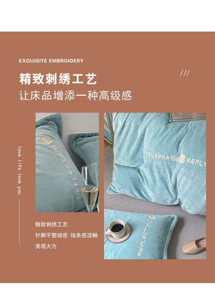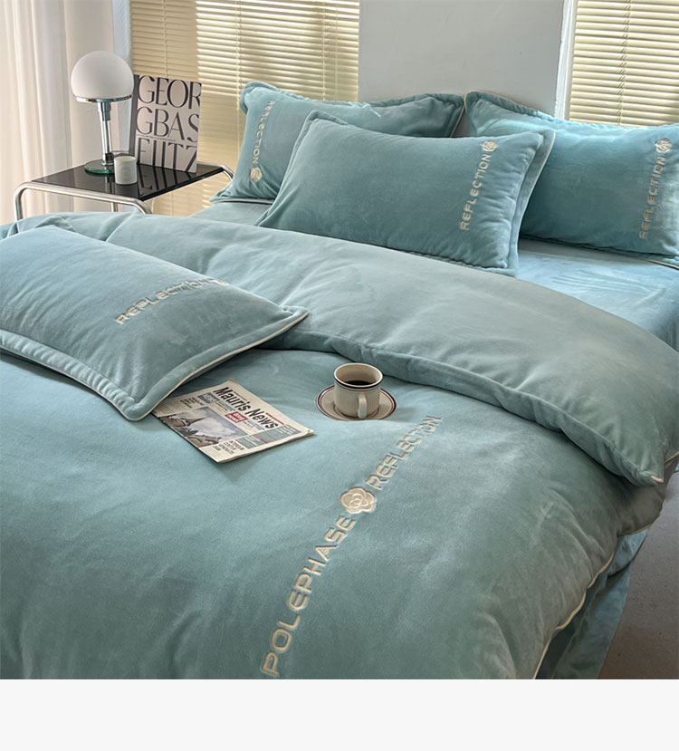 (总)安妮 2022新款高克重牛奶绒刺绣嵌绳四件套-罗缦