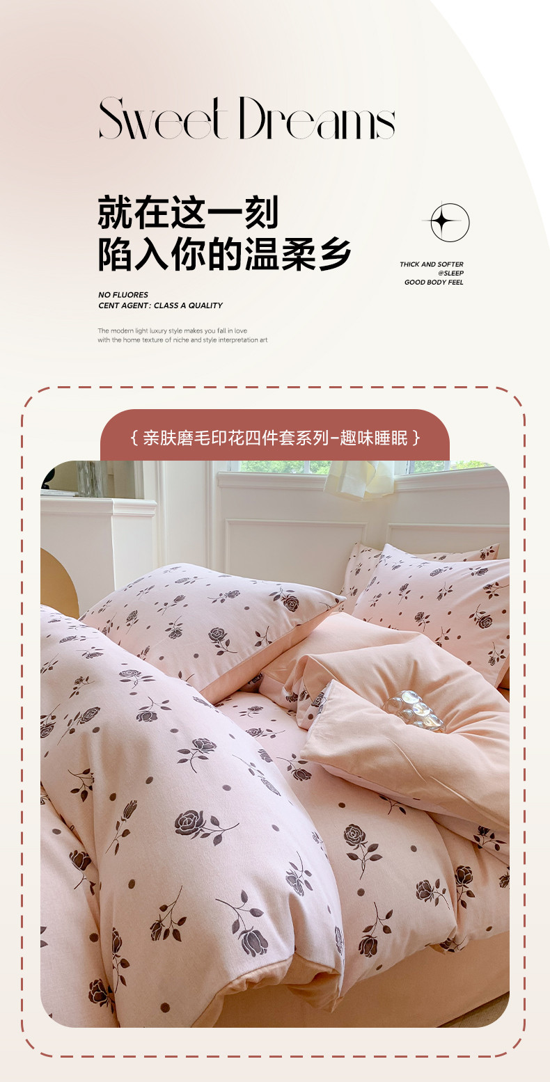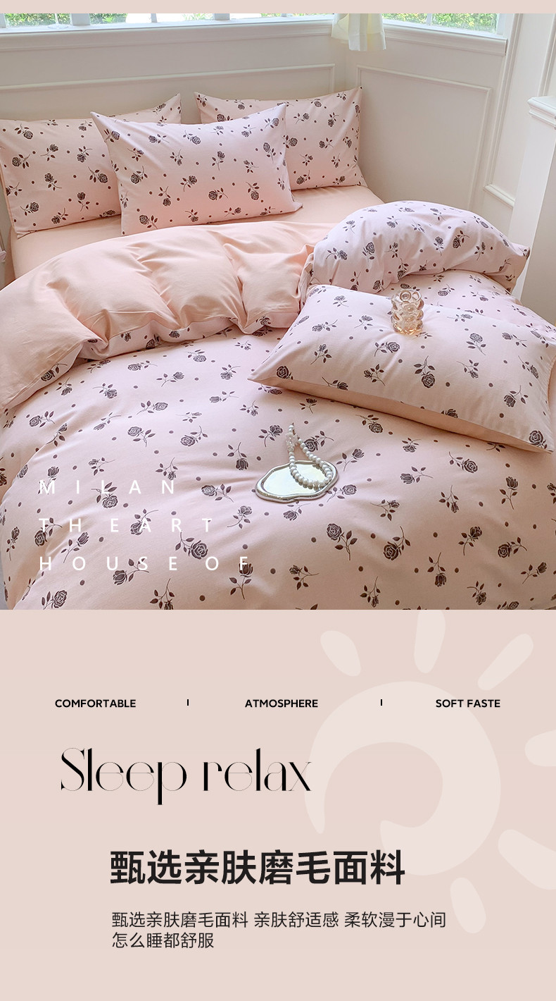 澳萝拉 2023新款磨毛四件套-花卉系列 玫朵
