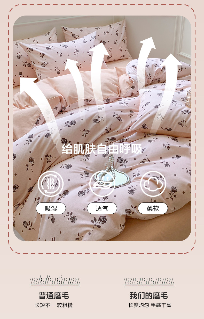 商品名称:澳萝拉 2023新款磨毛四件套-花卉系列 玫朵