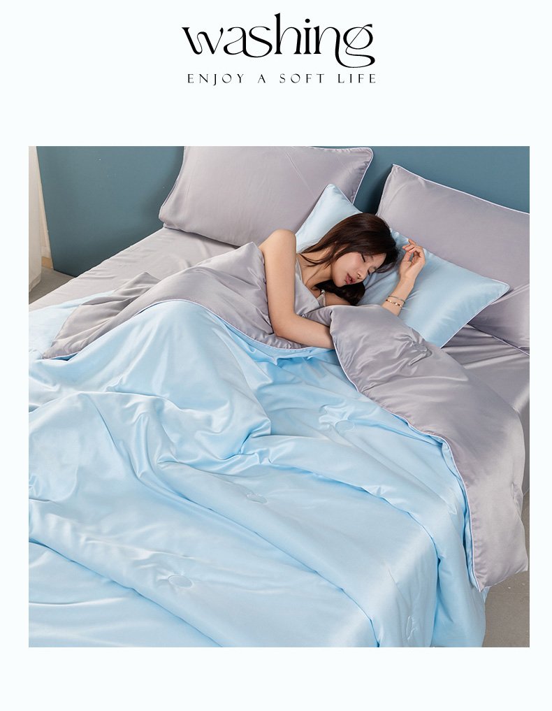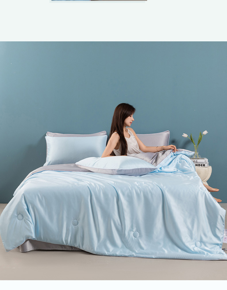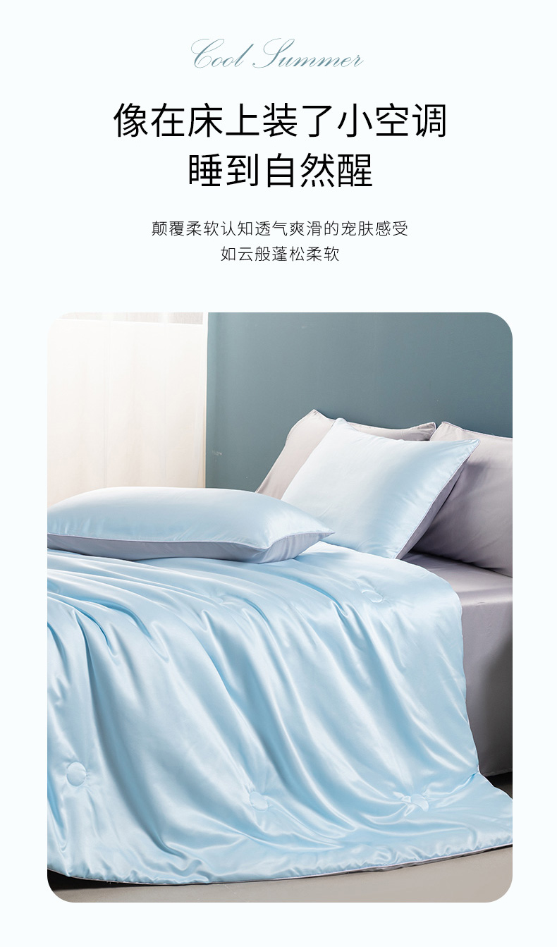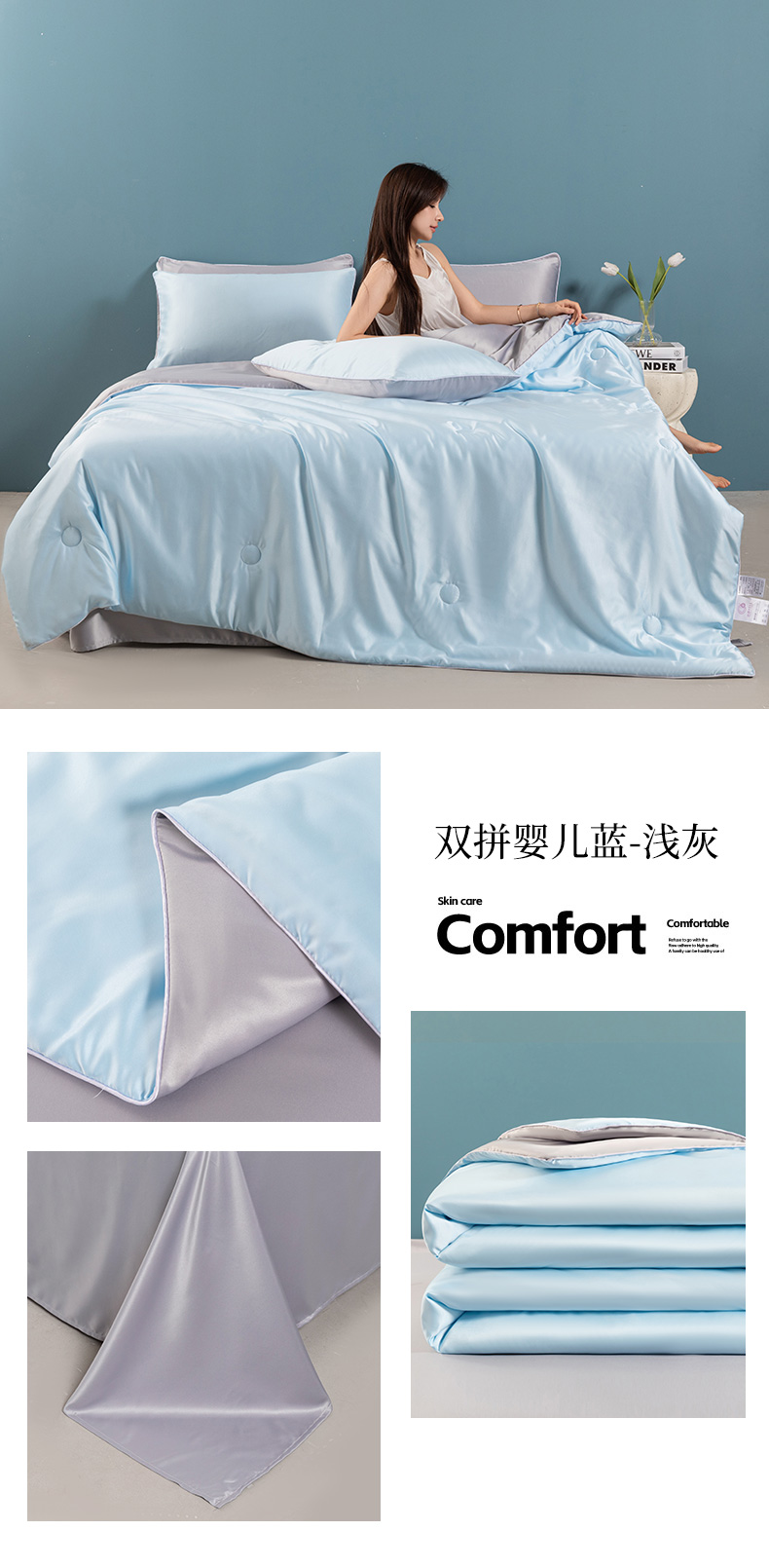 • 91家纺网 家纺一手货源 找家纺 梦镜家纺 2025新款凉感丝双拼夏凉被夏被空调被夏被四件套 双拼婴儿蓝-浅灰
