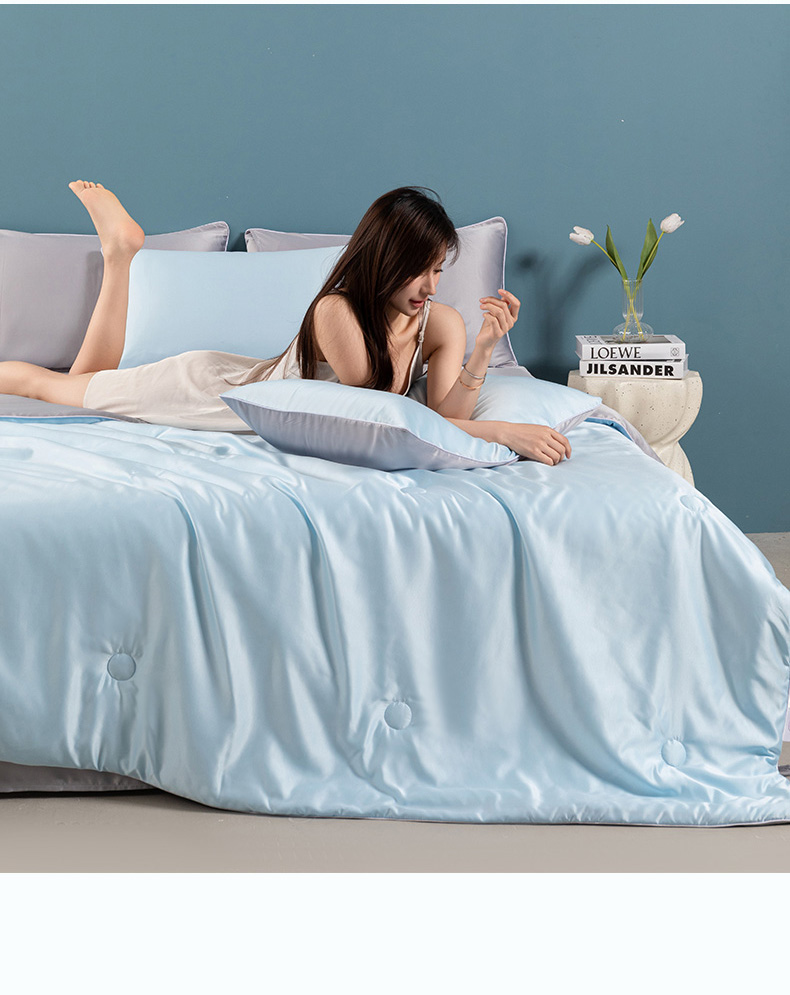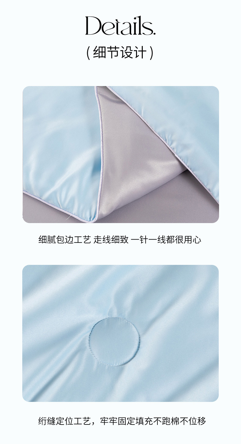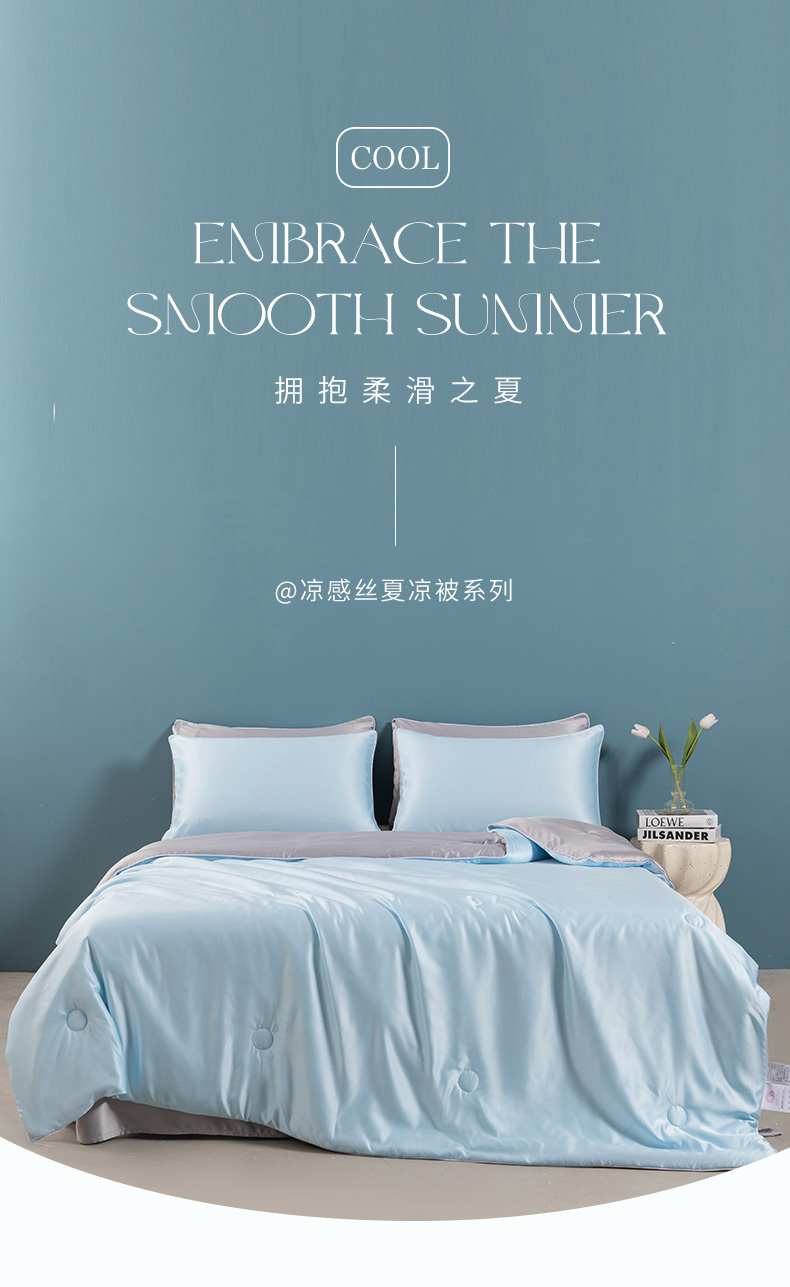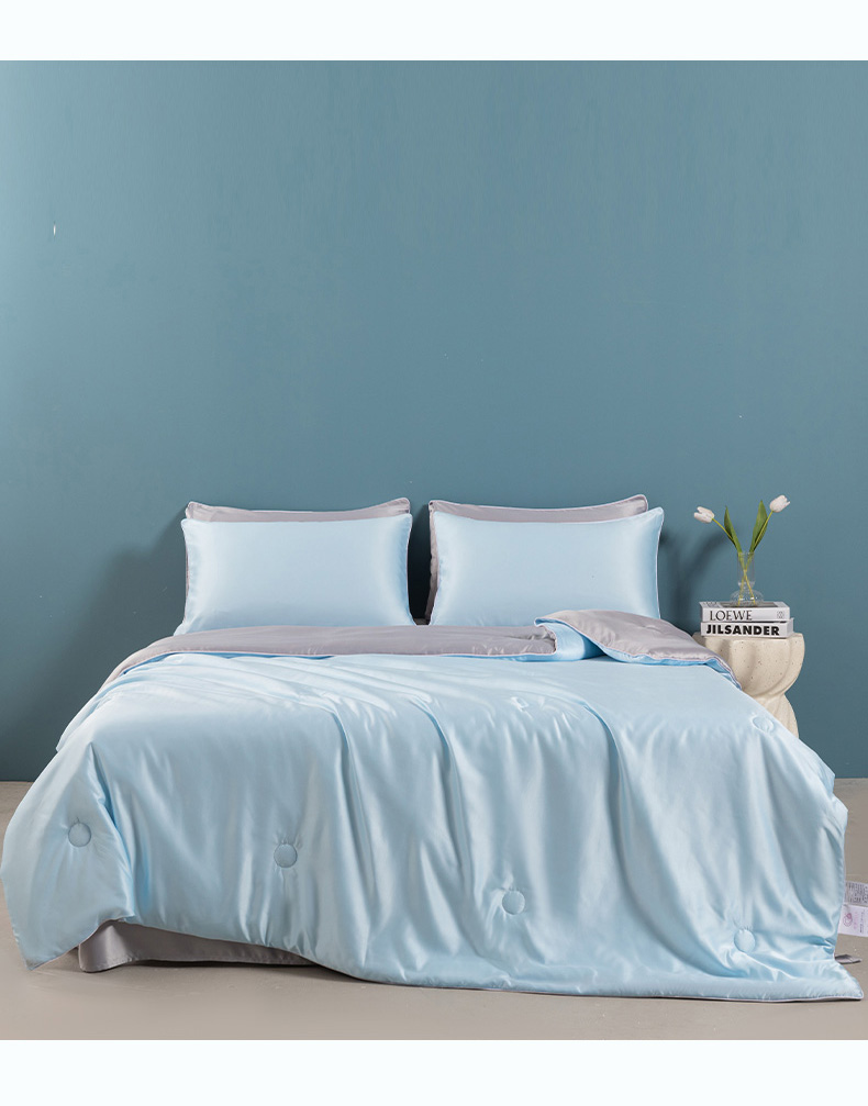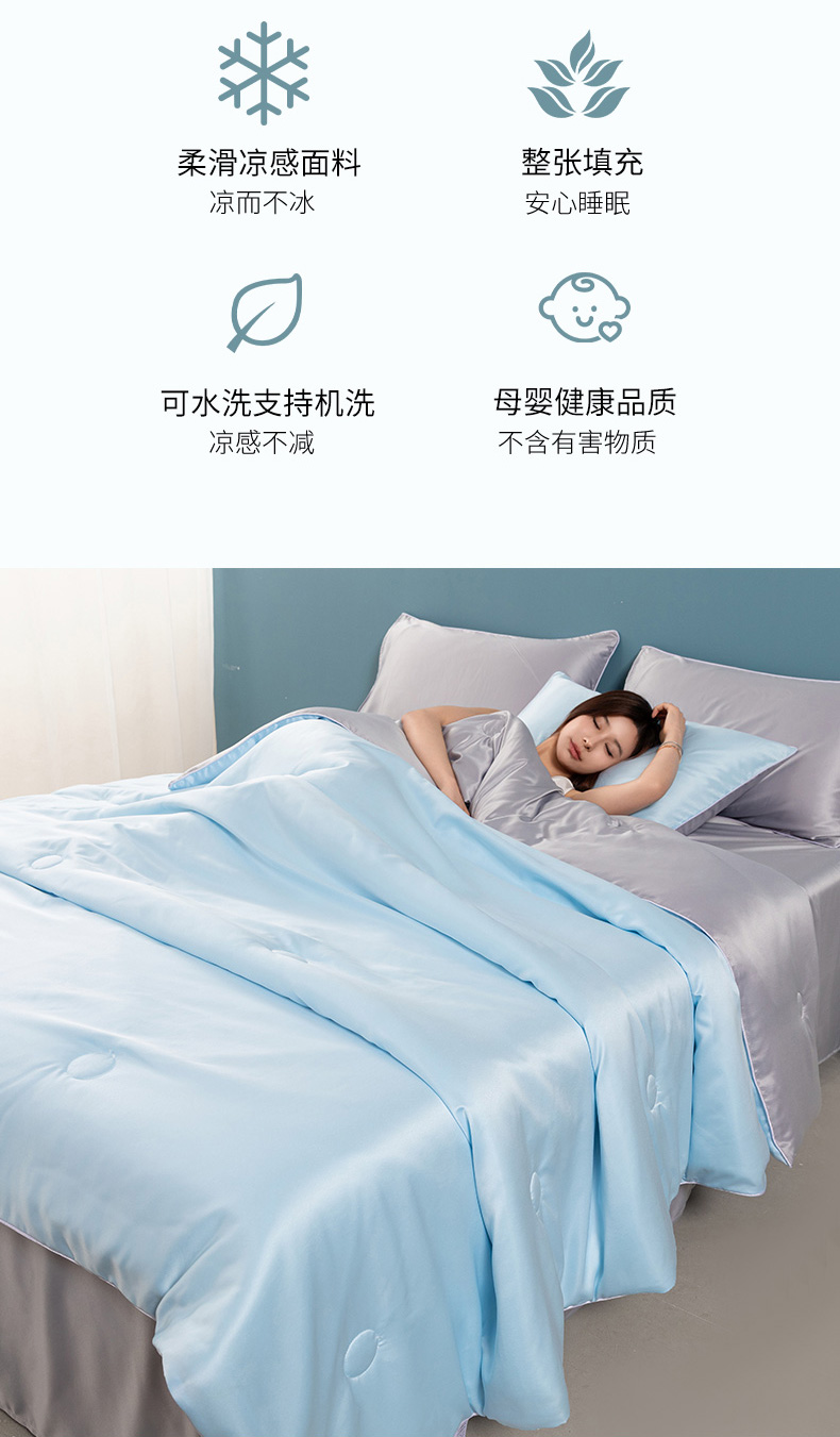 • 91家纺网 家纺一手货源 找家纺 梦镜家纺 2025新款凉感丝双拼夏凉被夏被空调被夏被四件套 双拼婴儿蓝-浅灰
