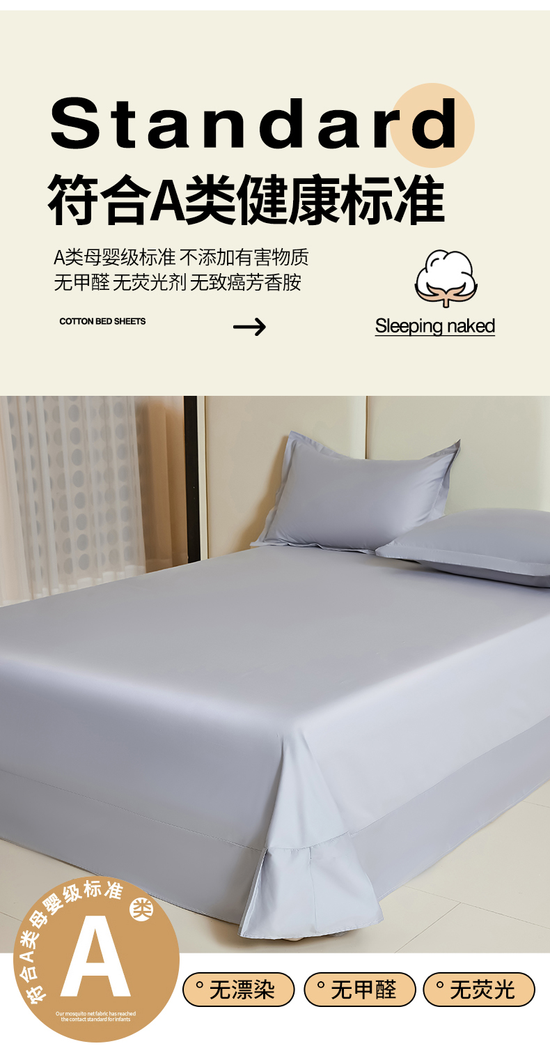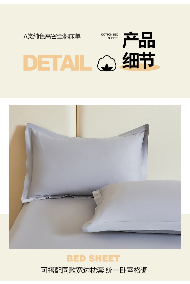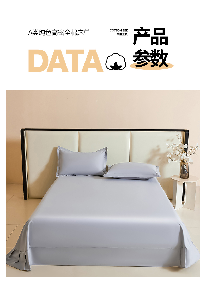 商品名称:名优家纺 2024新款纯色13374高密全棉单床单 静谧灰