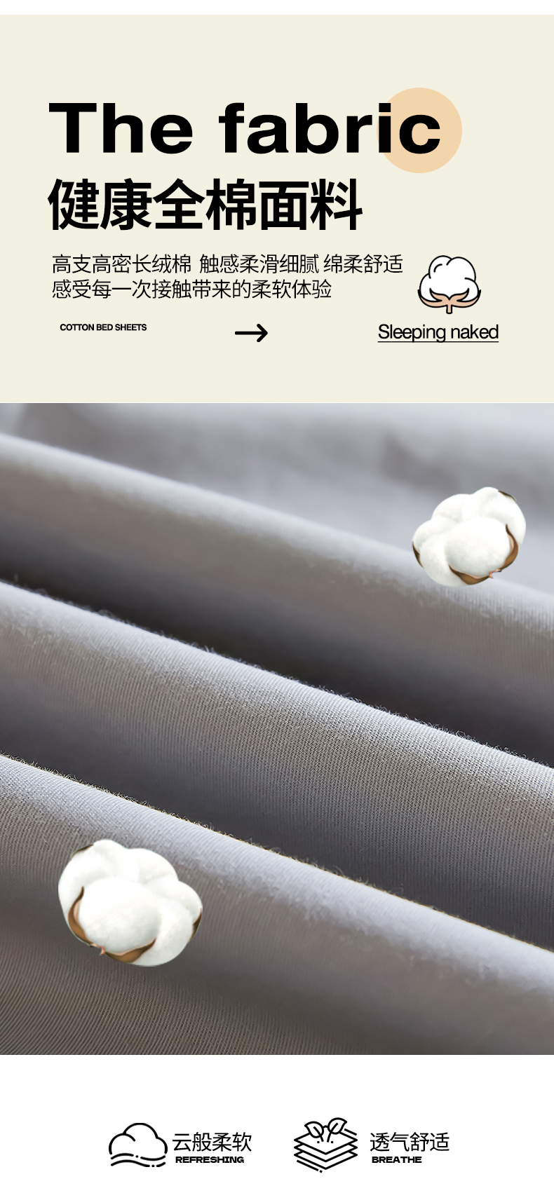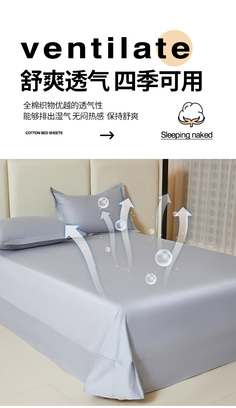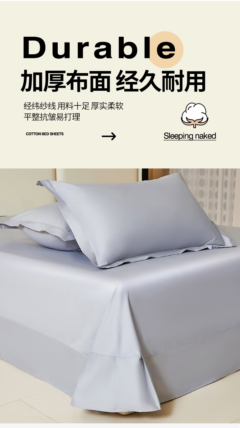 商品名称:名优家纺 2024新款纯色13374高密全棉单床单 静谧灰