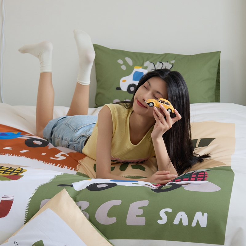 (总)原研家居 2023新款40支全棉13070印花系列四件套(第2批),花间小趣,宁静致远,大头鸭,波点煤球