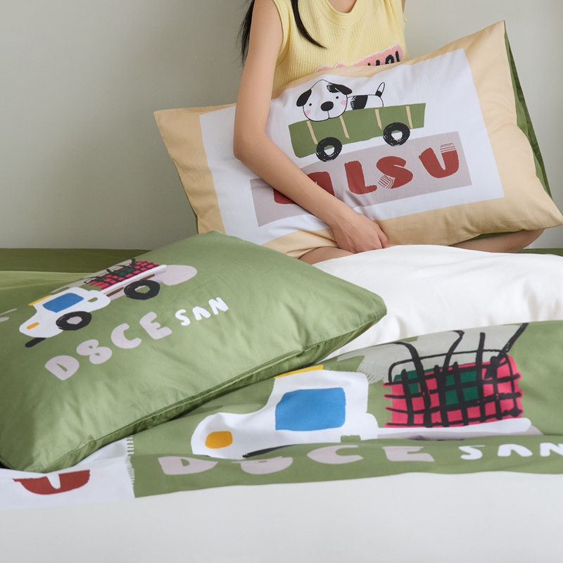 (总)原研家居 2023新款40支全棉13070印花四件套-野兽派系列,樱桃猫,公主猫,波浪猫,黑乖,蓝条狗,小花狗,竹叶熊,水果茶,波点苹果,生椰冰淇凌,青春