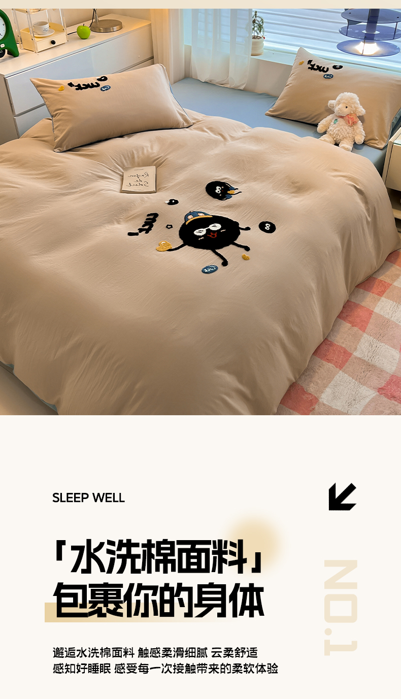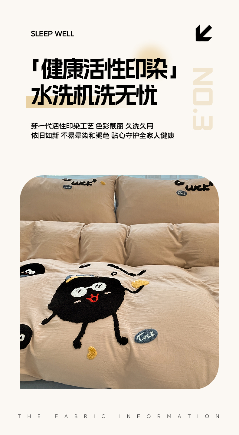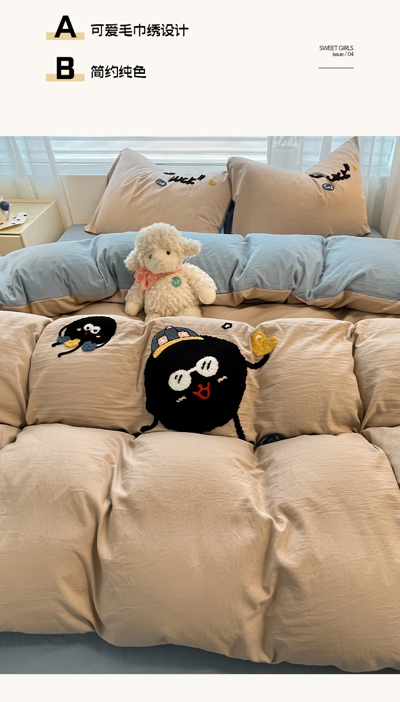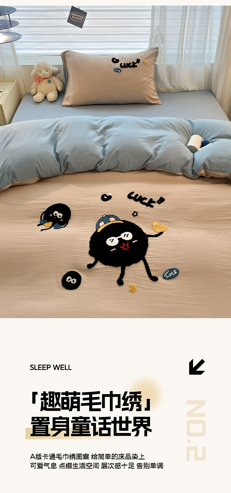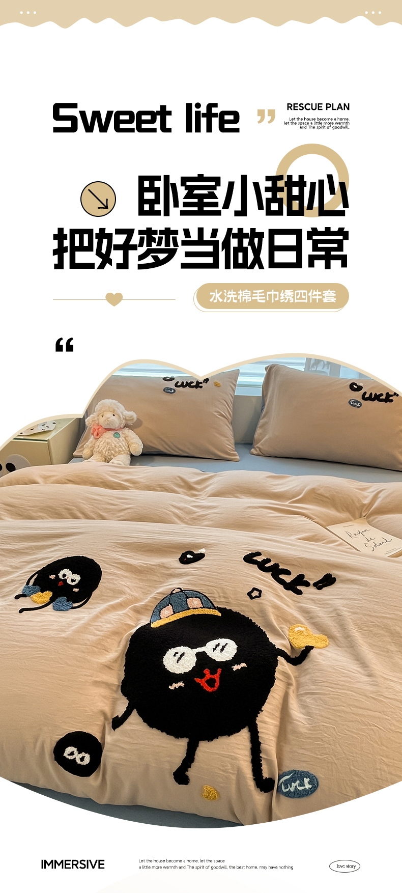 当前位置: 91家纺网 > 商品网购 > 床品套件 > 四件套 > 水洗棉四件套 > 优承佳生活馆 2024新款水洗m毛巾绣四件套 黑煤球