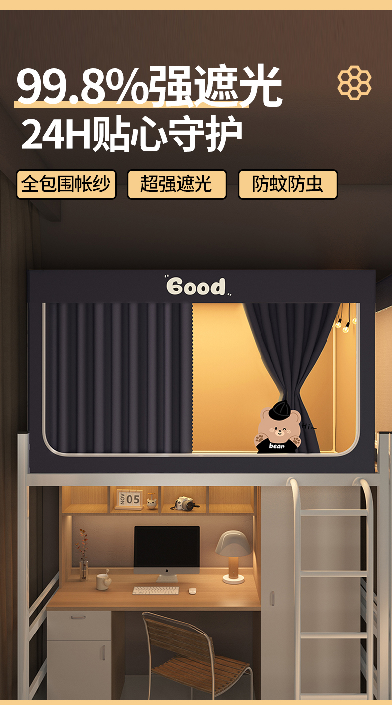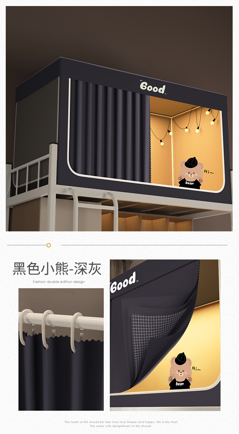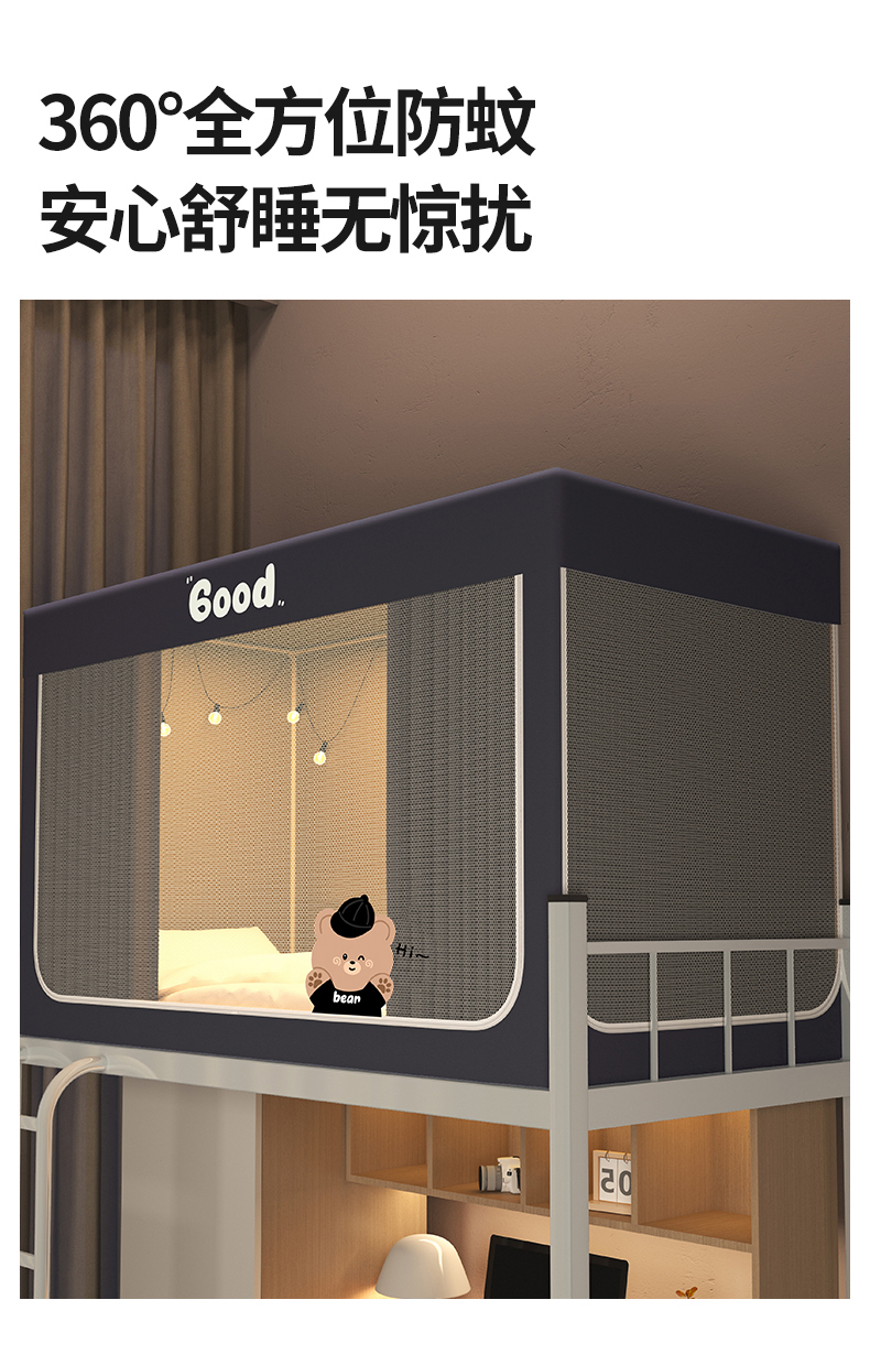 当前位置: 91家纺网 > 商品网购 > 床上用品 > 蚊帐 > 学生蚊帐 > 佳梦家纺 2024新款学生卡通烫画强遮光蚊帐 黑色小熊-深灰