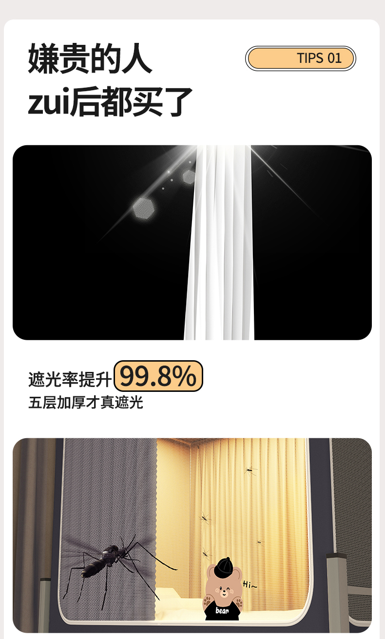 90*190*90cm(下铺单门) 帐纱+升级自连支架(无帘遮光) | ¥60.00 |