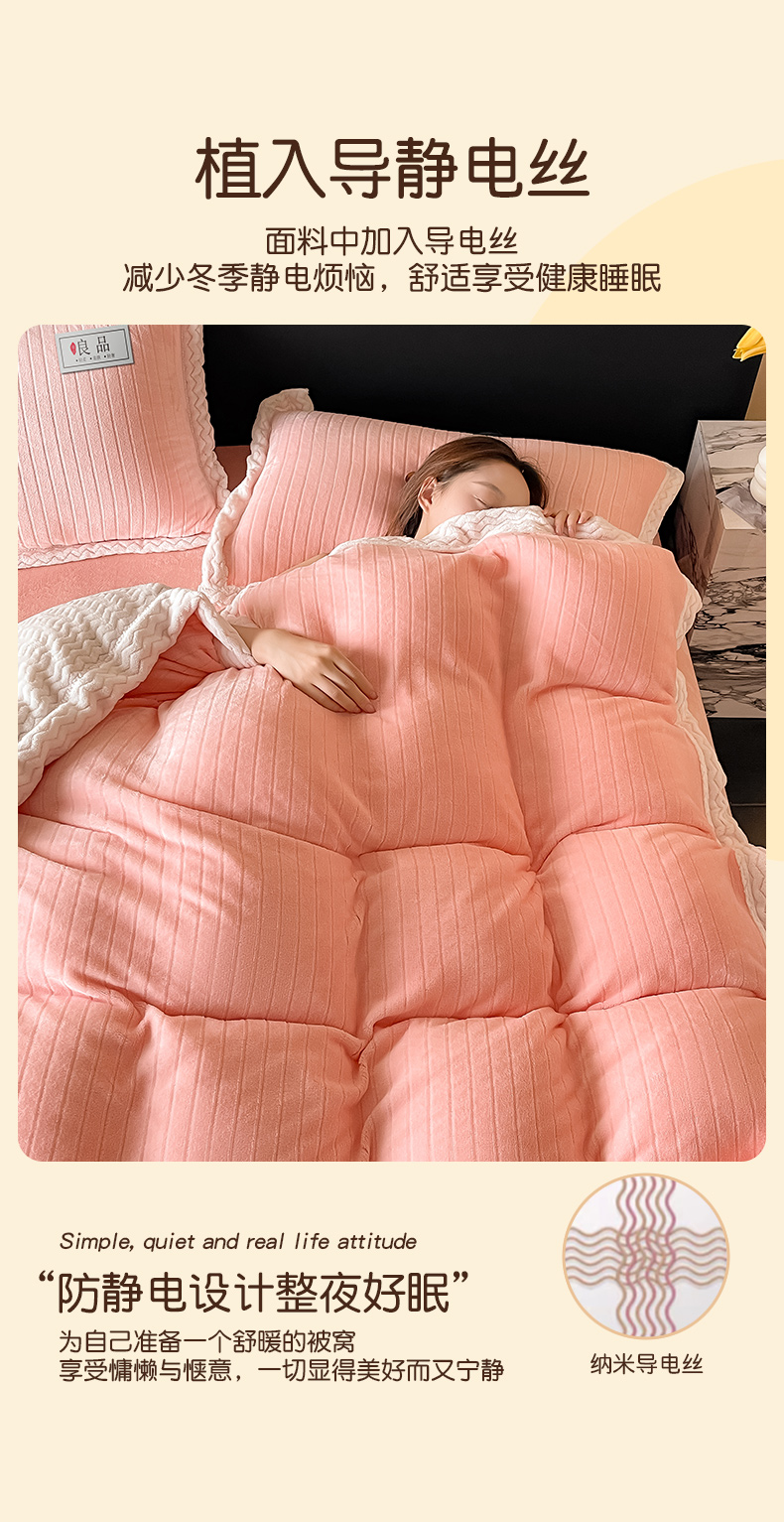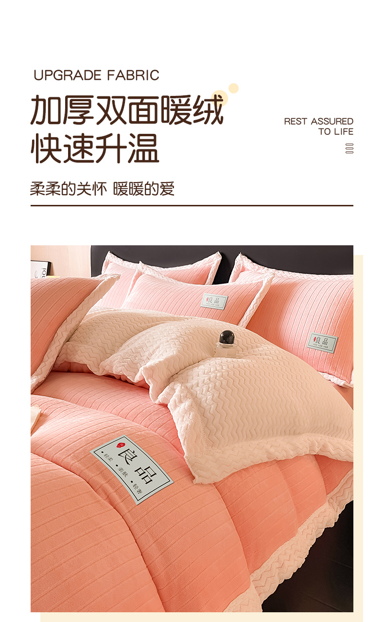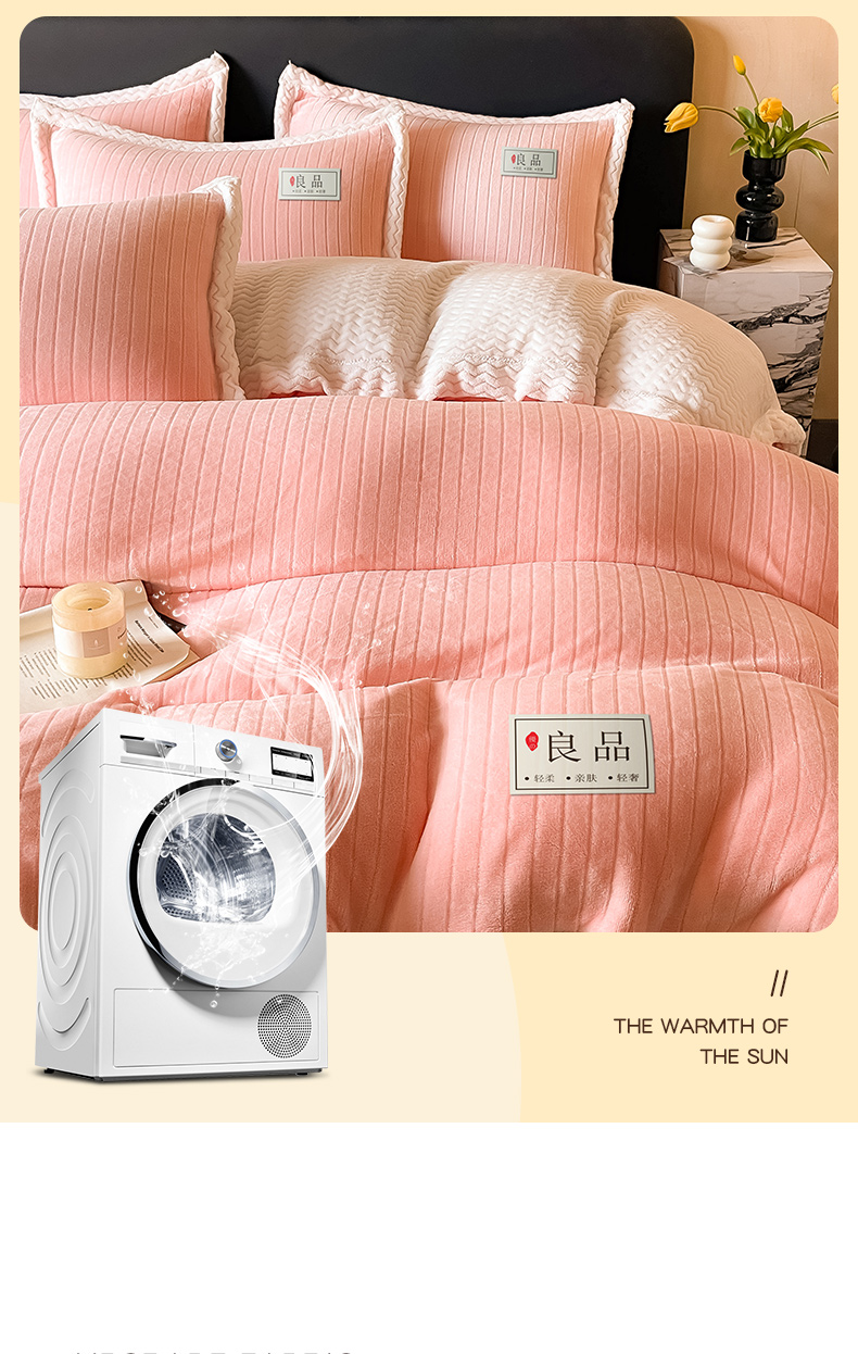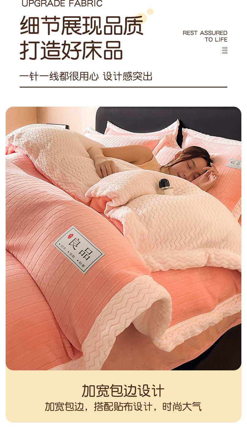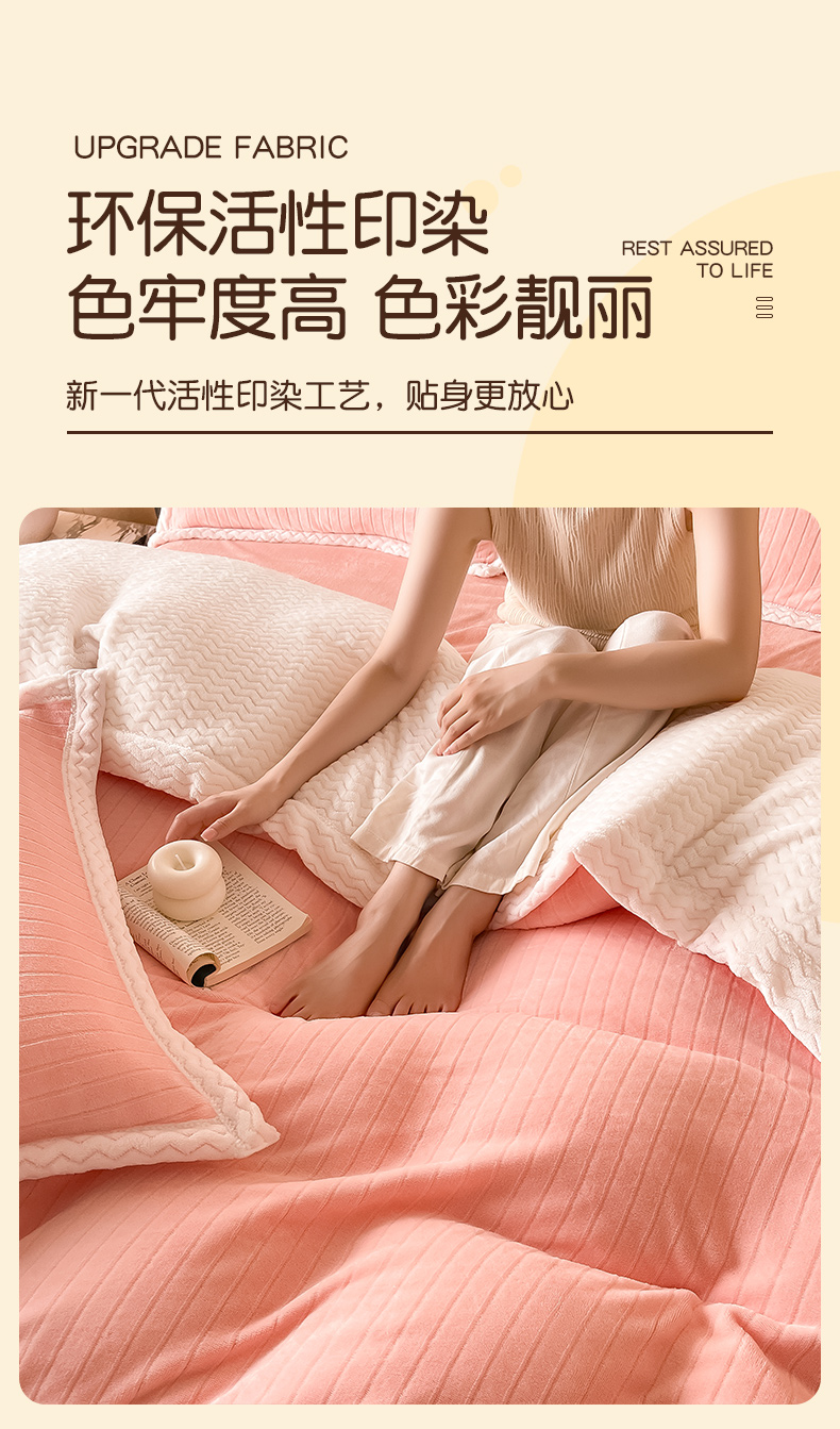 当前位置: 91家纺网 > 商品网购 > 床品套件 > 四件套 > 牛奶绒四件套 > 全季家居 2024新款A类纯色印花波浪大包边牛奶绒贝贝绒加厚保暖四件套 少女粉