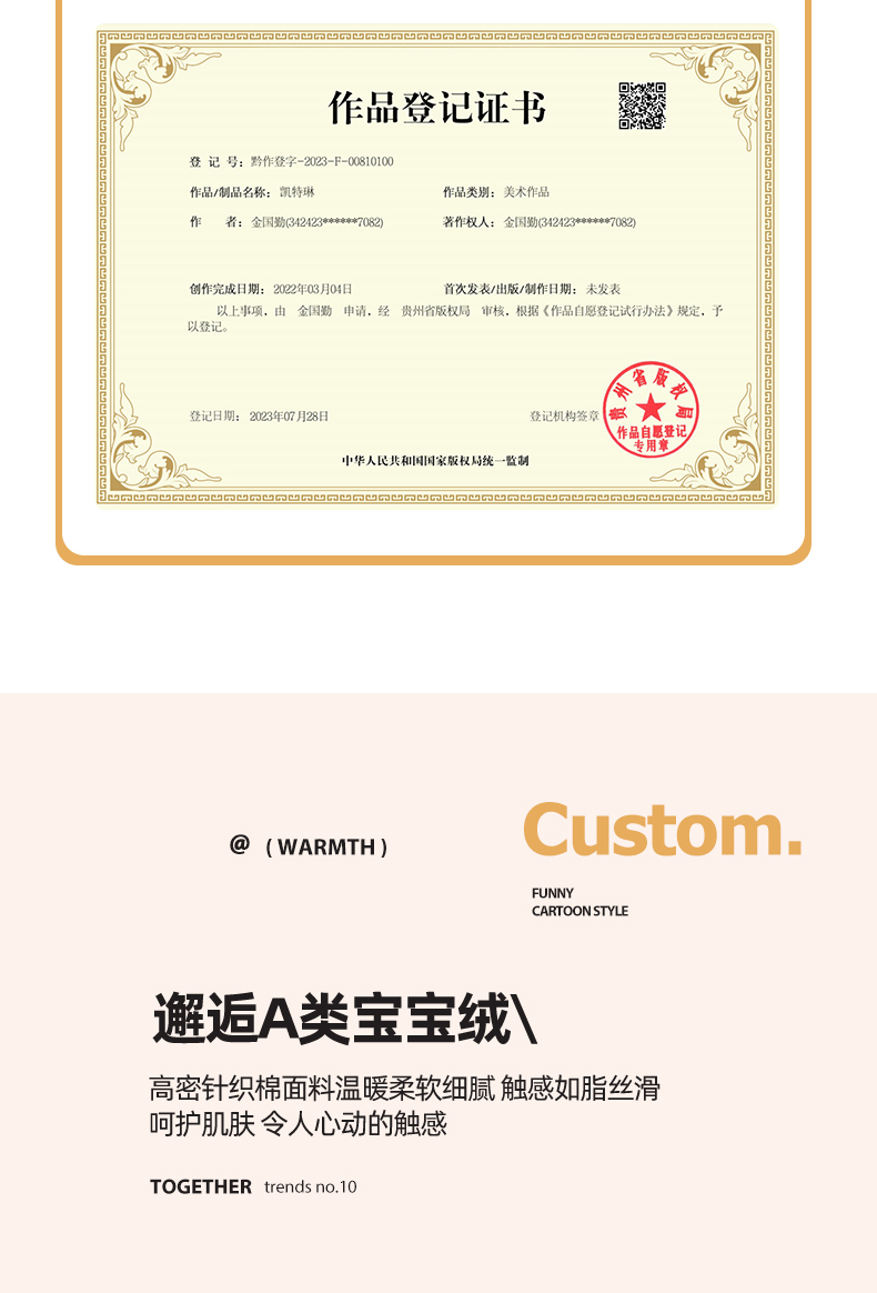 3、通州区市场监督局友情提醒,近期涉及到床上用品不褪色不掉毛不缩水的投诉和以世界知名品牌图案为面料的床品举报较多。请各商家自检自查,对照整改或进行下架处理。