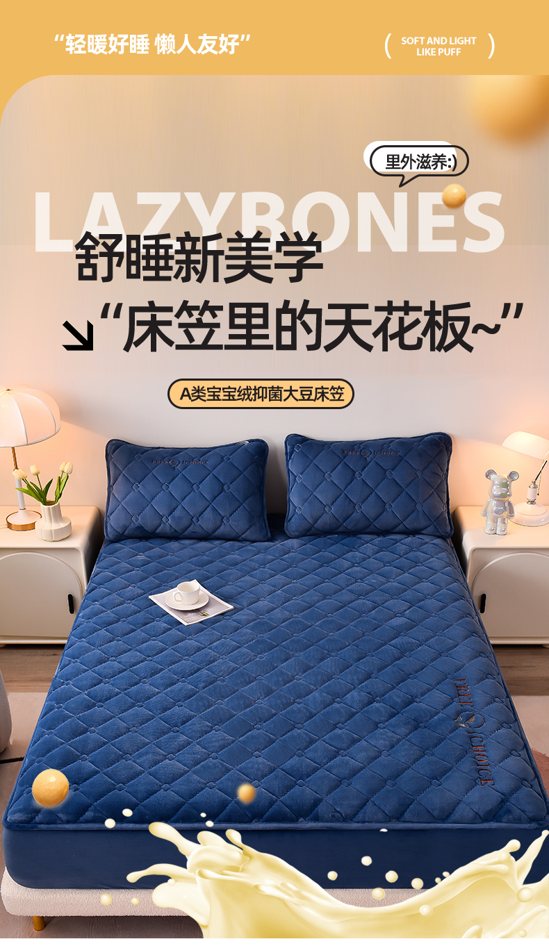 • 91家纺网 家纺一手货源 找家纺 好眠好梦家纺 2024新款A类宝宝绒床笠-凯特琳 宾利蓝