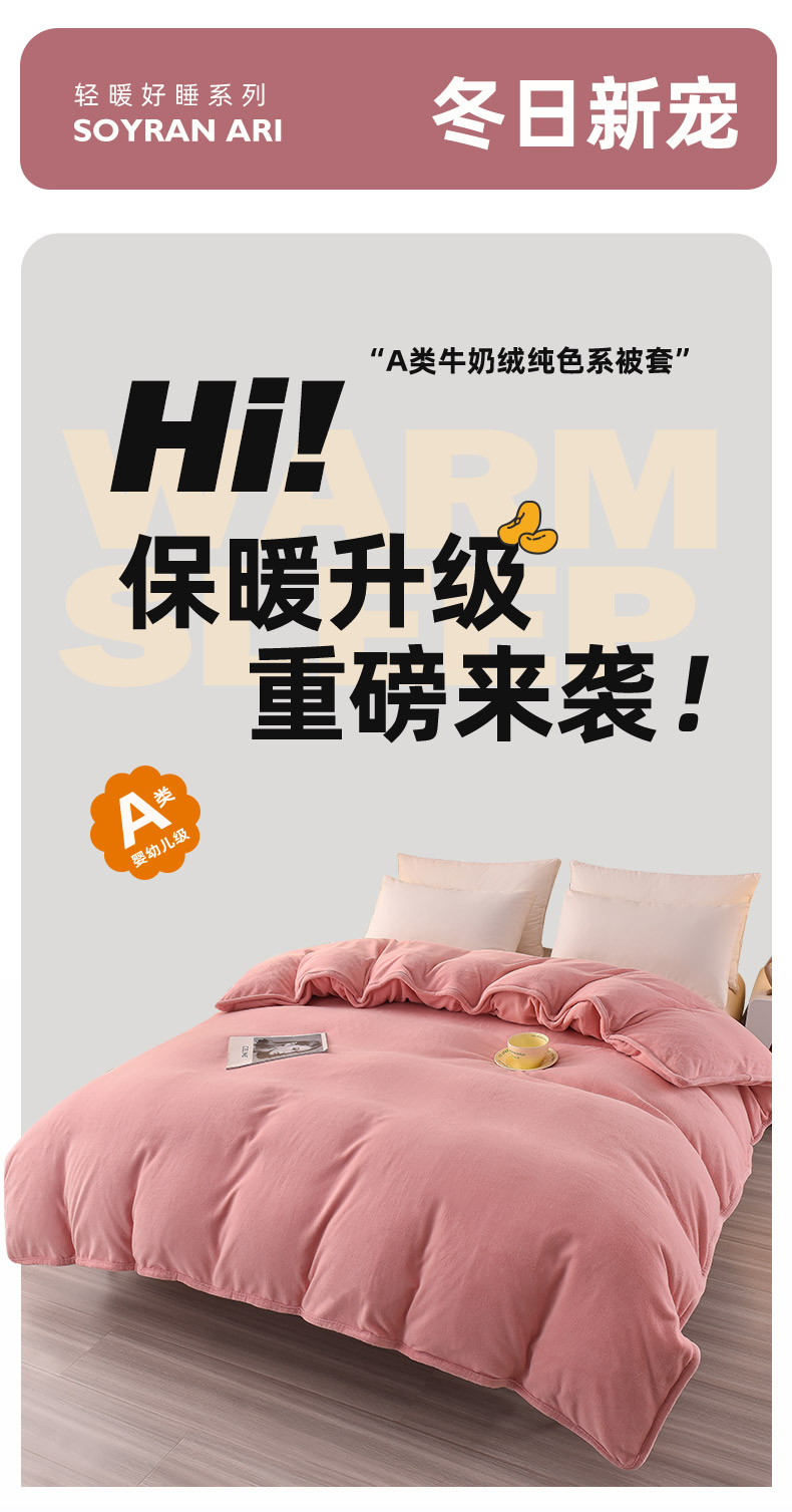 商品名称:好眠好梦家纺 2024新款牛奶绒纯色单被套 豆沙粉