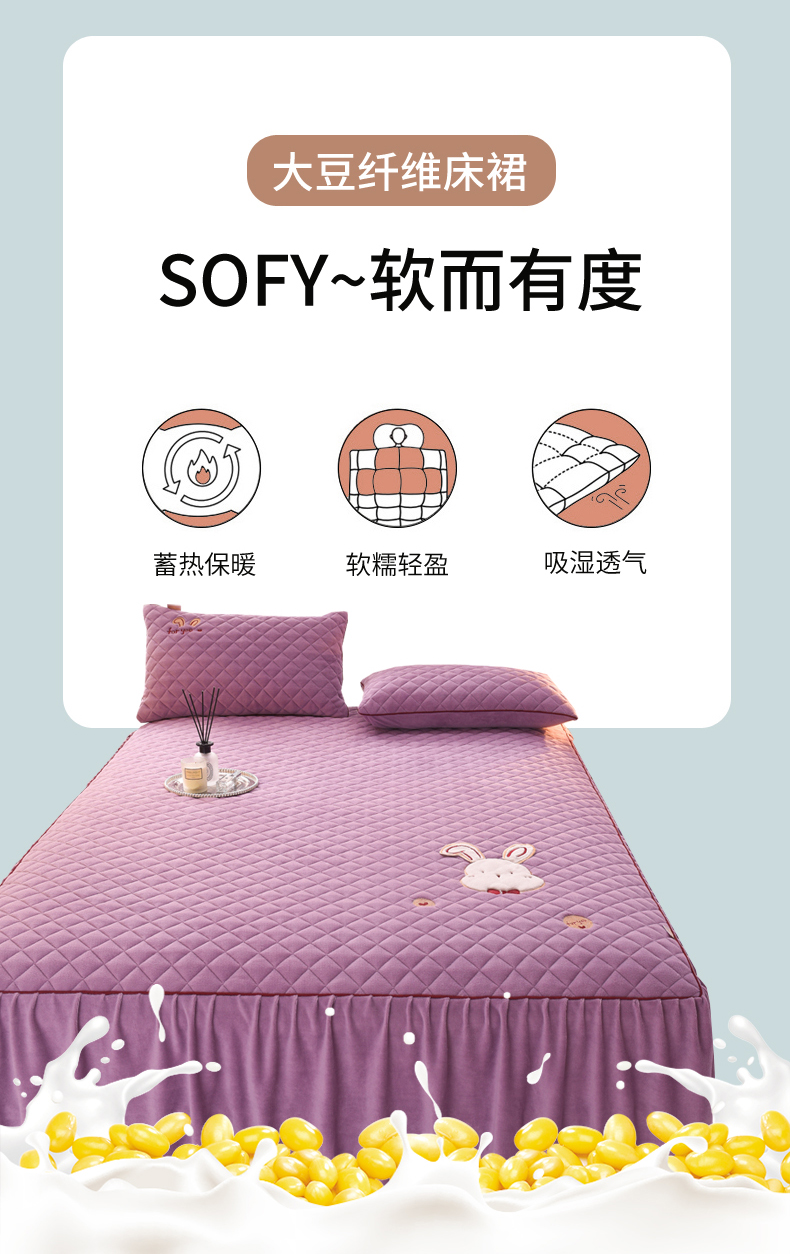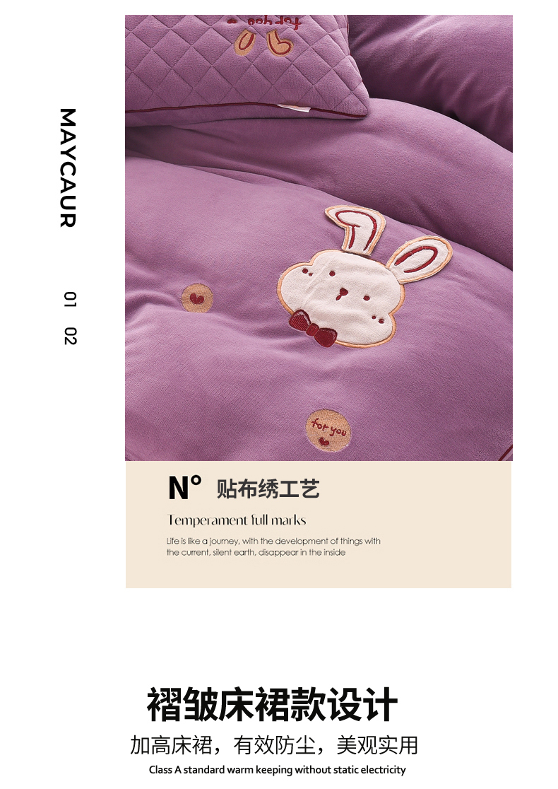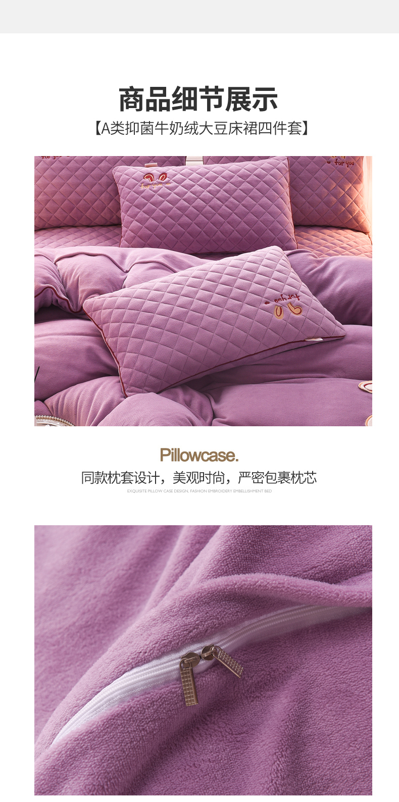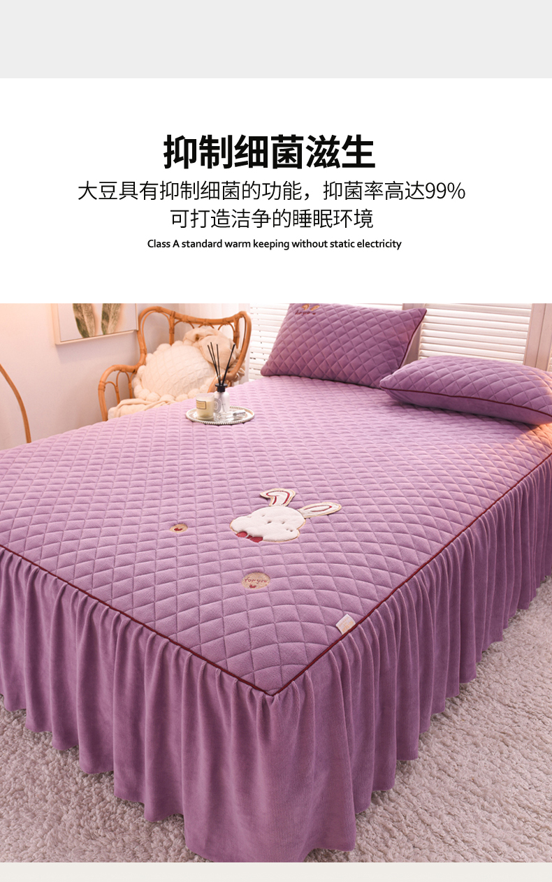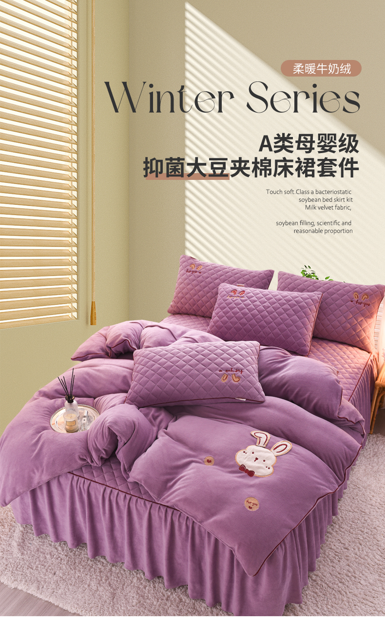 当前位置: 91家纺网 > 商品网购 > 床品套件 > 四件套 > 牛奶绒四件套 > 好眠好梦家纺 2024新款叮当兔牛奶绒绣花床裙款四件套 丁香紫