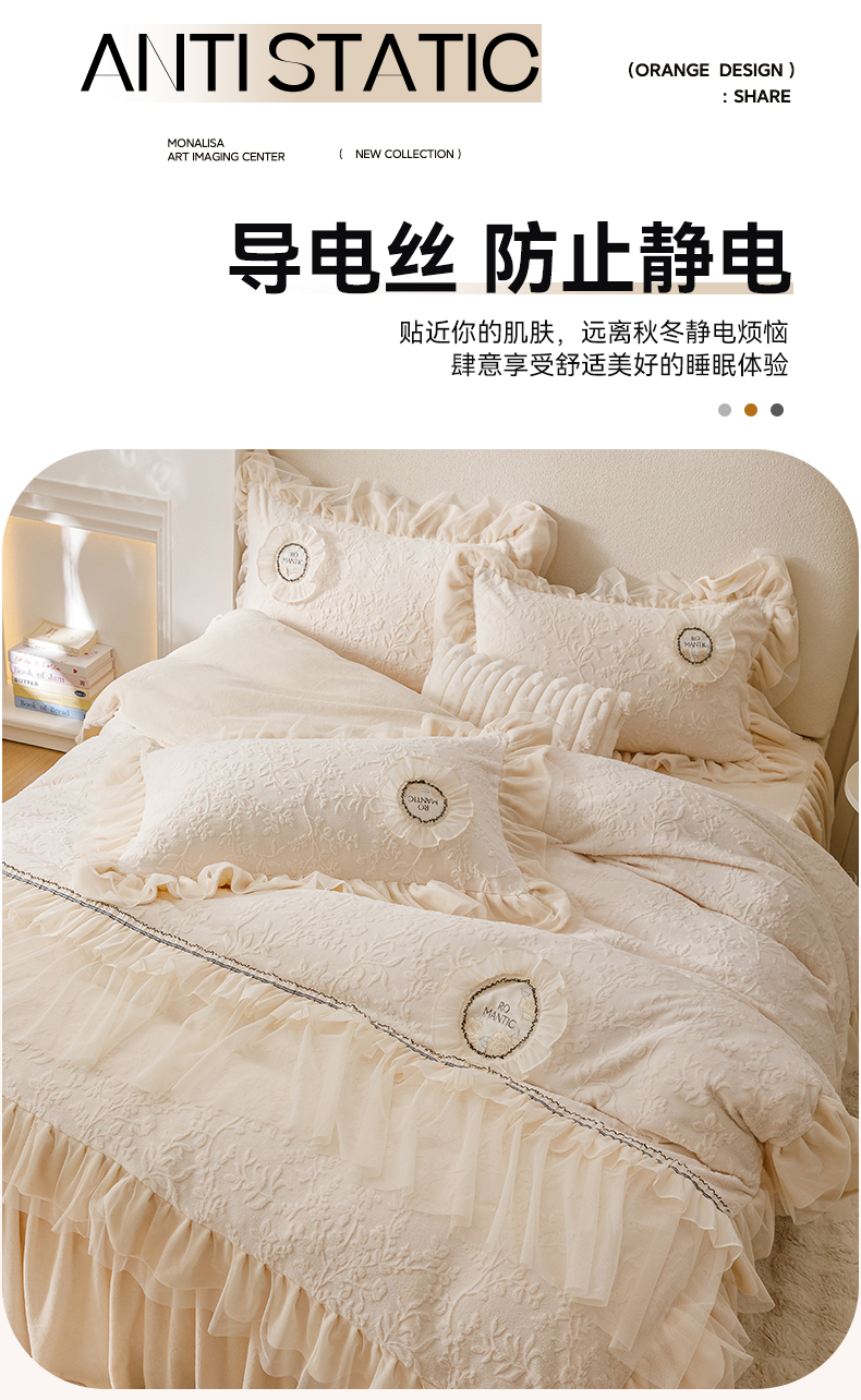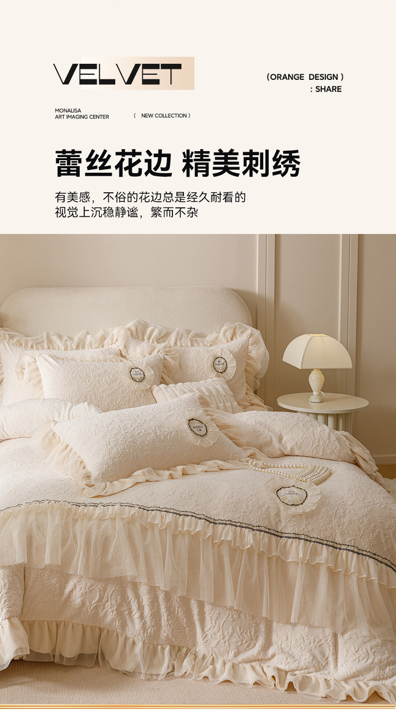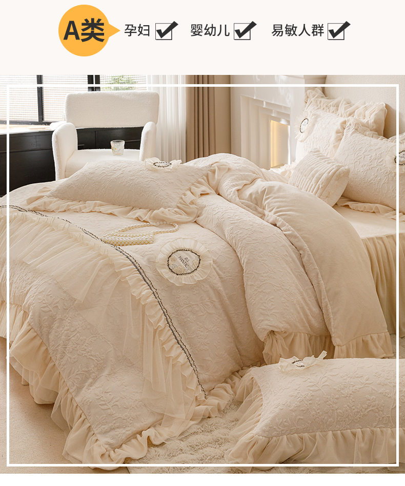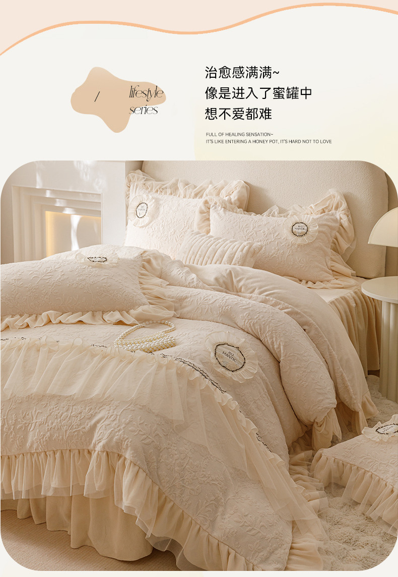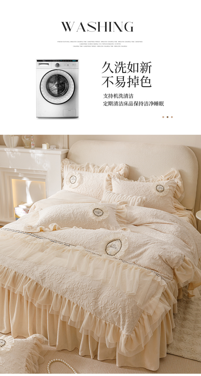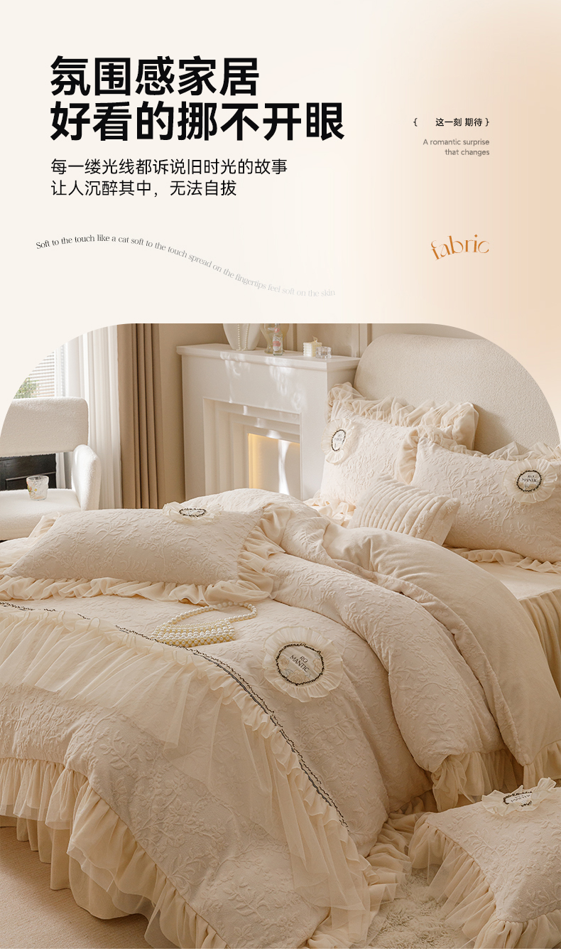 (总)好儿喜家纺 2025新品雕花牛奶绒四件套-花倾城系列,花倾城-奶咖,花倾城-浅绿,花倾城-浅紫,花倾城浅粉,包装(套件是带包装价格)